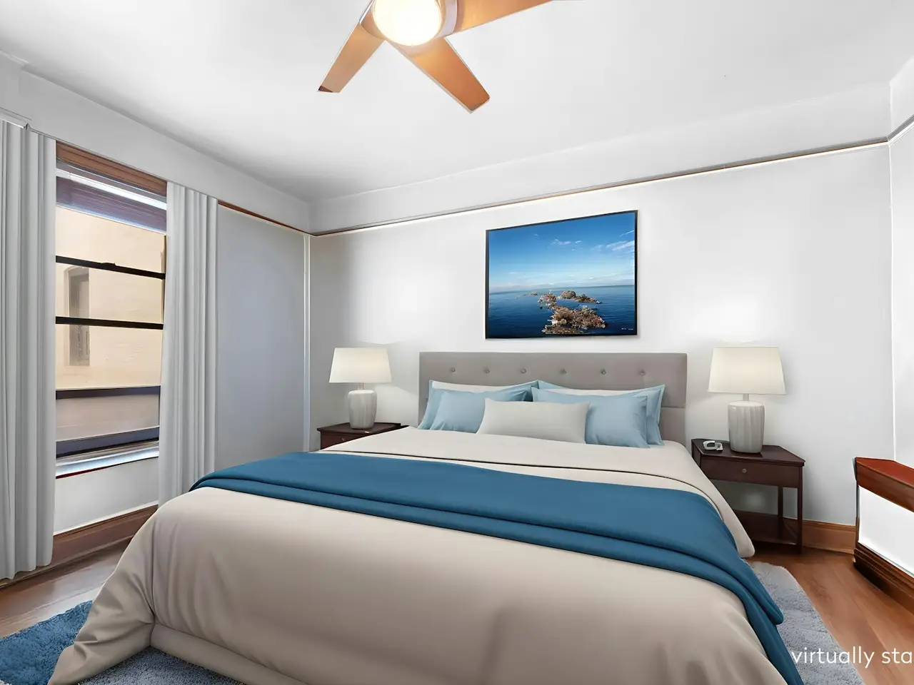 Location, Space and Value Showcase your artwork in the spacious living and dining "Great Room" with open northern exposures that allows sunlight to stream through the tall, over-sized windows with tree-top views. High 9' 6" ceilings highlight the sprawling layout of this 3-BR/ 2-Bath home with red oak flooring throughout. The chef's kitchen, a centerpiece of the apartment, has a large center island perfect for entertaining guests or enjoying a casual meal. It features beautiful Brazilian, Patagonia granite/quartzite counter-tops, a Viking 4 burner stove, Sub Zero fridge, new high quality contemporary cabinets plus a washer and dryer. The Primary Bedroom, with both east and west windows, has an ample closet, as well as a windowed en-suite bath with tumbled marble floors. The 2nd bathroom, also with a window, is a newly renovated contemporary show-stopper. The 2nd and 3rd bedrooms are very quiet and perfectly proportioned with great closets and windows. Additionally, there is a storage closet in the basement that comes with the apartment. In a financially sound, 7-story boutique co-op with 18 spacious homes and low monthly maintenance rates, pieds-a-terre and pets, are welcome. Amenities include a beautiful furnished roof deck with river views, a live-in resident manager, video security system with I-phone navigation and buzzer capability to accept packages, and bike storage. Just 1 block from the Express Train (with a short ride to mid-town or Wall Street) and only 2 blocks from beautiful Riverside Park - not to mention all the wonderful restaurants and nightlife the Upper West Side has to offer (especially the performing arts center 'Symphony Space', just on the corner) - this is truly an excellent value!