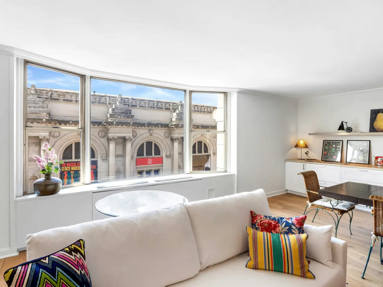 Spacious and gut renovated, this two-bedroom, two-bathroom apartment offers direct views of Fifth Avenue and the Metropolitan Museum of Art. The oversized living area is filled with natural light and features wide-plank hardwood floors, offering a flexible layout ideal for both comfortable living and elegant entertaining. The open-concept kitchen is beautifully updated with white cabinetry, butcher block countertops, stainless steel appliances, and stylish open shelving. A generous dining area seamlessly integrates into the space, while a separate laundry area with washer/dryer adds everyday convenience. Both bedrooms are privately situated facing east and offer generous proportions, ample closet space, and renovated en-suite baths. Designed by legendary architect Philip Johnson-celebrated for the Seagram Building and The Glass House-1001 Fifth Avenue is a full-service, white glove building with a 24-hour lobby attendant, live-in superintendent, fitness center, and bike storage. The building is pet-friendly, allows pied- -terre ownership, and includes a 2% flip tax. This home presents a rare opportunity to live in one of the city's most architecturally significant buildings with world-class views.