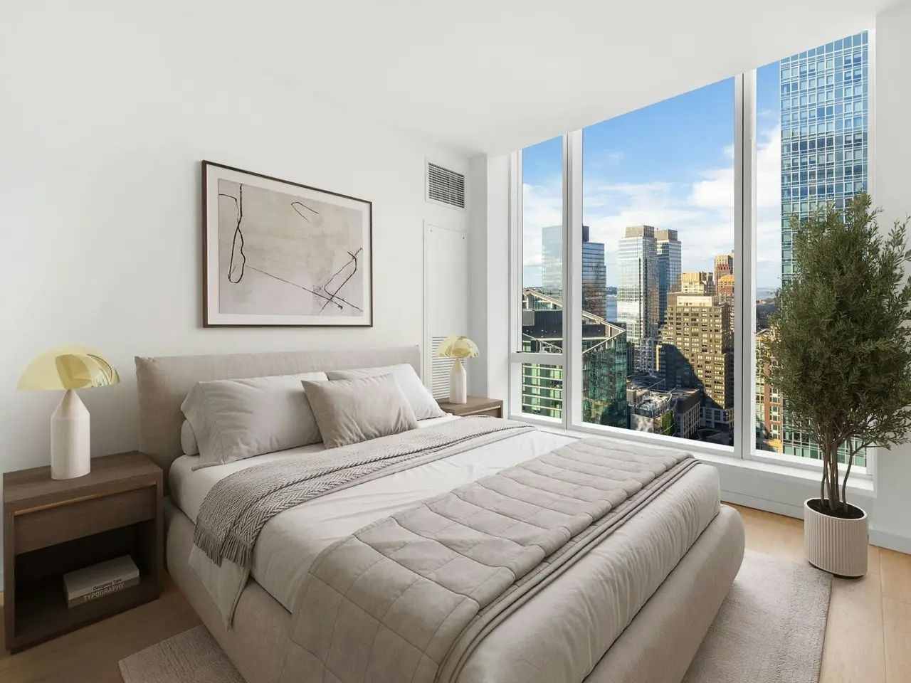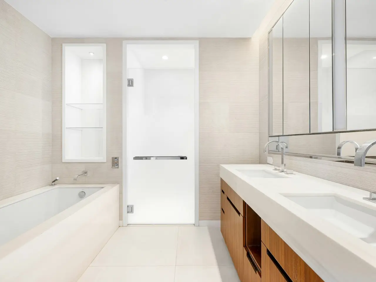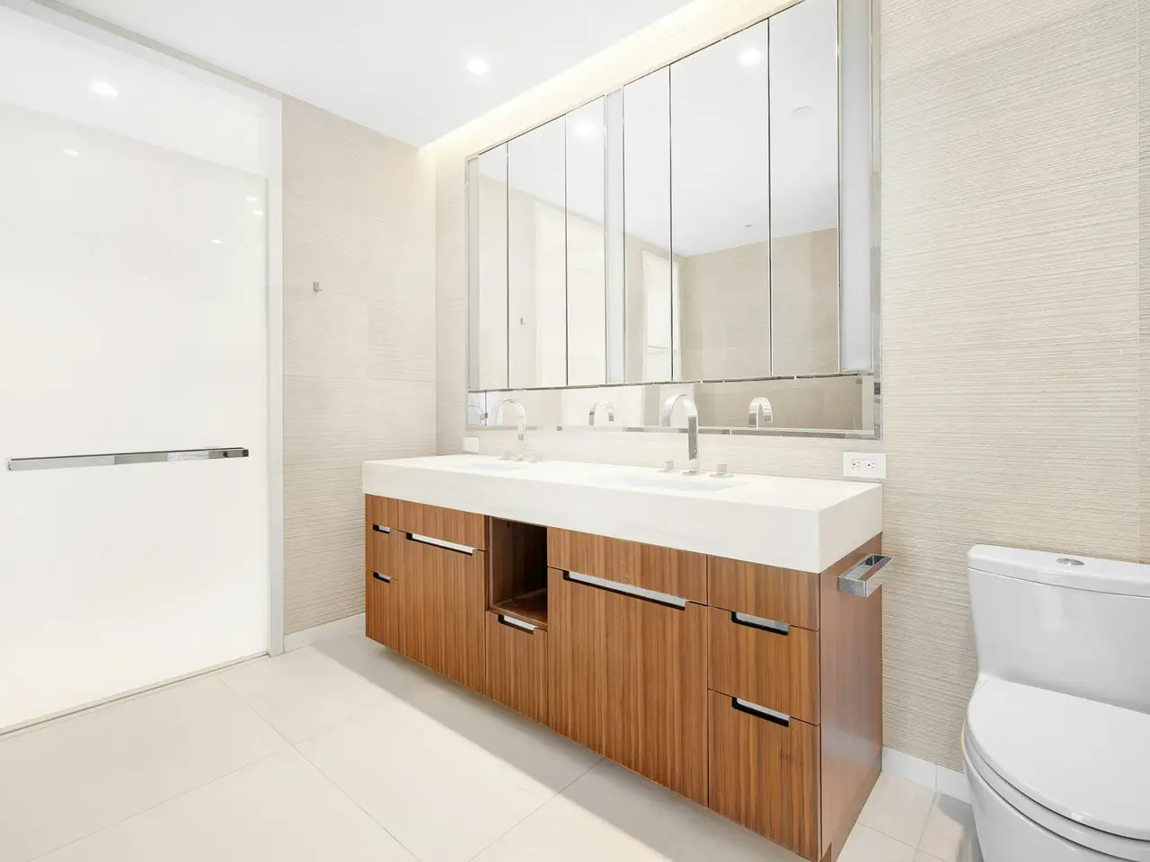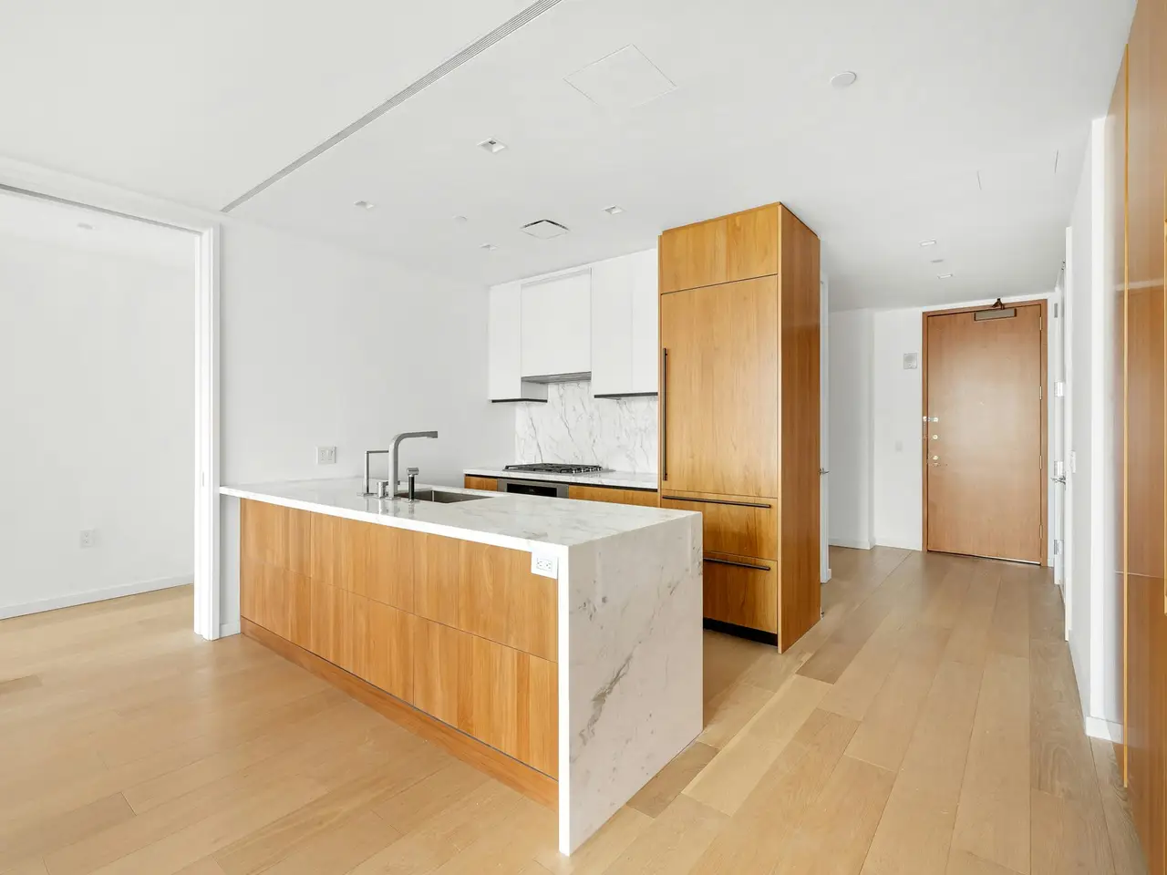 Highest floor Spectacular One-Bedroom Residence at One West End. Step into refined luxury in this expansive 919-square-foot one-bedroom, one-and-a-half-bathroom home located on 28th floor at the iconic One West End, a true architectural masterpiece envisioned by world-renowned designer Jeffrey Beers. Residence 11L boasts a thoughtfully designed layout ideal for both gracious entertaining and comfortable everyday living. Soaked in natural light from floor-to-ceiling windows, the generous, rectangular living room is anchored by wide-plank white oak flooring and exquisite custom finishes throughout. The chef's kitchen, custom-designed by Scavolini, is a striking showpiece, featuring sleek state-of-the-art cabinetry, a dramatic marble waterfall island and backsplash, and top-of-the-line appliances, including a Wolf cooktop and oven, Sub-Zero refrigerator, Gaggenau wine cooler, and Miele dishwasher. The serene primary suite is a true sanctuary, offering a spa-like en-suite bath adorned with heated marble floors, a Zuma soaking tub, glass-enclosed shower, dual vanity, and elegant Dornbracht fixtures. A chic powder room stuns with a sculptural stone vanity, carved stone sink, marble flooring, and a striking herringbone accent wall, making a perfect statement for guests. Additional features include an in-unit washer/dryer, multi-zone climate control, and access to the world-class amenities and white-glove services exclusive to One West End. Commanding a full city block at West End Avenue, One West End is home to an expansive collection of indoor and outdoor resort-inspired amenities. These include: a 75-foot swimming pool with double-height cantilevered atrium, a private fitness center and spa, and a 12,000 sq.ft. terrace featuring cabanas, lush green spaces, and areas for grilling and private outdoor entertaining. Additional grandly-scaled amenity spaces include a living room with fireplace, media, billiards, and game rooms, a children's playroom with a private garden terrace and a private dining room with chef's kitchen. One West End's award-winning Lifestyle Team programs the amenity spaces and curates a magnificent selection of exclusive seasonal events, activities, classes, and partnerships for residents of all ages. On-site parking and residential storage are available at One West End. The condominium is fully staffed including a 24-hour doorman and concierge. Very rare 421A Estate Tax Abatement till 2039.