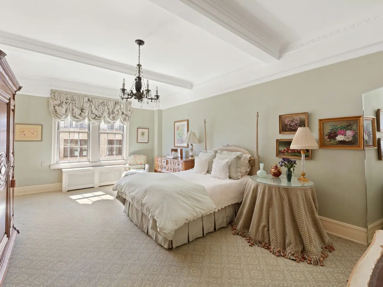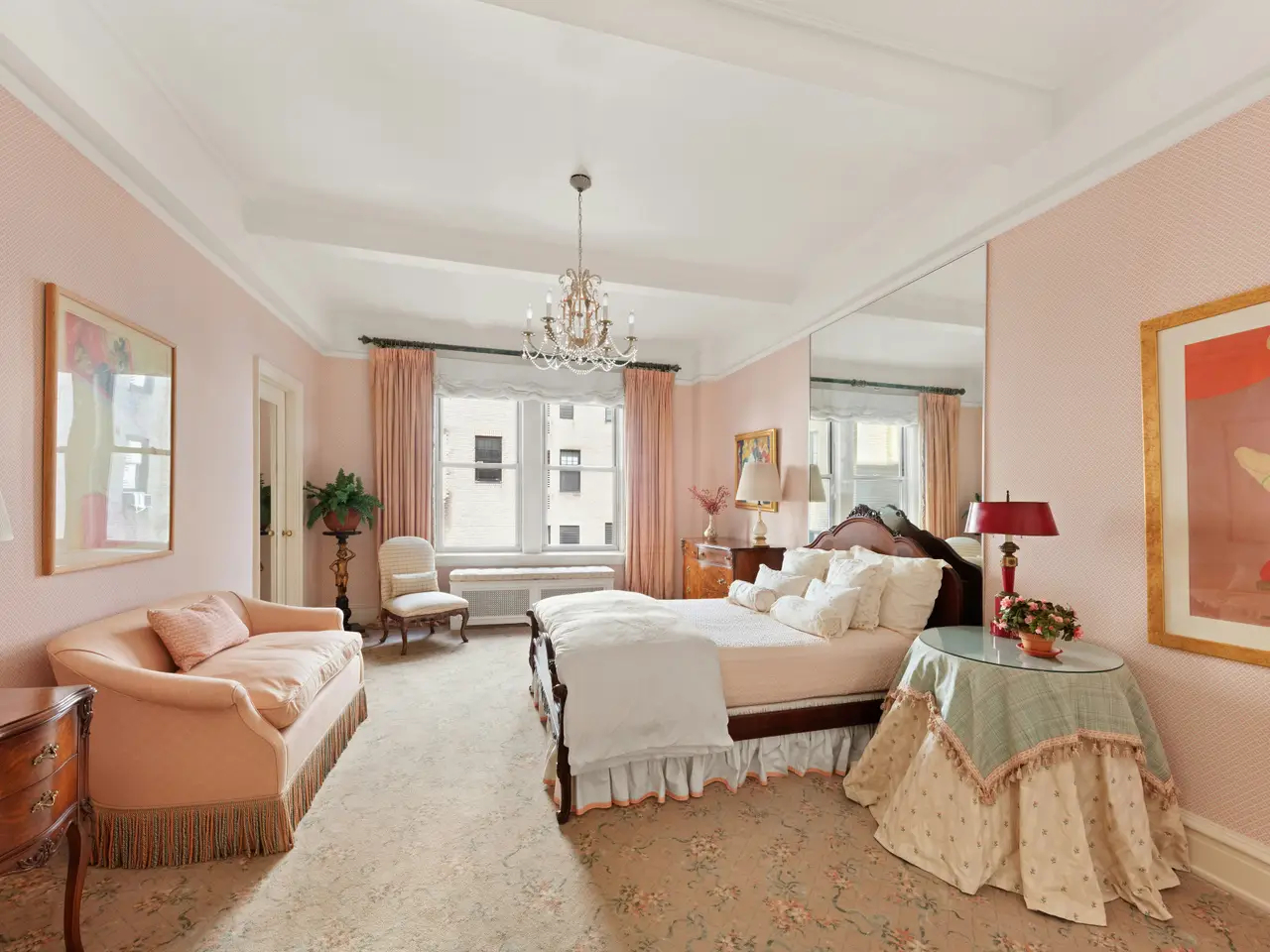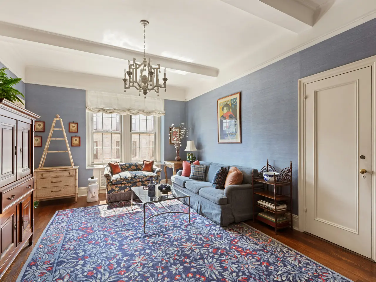 885 Park Avenue, 12B Grand in scale and full of pre-war elegance and charm, this sprawling nine-room, three-and-a-half-bath residence can accommodate sophisticated, large-scale entertaining as well as quiet refinement and comfort for everyday living. Apartment 12B is perched high above tree-lined 78th Street just off Park Avenue, with several rooms enjoying southern exposures with abundant sunlight and open city views. A semi-private landing leads to an entrance foyer and square gallery which centers the apartment's gracious layout. The living room is nearly 30' in length, with ceilings just under 10', original oak herringbone floors and wood-burning fireplace. An adjacent library (which could easily be converted to a fourth bedroom) features custom built-in bookshelves, a stylish recessed bar and large walk-in closet. Opposite the library is an exceptionally spacious formal dining room flanked by mahogany and etched glass doors. The adjacent, windowed eat-in-kitchen's generous proportions can accommodate a variety of configurations with abundant space for both storage and seating. There are two former staff rooms off the kitchen, one currently configured as a laundry room with full-size washer and vented dryer and the other as a home office, with a renovated half-bathroom in between. The private residential wing is comprised of three bedrooms, all with expansive dimensions, high ceilings and abundant closets. The primary bedroom is bathed in southern light and features a private vestibule and en suite, windowed, marble full bath. 885 Park Avenue is a premier, full-service cooperative designed and built in 1927 by renowned pre-war architects Schwartz & Gross. The building offers a large, renovated fitness center, live-in resident manager, attentive staff and is pet-friendly. Private storage transfers with the apartment. Fifty percent financing is allowed and there is a 3% flip tax payable by purchaser.