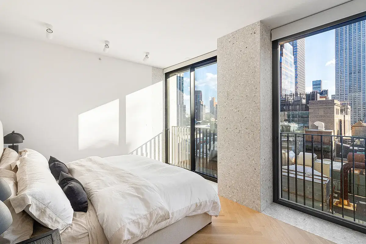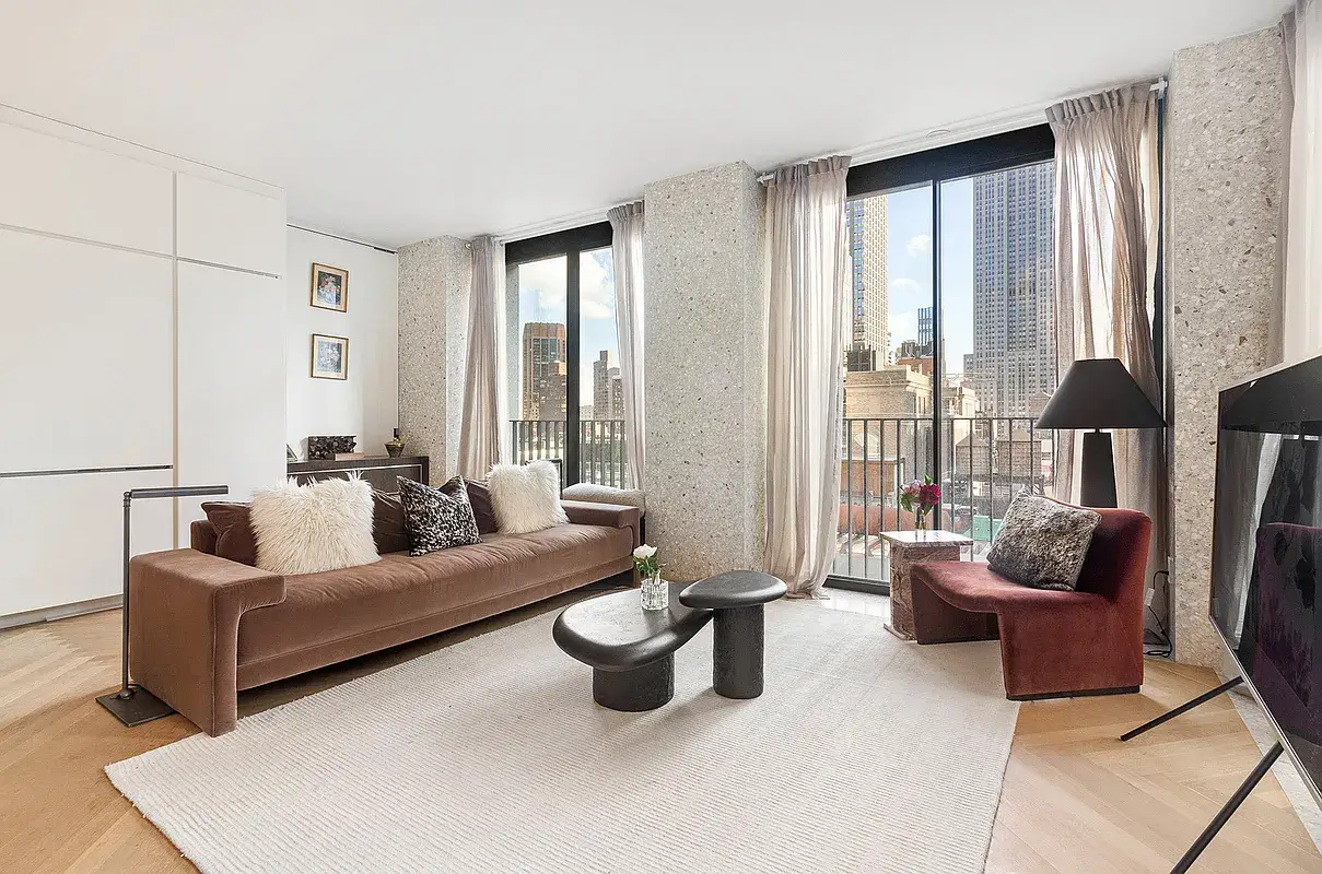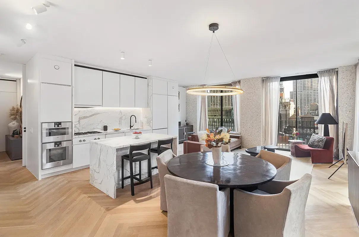 Welcome to 19C - a stunning corner unit with south and west facing 2-bedroom and 2.5-bathrooms home. It is ideally located above the vibrant Bryant Park in the heart of New York City, The Bryant is the first residential building in New York City designed by the award-winning British architect, David Chipperfield. Enjoy the iconic Empire State Building and panoramic skyline views from living room and master bedroom. The floor-to-ceiling windows offers Abundant natural light throughout the entire space. The open kitchen includes a Gaggenau cooktop with fully-vented hood, oven, speed oven, dishwasher and refrigerator/freezer. The waterfall island with marble top, wine refrigerator and overhang for extra seating. The bespoke millwork found throughout, cleverly conceals storage, washer/dryer in the unit. The master bedroom with direct Empire State Building and city views includes en-suite master bath features full height Statuarietto marble walls, double vanity with marble top, and enclosed wet room with rain shower. The secondary bath and powder room are also appointed with Statuarietto marble walls and vanity. The Bryant's beautiful amenity includes 24-hour attended private residential lobby, lobby lounge, fitness center with sauna, Terrace Club with fireplace and full bar overlooking Bryant Park, and a full suite of a la carte hotel services including housekeeping and room service.