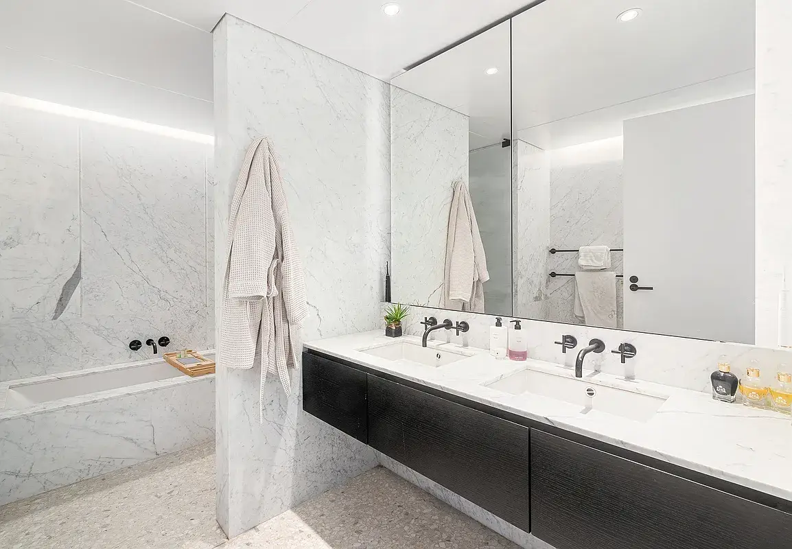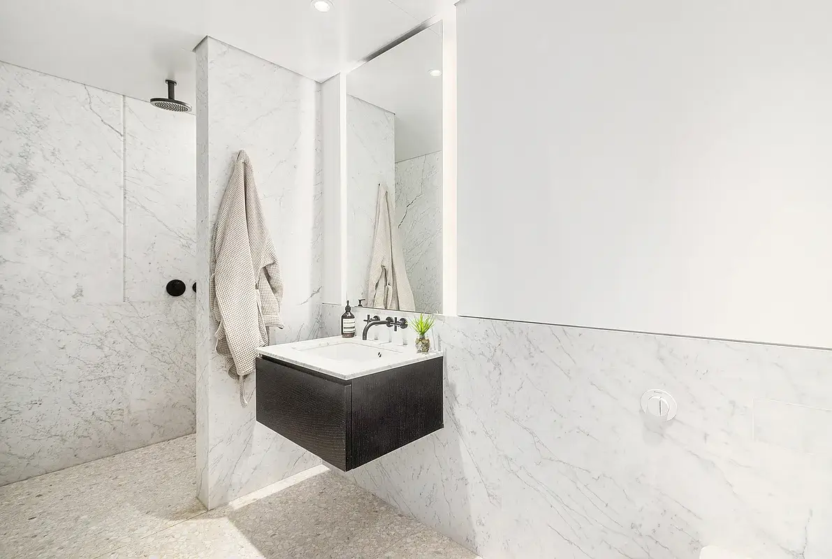 Full height Statuarietto marble walls