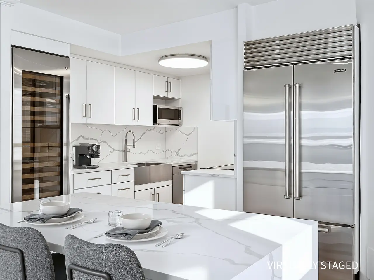 GREAT BUILDING, GREAT SPACE, GREAT VIEWS. A SLEEK TWO-BEDROOM, 2.5 BATHROOM HOME + OFFICE... PLEASE VISIT US, SHOWINGS START NOVEMBER 1ST - BY APPOINTMENT Apartment 39AB is a renovated, two-bedroom, two-bathroom residence with a powder room for guests and a home office. It is situated on a high floor with breathtaking city views in every direction. The split-bedroom floor plan creates a seamless flow for an easy, elegant living. The residence boasts 5-inch oak floors, endless windows with exceptional city views, custom-built closets, and ample storage throughout. THE APARTMENT FEATURES: - The entrance foyer features an oversized walk-in closet with ample storage and custom shelving. - There is a stylish powder room for your guests, located off the entrance. - Enter a spacious, light-filled, open-plan living/dining room with a renovated kitchen, outfitted with quartzite countertops and a waterfall island, white lacquered cabinetry, a -Sub-Zero refrigerator, a 102-bottle Sub-Zero wine storage, a Wolf Stove, a Miele Dishwasher, and custom hardware. It is the perfect place for morning coffee, overlooking the Chrysler Building and the Manhattan skyline. - The primary bedroom features a windowed, marble-ensuite bathroom, three generous closets, east- and west-facing city views, and a private balcony. - The second bedroom is generously proportioned, with a large walk-in closet and features city and river views of the Queensboro Bridge. - The second bathroom is adjacent to the second bedroom, in a separate hallway that includes additional closet space. - There is a Miele washer/ dryer in the second bathroom. - A separate, windowed home office has been created off the main living area and features windows with city views. This space can easily be reconnected to the living/dining area, which would provide one room with panoramic views of the NYC skyline. THE BUILDING FEATURES: - Dag Hammarskjold Tower is a luxury condominium with white-glove service, including a concierge, full-time doorman, resident manager, and service staff who deliver food and packages right to your door. - A stunning 43rd-floor swimming pool overlooking the city. - A fully equipped health club. - Playroom. - Landscaped public and private gardens. - Cold storage. - On-site laundry. - On-site parking. - Pets are permitted. - Subletting is permitted. -90% financing. 240 East 47th Street is located in the thriving Turtle Bay neighborhood, which offers accessibility to a wide range of Michelin-rated restaurants, cafes, shops, and luxury retail, The United Nations and Dag Hammarskjold Plaza, which includes a weekly farmers market, the Katharine Hepburn Garden, the largest public garden on the east side of midtown Manhattan which features Art Exhibits, and Concerts year round. The location of the Dag Hammarskjold Tower provides easy access to the FDR Drive, NYC airports, Citi Bike, and all major transportation routes.