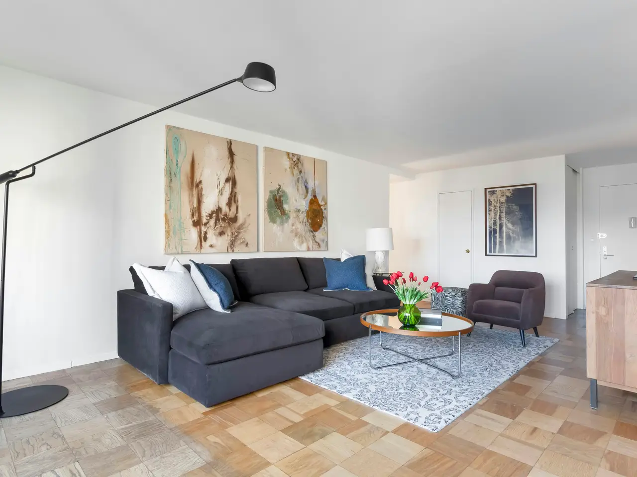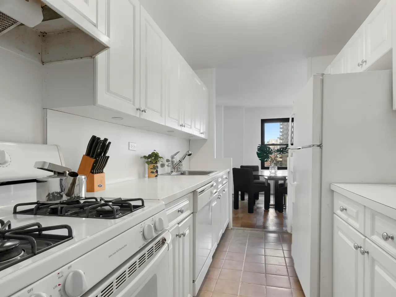 Step into a sun-drenched sanctuary at this generous two-bedroom, two-bathroom co-op on a prime corner of West End Avenue. Beautiful northern light floods the apartment, highlighting the spacious layout and open city views to the north and east. From your expansive 27'6" private balcony, you can sip your morning coffee while enjoying a peek of the Hudson River. Inside, the 23" x 12.5" living room provides the perfect backdrop for entertaining or simply unwinding. The adjacent dining area is large enough to host a dinner party for eight, while the updated kitchen-featuring classic white cabinetry and appliances-offers ample storage. The primary bedroom is a peaceful retreat with dual northern and eastern exposures, a 12" wall of closets, and an en-suite bathroom with a walk-in shower. The second bedroom is versatile and generously sized, ideal for a queen-sized bed or a home office, and includes a large walk-in closet. With six closets in total, including two walk-ins, you'll find a place for everything. In addition to the monthly maintenance there is an ongoing monthly capital contribution of $138.25 for a total monthly payment of $3,277.22 ($3,138.07 maintenance + $138.25 capital contribution). Located in a full-service, 24-hour doorman building, 142 West End Avenue offers residents a private gym, a toddler play area, laundry rooms, and exclusive access to a security-patrolled park with playgrounds, pickle ball and basketball courts and grassy picnic areas. Just moments from Lincoln Center, Riverside Park, and Central Park, this home offers the perfect blend of city convenience and tranquil living.