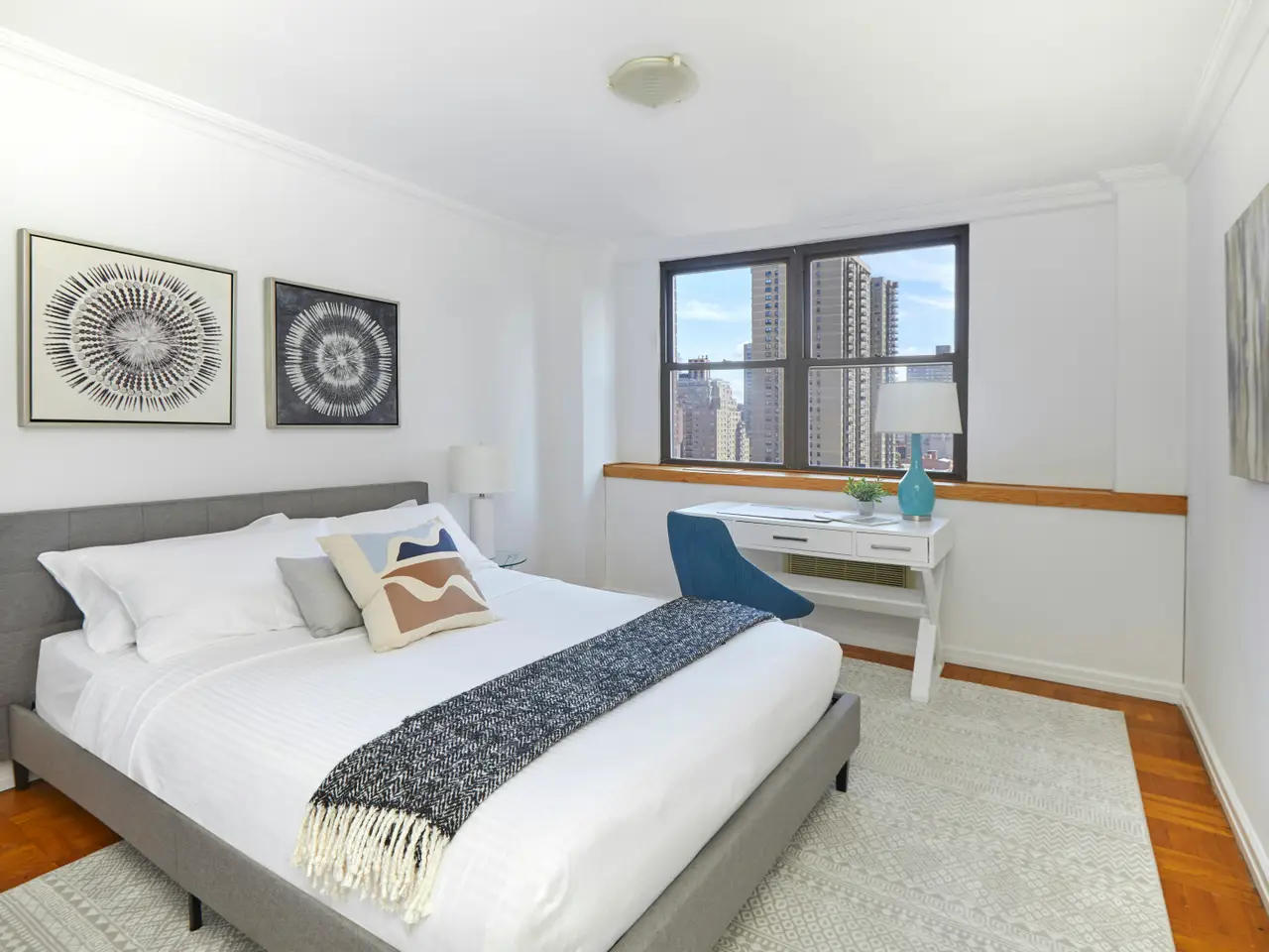 New to the market - A high-floor two-bedroom, two-bathroom home in move-in condition with a low monthly maintenance of only $2,081. The generous foyer has a coat closet and leads to the spacious living room bathed in sunlight through a wall of windows. There are custom built-ins, crown molding, and recessed lighting throughout. The open kitchen features stainless steel appliances, wood cabinets, glass tile backsplash, and marble countertops. A hallway leads to the large primary bedroom with a renovated en-suite bath. The second bedroom has an equally lovely bathroom accessed off the hallway. This home has higher ceilings than most in the building. Other amenities include through-the-wall air-conditioning, washer/dryer, and custom closets in every room. Currently, there is a low assessment of $100 per month. 239 East 79th Street is an extremely well-run cooperative with excellent financials. The halls and lobby have been recently renovated, and there is a beautifully landscaped roof deck. The building has a live-in super, 24-hour doorman, and garage. Pets are welcome.