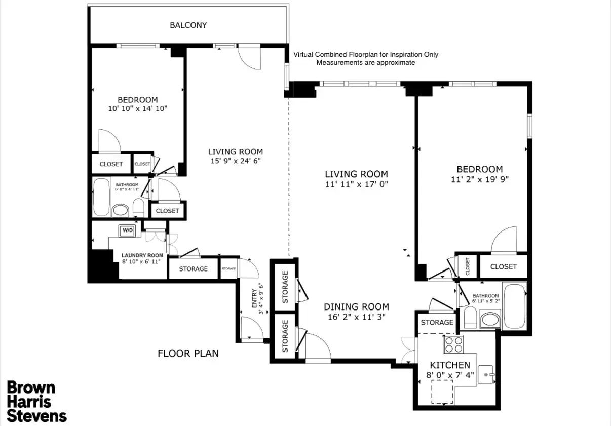 Sweeping Balcony Views, Low Monthlies 301 East 62nd Street, Apt. 14AB - Lenox Hill / Upper East Side The rare chance to purchase 2 adjacent high-floor units to COMBINE and create your dream home, in a boutique concierge doorman cooperative, in the sought-after Upper East Side Lenox Hill neighborhood. 14A is currently a large one-bedroom sponsor unit with an almost 24' balcony extending from the bedroom to the living room with sweeping north-facing city views. 14B is a larger, sunny corner unit with more open views facing north and east. The combination of these 2 units, purchased separately, can become that unique and difficult to find large scale home with double exposure, oversized balcony, and extremely low carrying costs. The building delivers every convenience: 24-hour doorman, concierge, live-in super, landscaped roof deck, on-site laundry, package and bike rooms, and direct parking garage access (separate fee; wait list may apply). Storage units are also available (separate fee). Financial strength sets this cooperative apart with consistently low maintenance, group-discounted electricity, no transfer tax, and no flip tax. Pied-à-terre, sublets, co-purchasing, guarantors, and parents buying for adult working children are permitted. Pets under 50 pounds are welcome. 75% financing. Ideally located above the congestion pricing zone, near trendy restaurants and shops, as well as the Q, 4, 5, 6, N, R, F trains, the Queensboro Bridge, and the Hampton Jitney. Combined virtual floorplan is for inspiration only.