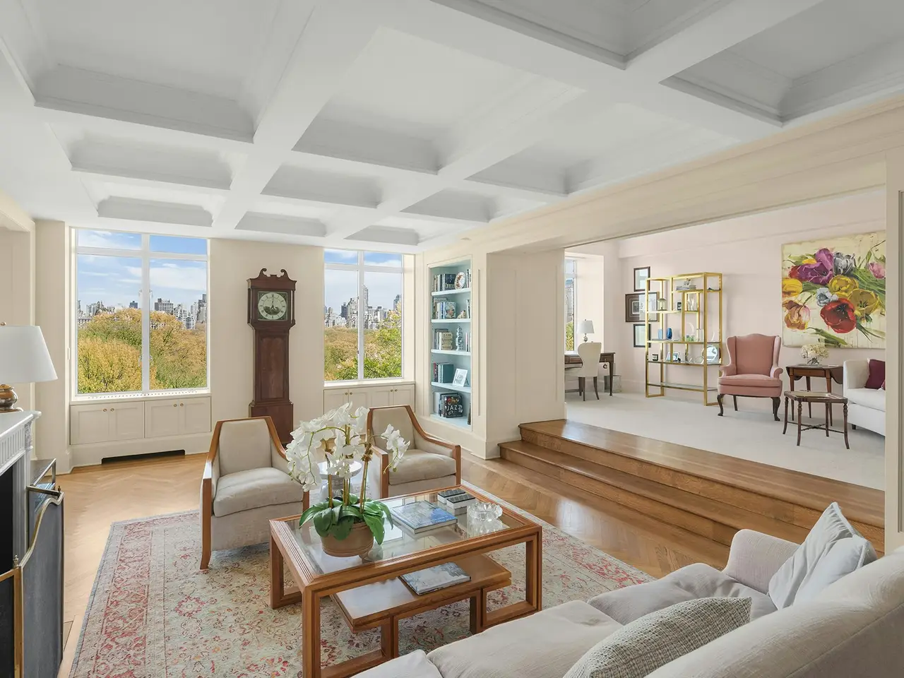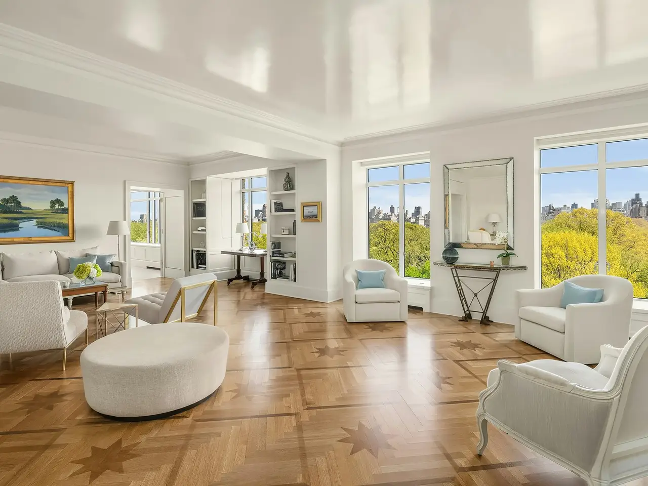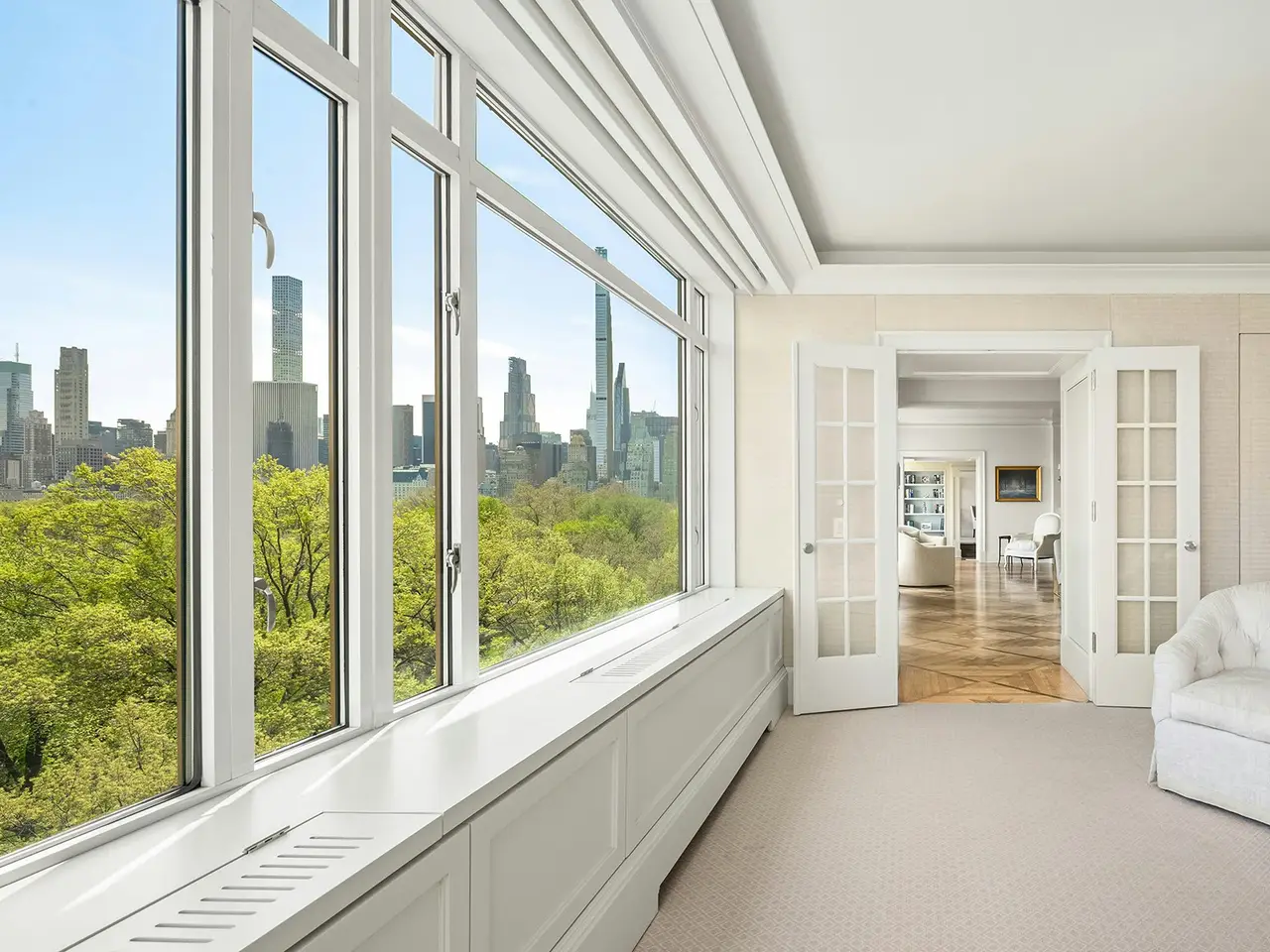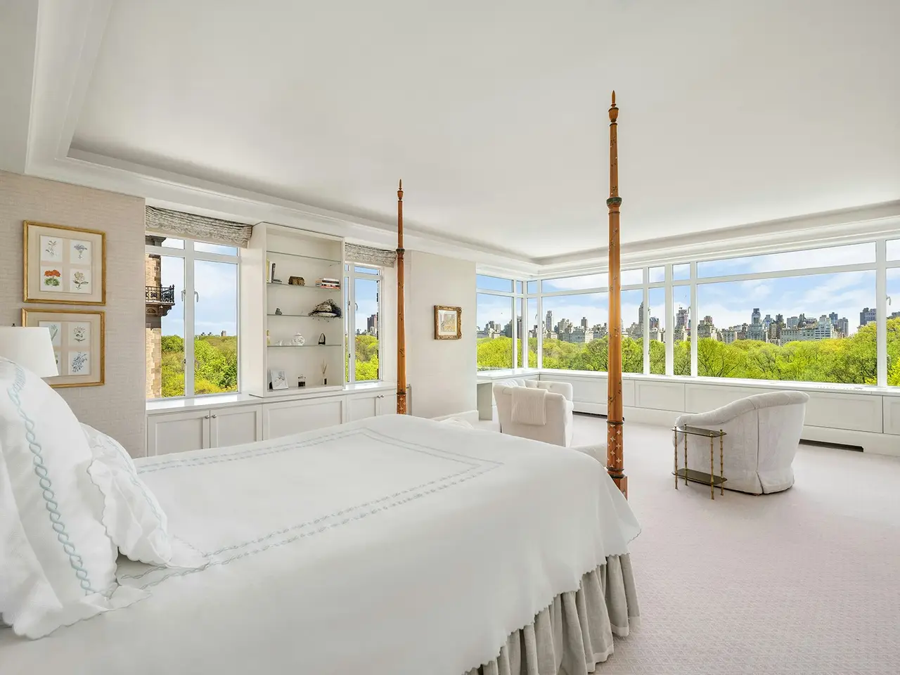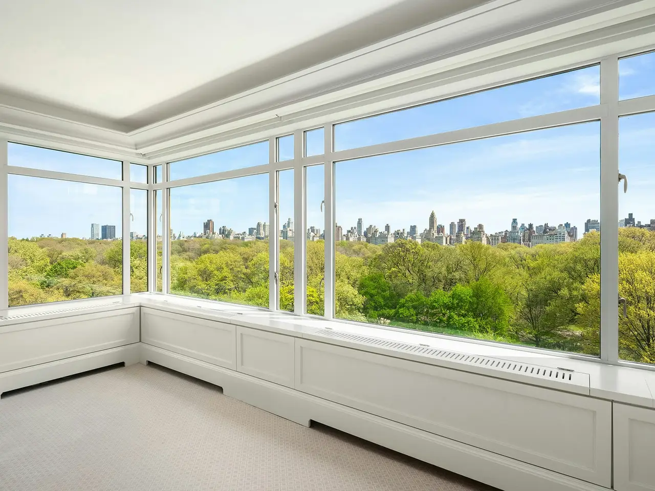 Triple Mint 5 Bedrooms Overlooking Central Park A once-in-a-lifetime opportunity awaits! Now offered: a 6000 SF rare combination of two Central Park-facing apartments, meticulously renovated with 100 running feet of windowed exposure on Central Park in The Majestic, one of the most desirable Central Park West co-ops. Originally 15, now 14 rooms, this townhouse-sized above-the-trees dreamy home has unmatched entertaining space balanced with 5 bedrooms (4 en suite) creating the perfect space for serene private living. Featuring breathtaking, unobscured views of Central Park, the City skyline and open exposures east and north and a south-side angle, this spectacularly renovated space has walls of monumental picture windows-rare among CPW cooperatives-flooding the interiors with dazzling natural light all day long. Perfect for entertaining, Thanksgiving Day parade viewing, fireworks and simply enjoying the changing seasons in Central Park, 9EF is without equal. There is truly nothing else like it on the market-a rare combination of scale, pre-war pedigree and move-in ready condition, saving you the cost, time and psychic energy of a renovation. Public Rooms - Unmatched Entertaining Space Park-facing double living room with wood-burning fireplace Park-facing library with coffered ceilings and wood-burning fireplace Park-facing study-a serene retreat for work or relaxation Formal square dining room with east-facing exposures and bespoke built-ins Plush media room with surround sound Full bar with liquor storage and refrigerator/freezer drawers Bedroom Suites Two spectacular primary suites, each with direct Central Park views: Corner "Solarium" Primary Suite: Flooded with light, featuring a glass-corner solarium, extensive built-ins, cedar-lined closets, walk-in closet, and luxurious en suite bathroom with cast-iron soaking tub and separate stall shower Second Primary Suite: A quiet haven with a park-facing picture window, Bain Ultra tub overlooking Central Park, a Jacuzzi Clearlight Sanctuary 2 sauna, and radiant-heated floors Additional Bedrooms Two additional bedrooms, each with en suite baths (one with steam shower), walk-in closets, and custom cabinetry A fifth flexible bedroom or study with en suite bath and tailored storage Chef's Kitchen - A Culinary Masterpiece Spanning three rooms, the chef's kitchen was designed to delight culinary enthusiasts: Gourmet kitchen with two Sub-Zero refrigerators, three Bosch dishwashers, Wolf 6-burner vented gas range with grill and dual ovens, Blue Star French door electric oven, Wolf warming drawer & microwave, plus a dedicated baking station Breakfast area with coffee bar and refrigerator/freezer drawers Bread drawers Walk-in pantry Built-in wine bar with 60-bottle Sub-Zero wine fridge Exceptional Details & Amenities Powder room, washer/dryer Extensive automation and audio-visual systems All closets cedar-lined with built-in outlets Central air conditioning with four-zone humidifiers All-new double-insulated windows & cast-iron radiators Extensive millwork, custom moldings, and hidden storage The Majestic 24/7 doormen and concierge Newly renovated gym with state-of-the-art equipment Rooftop solarium with all-weather teak furniture and dining table Remote work space Newly renovated children's playroom On-site Managing Agent & Live-in Resident Manager Attended elevators Mail delivered to the door Cold storage available Storage rooms (monthly fee) and bike room Laundry room with commercial-size machines Co-Exclusive