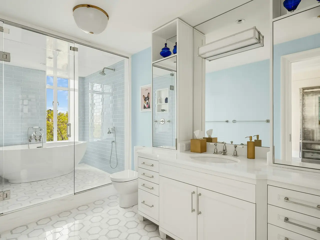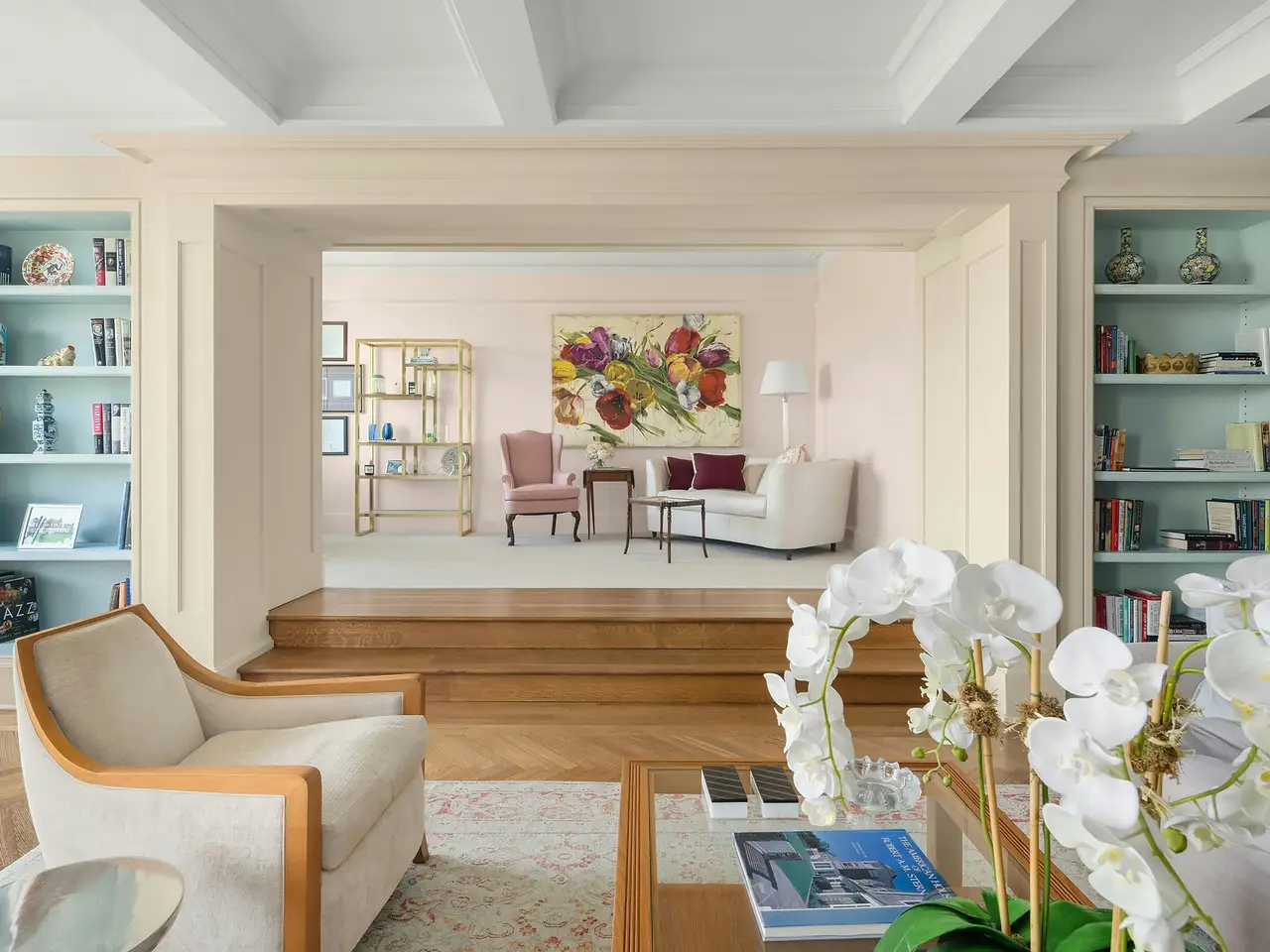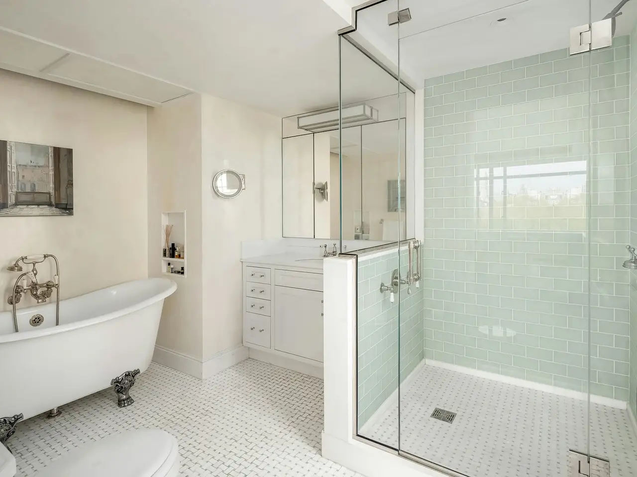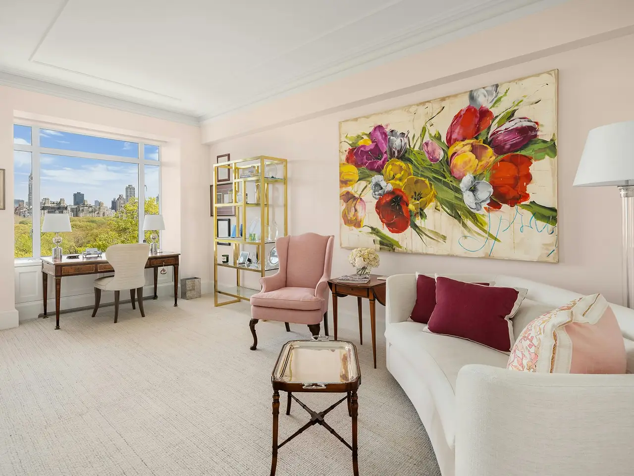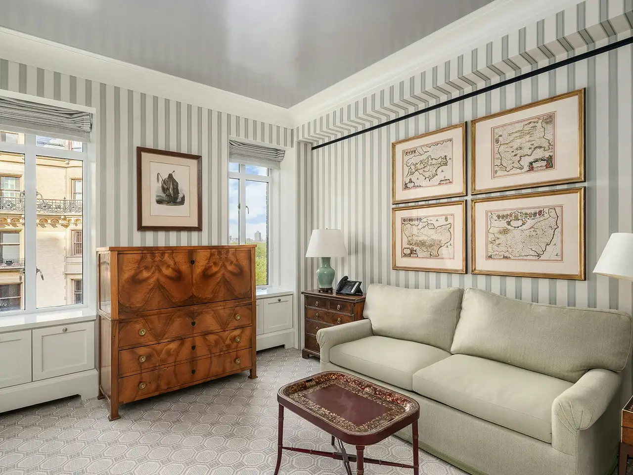 Triple Mint 5 Bedrooms Overlooking Central Park A once-in-a-lifetime opportunity awaits! Now offered: a 6000 SF rare combination of two Central Park-facing apartments, meticulously renovated with 100 running feet of windowed exposure on Central Park in The Majestic, one of the most desirable Central Park West co-ops. Originally 15, now 14 rooms, this townhouse-sized above-the-trees dreamy home has unmatched entertaining space balanced with 5 bedrooms (4 en suite) creating the perfect space for serene private living. Featuring breathtaking, unobscured views of Central Park, the City skyline and open exposures east and north and a south-side angle, this spectacularly renovated space has walls of monumental picture windows-rare among CPW cooperatives-flooding the interiors with dazzling natural light all day long. Perfect for entertaining, Thanksgiving Day parade viewing, fireworks and simply enjoying the changing seasons in Central Park, 9EF is without equal. There is truly nothing else like it on the market-a rare combination of scale, pre-war pedigree and move-in ready condition, saving you the cost, time and psychic energy of a renovation. Public Rooms - Unmatched Entertaining Space Park-facing double living room with wood-burning fireplace Park-facing library with coffered ceilings and wood-burning fireplace Park-facing study-a serene retreat for work or relaxation Formal square dining room with east-facing exposures and bespoke built-ins Plush media room with surround sound Full bar with liquor storage and refrigerator/freezer drawers Bedroom Suites Two spectacular primary suites, each with direct Central Park views: Corner "Solarium" Primary Suite: Flooded with light, featuring a glass-corner solarium, extensive built-ins, cedar-lined closets, walk-in closet, and luxurious en suite bathroom with cast-iron soaking tub and separate stall shower Second Primary Suite: A quiet haven with a park-facing picture window, Bain Ultra tub overlooking Central Park, a Jacuzzi Clearlight Sanctuary 2 sauna, and radiant-heated floors Additional Bedrooms Two additional bedrooms, each with en suite baths (one with steam shower), walk-in closets, and custom cabinetry A fifth flexible bedroom or study with en suite bath and tailored storage Chef's Kitchen - A Culinary Masterpiece Spanning three rooms, the chef's kitchen was designed to delight culinary enthusiasts: Gourmet kitchen with two Sub-Zero refrigerators, three Bosch dishwashers, Wolf 6-burner vented gas range with grill and dual ovens, Blue Star French door electric oven, Wolf warming drawer & microwave, plus a dedicated baking station Breakfast area with coffee bar and refrigerator/freezer drawers Bread drawers Walk-in pantry Built-in wine bar with 60-bottle Sub-Zero wine fridge Exceptional Details & Amenities Powder room, washer/dryer Extensive automation and audio-visual systems All closets cedar-lined with built-in outlets Central air conditioning with four-zone humidifiers All-new double-insulated windows & cast-iron radiators Extensive millwork, custom moldings, and hidden storage The Majestic 24/7 doormen and concierge Newly renovated gym with state-of-the-art equipment Rooftop solarium with all-weather teak furniture and dining table Remote work space Newly renovated children's playroom On-site Managing Agent & Live-in Resident Manager Attended elevators Mail delivered to the door Cold storage available Storage rooms (monthly fee) and bike room Laundry room with commercial-size machines Co-Exclusive