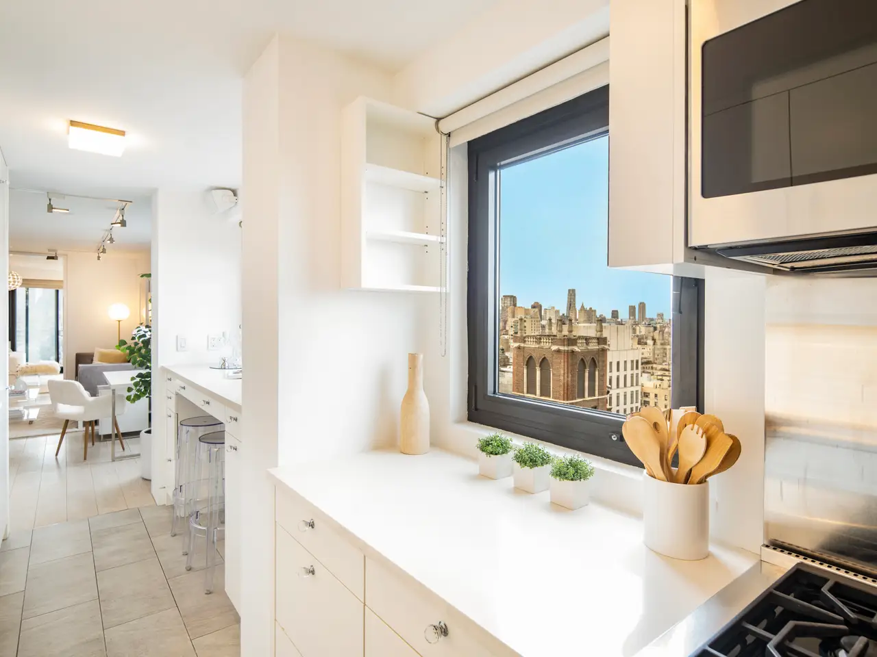 HIGH floor - LOW maintenance - TRIPLE MINT! This triple-mint one bedroom co-op has one-and-a-half bathrooms, very low maintenance, and a private balcony with spectacular views. Very large picture windows frame Central Park to the west and unobstructed skyline views to the south - featuring New York's most iconic buildings. Gut-renovated and meticulously designed, this apartment is NOT VIRTUALLY STAGED - it even looks better in-person! The kitchen has two large windows, with an eat-in breakfast bar, and top-of-the-line appliances (Wolf gas range, Sub-zero refrigerator, and a Bosch washer and dryer)! The large bedroom (separated from the living room with substantial pocket doors for privacy) has incredible open southern views. The primary bathroom has an Italian white Carrara marble vanity, with defogging electric medicine cabinets. The powder room is equally well-appointed. This very well-priced apartment has excellent storage throughout - including a large walk-in closet. 111 East 85th Street is a white-glove cooperative, situated perfectly off Park Avenue in New York's desirable Upper East Side. Only two blocks from Central Park, the Metropolitan Museum of Art, and some of New York City's finest shops, restaurants, supermarkets, fitness clubs, and subways (4,5,6 and Q trains). This is a neighborhood full of wonderful amenities. 111 East 85th Street has a live-in resident manager, 24-hour doorman, on-site garage (accessible directly from the lobby with a DISCOUNTED shareholder rate), storage facilities, bike room, and a furnished roof deck with 360-degree views. The building allows 65% financing, has NO FLIP TAX, is pet-friendly, and there is a special assessment in place of $426.31 per month until June 2023.
