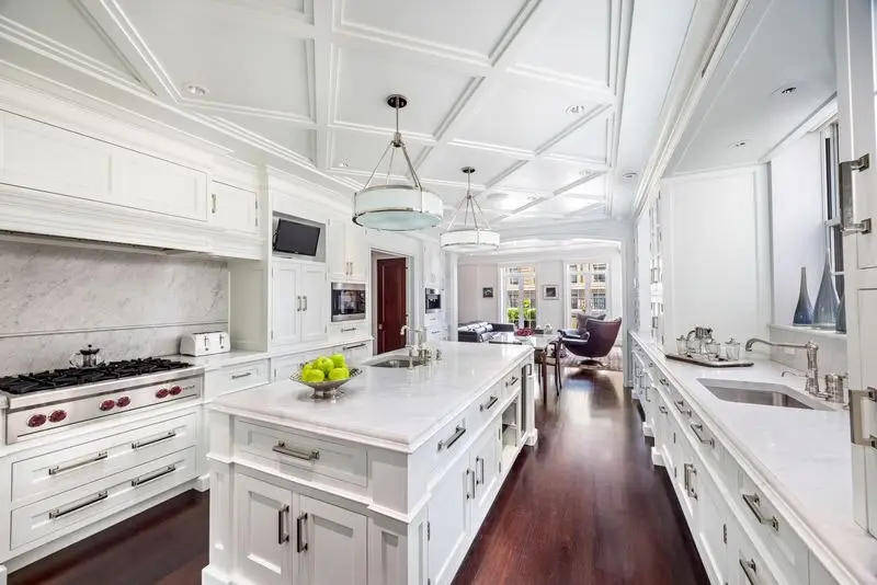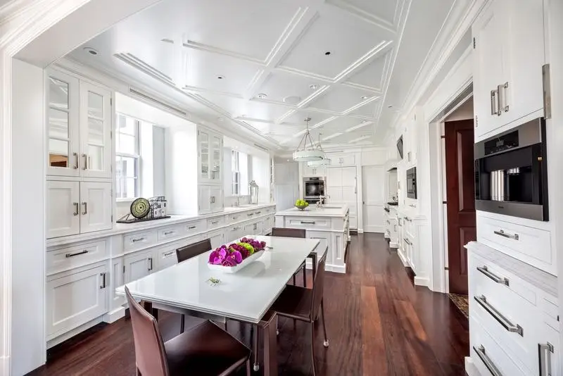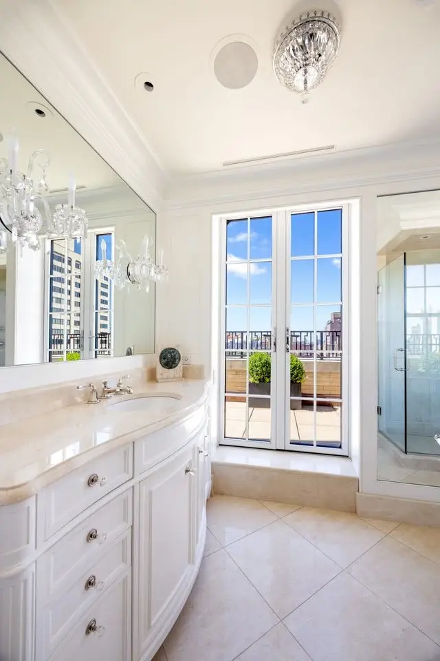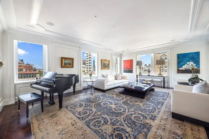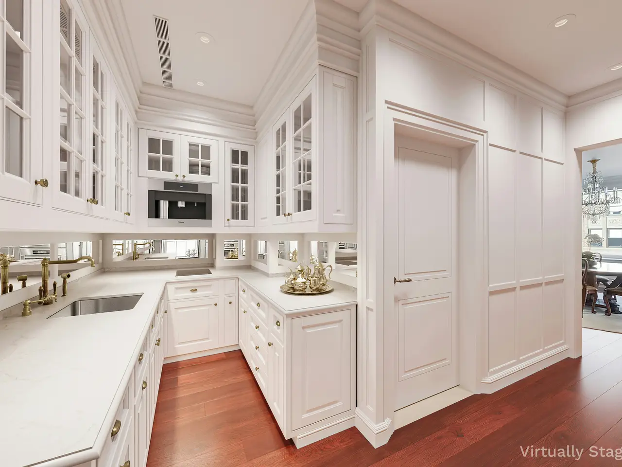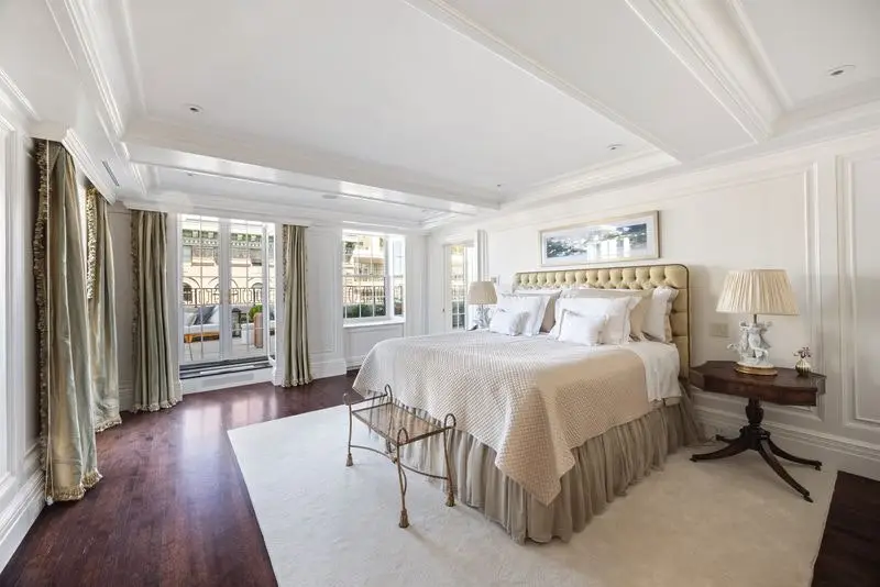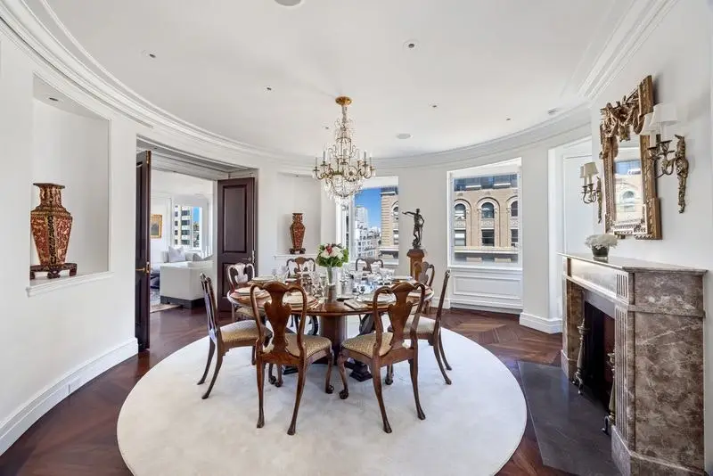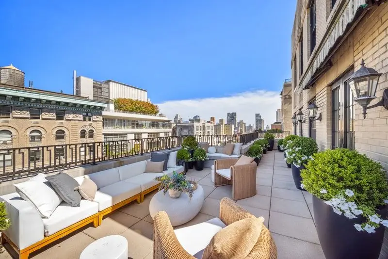 TRIPLE MINT 6,985 SQ FT. PENTHOUSE Perfectly situated in one of Park Avenue's most prestigious white-glove cooperatives, this extraordinary penthouse has been renovated to perfection and boasts 6,985 square feet of interior space and 1,300 square feet of beautifully landscaped terraces. The home enjoys magnificent open views spanning westward to Central Park and capturing the Manhattan Skyline to the south. The residence consists of 14 rooms, 5 bedrooms, 6 full bathrooms, and 2 powder rooms. Natural light stream in from all four exposures throughout the day. The 16th Floor: A private elevator landing opens into a dramatic circular marble gallery, anchored by a sweeping staircase with a finely wrought bronze balustrade. To one side, a handsome paneled mahogany library with a wood-burning marble fireplace and three French doors opens to a western terrace facing Central Park. Adjacent, a large and inviting corner family room has access to an additional landscaped terrace. At the heart of the home, the spectacular chef's kitchen is designed for both everyday living and grand entertaining. Outfitted with custom cabinetry, expansive Carrara marble surfaces, and top-of-the line appliances, it provides both elegance and functionality. A private office , powder room and internal elevators complete this level. The 17th Floor: Ascending the marble staircase-or arriving by elevator to a private elevator vestibule-guests are welcomed into an expansive marble gallery leading to an impressive living room and an elegant circular dining room. Perfectly proportioned and filled with natural light streaming in through oversized picture windows, the living room enjoys triple exposures and striking city views. The dining room, distinguished by mahogany inlaid floors and a marble wood-burning fireplace, sets the stage for unforgettable gatherings. Supporting these grand entertaining spaces are a fully equipped butler's pantry, staff quarters or fifth guest suite with full bath, and an additional powder room. The 18th Floor: The enormous private bedroom floor has a total of four bedrooms and five bathrooms. The sprawling primary suite has dual over-sized bathrooms and vast amounts of closet space. The suite has triple exposures and is surrounded by a beautifully landscaped terrace with open views toward Central Park. There are three additional corner bedrooms with an en-suite marble baths and walk-in closets. All of the bedrooms have impressive open views and are pin-drop quiet. A spacious laundry room completes this level of the residence. The Building: Built in 1930 and designed by renowned architectural firm Sloan & Robertson, 895 Park Avenue is a prestigious white-glove cooperative in the heart of the Upper East Side Historical District. Residents enjoy impeccable white-glove service, including 24-hour doormen, porters, a resident manager, a state-of-the-art gym, and a squash court. The building permits 50% financing, is pet-friendly, and there is a 3% buyer-paid flip tax.