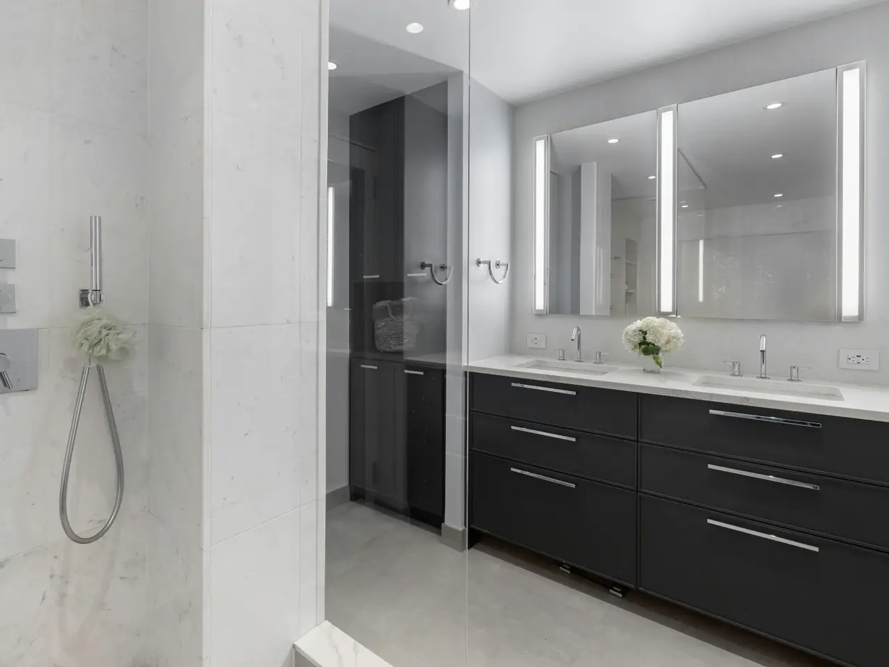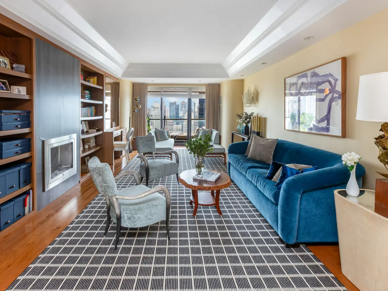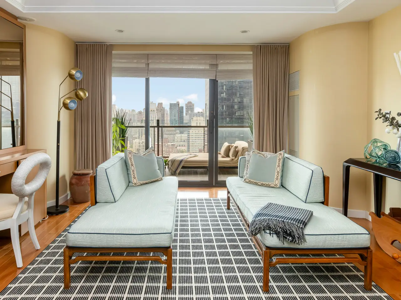 Triple Mint Stunning Home at the Sovereign Highly desirable A line on the 30th floor with glorious open city and bridge views on offering for the first time after a careful and meticulous renovation. This spacious and elegant home offers 65 feet of north to south vast entertaining and living space, 2-3 sizable bedrooms, 3 full baths plus powder room and a gorgeous custom kitchen. A private stone paved balcony offers room to lounge, host an al fresco meal and soak in the views with cinematic vistas of the cityscape and 59th Street Bridge. A semi-private landing leads to the most captivating entry- a dramatic central foyer and gallery with cove ceiling and beautiful lighting- providing a focal point of the incredibly vast living room and balcony to the north- and family room / den to the south. With many options for formal and relaxed living - there's a delightful sense of spaciousness, scale and flow. A fabulous onyx powder room is ideally positioned for guest use. The 24 foot formal living room is grandly proportioned and offers multiple seating areas- handsome walnut millwork, decorative fireplace, and a functional and chic built-in desk and directly opening onto the balcony for a lovely opportunity to mingle indoor and outdoor living. To the south is an ample family or media room for more casual living, banquet sized formal dining, or space to relax or entertain. Cleverly opened to the stunning chef's kitchen- you and your guests will feel invited into the action- yet with the ideal separation of space for practical function. The custom windowed kitchen features solid walnut cabinetry, Quartz countertops, a top of the line Wolf range top that vents externally, as well as a Wolf wall oven and convection microwave. In addition, a Subzero refrigerator, Miele dishwasher, and best of all a Miele stacked & vented washer/dryer. Copious storage and pantry space - sun filled thanks to its large south facing window and a cheerful place to prepare lavish meals. The formal dining room offers more custom millwork for dinnerware storage, a custom banquette and provides space for gracious formal or casual dining. This room is often and easily turned into a third bedroom in this line thanks to its adjacent renovated pristine full bathroom. The bedroom wing provides the most generous and luxurious of primary bedroom suites with lovely sun-filled views, significant custom wardrobe storage including a walk-in closet, and a spa worthy expanded en-suite bathroom with double vanity- discreet water closet- oversized step-in shower and soaking tub- tastefully and smartly appointed in Bianco marble slabs and tile work. Radiant floors keep toes warm on chilly mornings, complemented by a classic towel warmer. The second bedroom is also king-sized and offers custom closets, interesting and bright open views, and a renovated en-suite bathroom of Carrera marble. No walls are shared between bedrooms for extra privacy. Important upgrades in this showpiece home include new walnut flooring in all public rooms, new double insulated sound proof windows and new HVAC system to ensure year-round comfort. Recessed lighting on dimmers throughout the entire home and custom window treatments .This serene home is blissfully quiet throughout at all times of day. The Sovereign is one of the most beloved full service residences on the East Side providing a large and helpful staff, driveway for ease of access, in-building garage with direct access from the lobby, on-site management, private storage, health club, bike room, gardens, resident manager, porters and handymen. 65% financing is permitted, up to two dogs are permitted with board approval, sublets allowed with Board approval for 1-2 year terms, up to 8 years total.