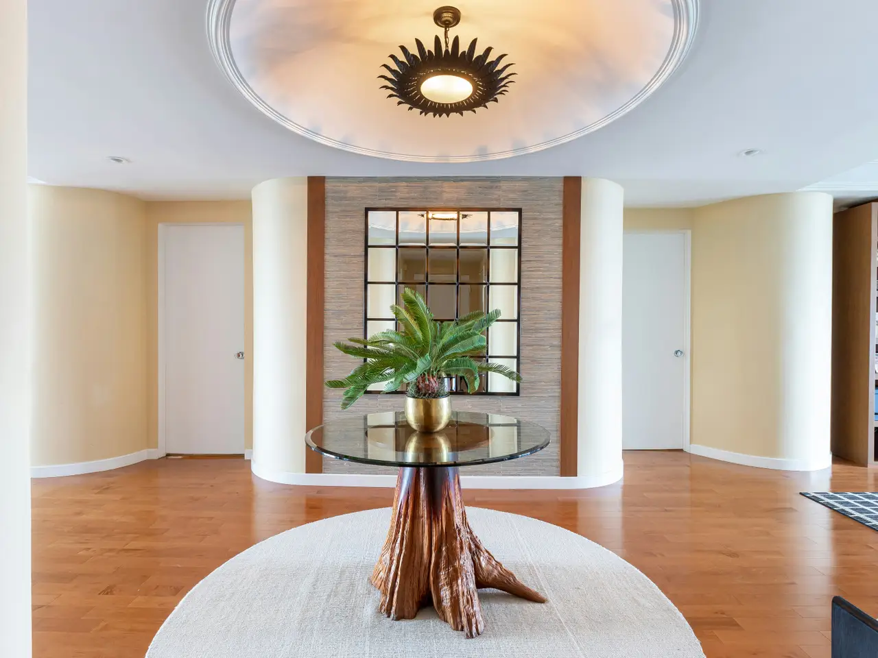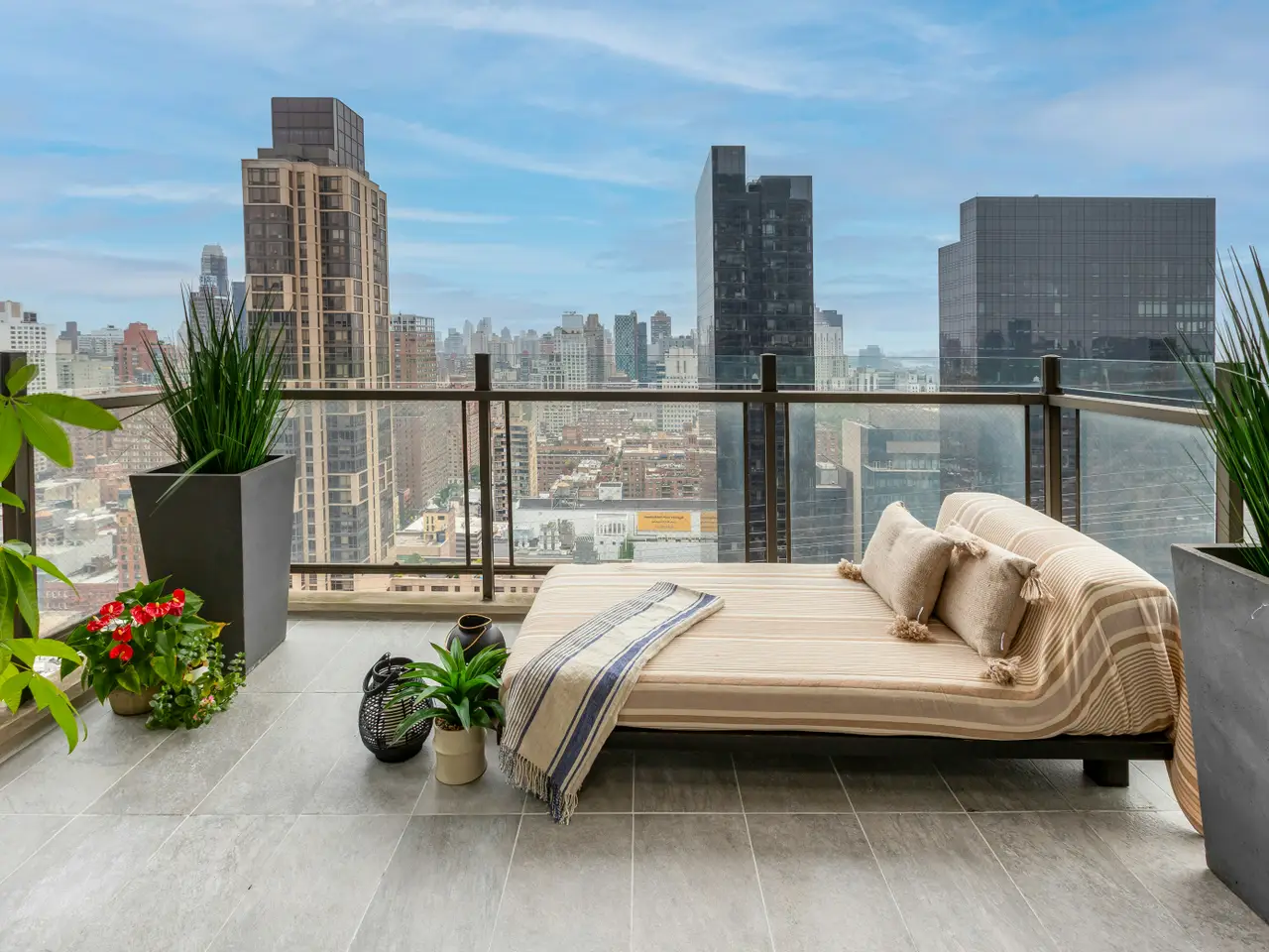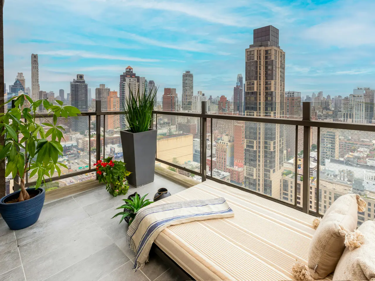 Triple Mint Stunning Home at the Sovereign Highly desirable A line on the 30th floor with glorious open city and bridge views on offering for the first time after a careful and meticulous renovation. This spacious and elegant home offers 65 feet of north to south vast entertaining and living space, 2-3 sizable bedrooms, 3 full baths plus powder room and a gorgeous custom kitchen. A private stone paved balcony offers room to lounge, host an al fresco meal and soak in the views with cinematic vistas of the cityscape and 59th Street Bridge. A semi-private landing leads to the most captivating entry- a dramatic central foyer and gallery with cove ceiling and beautiful lighting- providing a focal point of the incredibly vast living room and balcony to the north- and family room / den to the south. With many options for formal and relaxed living - there's a delightful sense of spaciousness, scale and flow. A fabulous onyx powder room is ideally positioned for guest use. The 24 foot formal living room is grandly proportioned and offers multiple seating areas- handsome walnut millwork, decorative fireplace, and a functional and chic built-in desk and directly opening onto the balcony for a lovely opportunity to mingle indoor and outdoor living. To the south is an ample family or media room for more casual living, banquet sized formal dining, or space to relax or entertain. Cleverly opened to the stunning chef's kitchen- you and your guests will feel invited into the action- yet with the ideal separation of space for practical function. The custom windowed kitchen features solid walnut cabinetry, Quartz countertops, a top of the line Wolf range top that vents externally, as well as a Wolf wall oven and convection microwave. In addition, a Subzero refrigerator, Miele dishwasher, and best of all a Miele stacked & vented washer/dryer. Copious storage and pantry space - sun filled thanks to its large south facing window and a cheerful place to prepare lavish meals. The formal dining room offers more custom millwork for dinnerware storage, a custom banquette and provides space for gracious formal or casual dining. This room is often and easily turned into a third bedroom in this line thanks to its adjacent renovated pristine full bathroom. The bedroom wing provides the most generous and luxurious of primary bedroom suites with lovely sun-filled views, significant custom wardrobe storage including a walk-in closet, and a spa worthy expanded en-suite bathroom with double vanity- discreet water closet- oversized step-in shower and soaking tub- tastefully and smartly appointed in Bianco marble slabs and tile work. Radiant floors keep toes warm on chilly mornings, complemented by a classic towel warmer. The second bedroom is also king-sized and offers custom closets, interesting and bright open views, and a renovated en-suite bathroom of Carrera marble. No walls are shared between bedrooms for extra privacy. Important upgrades in this showpiece home include new walnut flooring in all public rooms, new double insulated sound proof windows and new HVAC system to ensure year-round comfort. Recessed lighting on dimmers throughout the entire home and custom window treatments .This serene home is blissfully quiet throughout at all times of day. The Sovereign is one of the most beloved full service residences on the East Side providing a large and helpful staff, driveway for ease of access, in-building garage with direct access from the lobby, on-site management, private storage, health club, bike room, gardens, resident manager, porters and handymen. 65% financing is permitted, up to two dogs are permitted with board approval, sublets allowed with Board approval for 1-2 year terms, up to 8 years total.