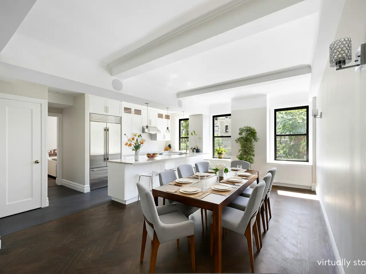 Turn-Key Prewar Riverside Classic 6 Apt. 3A at 340 Riverside Drive is the epitome of gracious prewar living - fully reimagined for today. At approximately 1,900 SF, this gut-renovated, turn-key Classic Six blends timeless elegance with modern comfort and functionality. The apartment's thoughtful renovation created a bright and airy open chef's kitchen seamlessly connected to the dining room, ideal for both everyday living and entertaining. The former maid's room has been transformed into a proper third bedroom or home office, maximizing flexibility while preserving a generously scaled layout. With 13 windows - 9 facing south and 4 facing west - natural light fills every room. The expansive living room features oversized windows framing leafy treetop views in summer and Hudson River vistas in winter. The primary suite enjoys open southern exposures, while the secondary bedroom boasts a prized corner position with both south and west light. The renovation carefully preserved the apartment's prewar character - high 9'3" ceilings, herringbone hardwood floors, and a gracious entry foyer - while introducing crisp, contemporary finishes in the kitchen and baths, along with updated systems throughout. Built in 1926, 340 Riverside Drive is a distinguished full-service cooperative on a landmarked stretch of the Upper West Side. Amenities include a 24-hour doorman, live-in super, storage lockers, bicycle storage, and a pet-friendly policy. Pied-à-terre are considered on a case-by-case basis. Just outside your door is Riverside Park, Columbia University, excellent shopping, dining, and cultural destinations, with the Broadway bus and #1 subway minutes away. This is a rare opportunity to move right into a fully renovated prewar home in one of Riverside Drive's most coveted cooperatives.