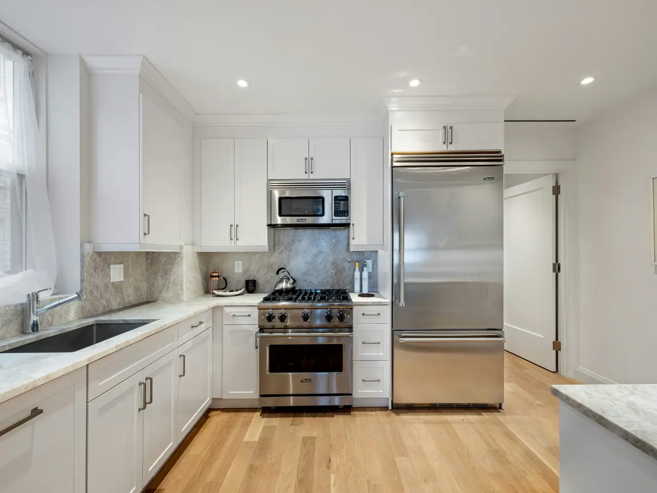 Sponsor Sale - No Board Approval Required! Apartment 9C at 1150 Fifth Avenue is a reimagined classic six by J. E. R. Carpenter with three bedrooms, an office, and three full bathrooms, boasting 10ft ceilings, moments from Central Park.A closet lined entry foyer flows to a sunny south facing living room anchored by a wood burning fireplace and tree lined views of 96th Street and Central Park. An adjoining dining area conveniently accommodates six. The private wing includes a serene north facing primary bedroom and a spa like ensuite bath finished in Calacatta stone with a walk-in shower. Two additional bedrooms offer generous storage, and there is a second bath with a relaxing soaking tub. The windowed chef's kitchen is a showpiece with honed Taj Mahal stone counters and backsplash, custom Shaker cabinetry, and a full suite of Viking appliances. The adjacent dedicated office enjoys its own full bath, ideal for flexible guest use. South facing rooms are bathed in sunlight, while white oak strip floors run throughout, tying the layout together with warmth and character. A stacked washer and dryer are tucked away for convenience. Building amenities elevate daily life with a fitness room, a landscaped roof garden with Central Park views, and a bike room. Pets are permitted. Services are comprehensive with a door attendant on duty at all hours, a live in superintendent, and an experienced staff of porters and a handyman. Beyond the front door are the Reservoir, East Meadow playgrounds, and the Central Park Tennis Center. Turnkey and sponsor owned, 9C is ready for immediate occupancy in Carnegie Hill.