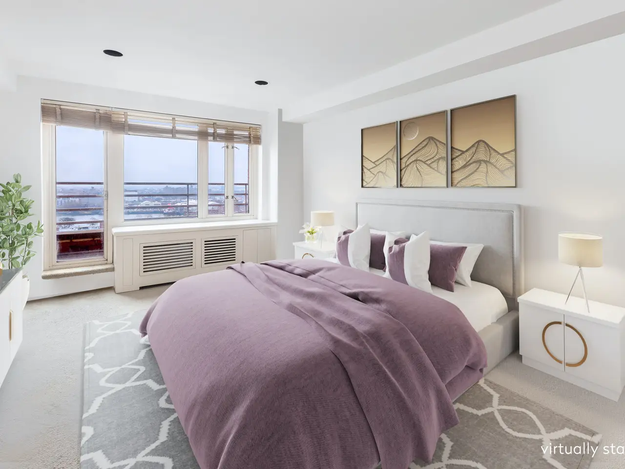 River and Bridge views! 3 Private terraces! Superb layout!. This 2 bedroom 2 bath cooperative with unobstructed, breathtaking views east, north and south, can be enjoyed from the dining room, living room, primary and second bedrooms. The primary bedroom is very large with plenty of closets and en suite bath. The second bedroom also large faces east with en suite bath. The apartment features lots of additional closets hardwood floors and is pin drop quiet. Apartment 17B will require your imagination and creativity to make this your home. One Gracie Terrace is a classic, mid-century cooperative in the Upper East Side's Yorkville neighborhood and features an elegant lobby, a tranquil courtyard, a light-filled gym with Peloton and Cybex machines, bicycle storage, an attached garage for a separate fee and a full complement of round-the-clock and attentive building staff. One Gracie Terrace is a pet-friendly community. Overlooking the East River Esplanade and two blocks from the verdant Carl Schurz Park, One Gracie Terrace is served by the Q train and the Select Bus Service along First and Second Avenues. Local gourmet dining and shopping options include Felice 83, Quatorze, Schaller's Stube Sausage Bar, Emack and Bolio's, Fairway, Ottomanelli's and the 82nd Street Saturday Greenmarket.