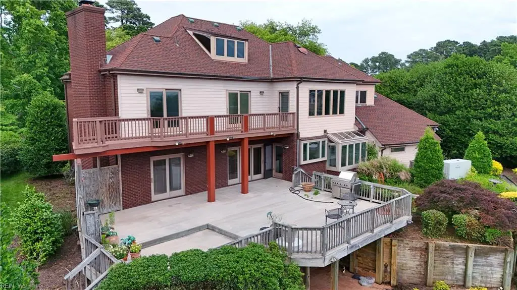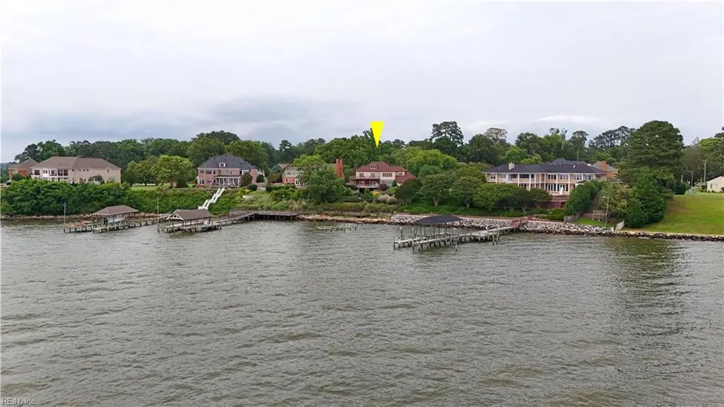 This custom-built James River waterfront home features the best sunsets possible in a convenient location in midtown. The full basement is a walk-out with wood burning fireplace, mechanical, recreational, storage and wine cellar rooms. Primary suite offers his & her bathrooms, large walk-in closet with a balcony over looking the river. A crow's nest entry from the second floor spiral steps is perfect for telescopic views of the abundance of fowl & dolphin activity. FIRST FLOOR OFFICE & BAR. "SOLD AS IS"