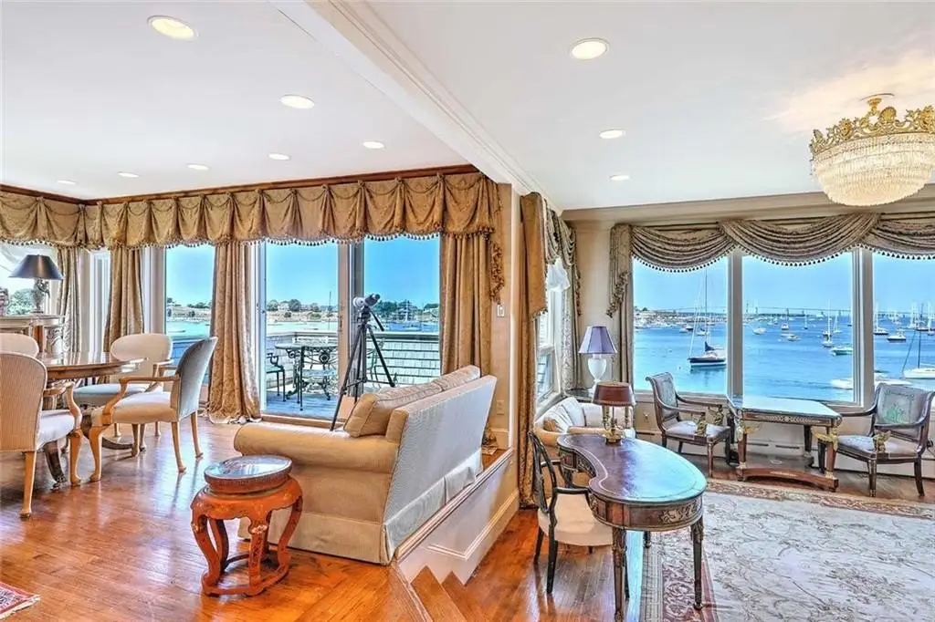 This remarkable townhouse-style condo is part of the coveted Beechbound Condo Association, and available for the first time in 25 years. Offering a front row seat to the most beautiful views of Newport Harbor front. Overlooking a steady parade of boating life and the Newport Bridge - the ever-changing sky, sun and clouds promise a view that always delight. This beautiful property has been renovated to the highest standards with meticulous custom cabinetry in each of the four ensuite bedrooms. The expansive primary suite occupies the upper level and enjoys a large deck that over looks Beautiful Newport Harbor. The finely finished primary bathroom offers teak and holly flooring, and custom teak cabinetry throughout. The lower level has two well-sized bedrooms each with finely finished bathrooms. The lower level also has a second beautiful kitchen, meticulously outfitted, perfect for when housing a group of sailors or extended family. The lower level also has its own terrace for enjoying the outdoors. Beechbound stately grounds are the perfect setting for enjoying life on the waterfront. The Beechbound boat house dock and launch pad add wonderful access to fun on the waterfront, whether its to launch a paddle board and enjoy the harbor or taking the Launch boat over to Bannisters Wharf for Dinner, the Life Style offered with this property is exceptional.