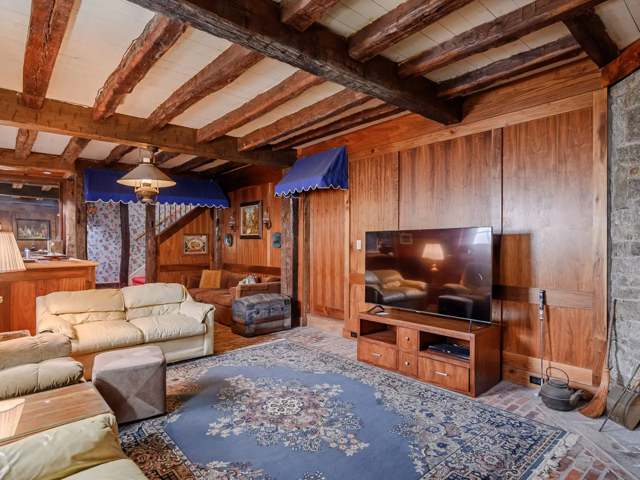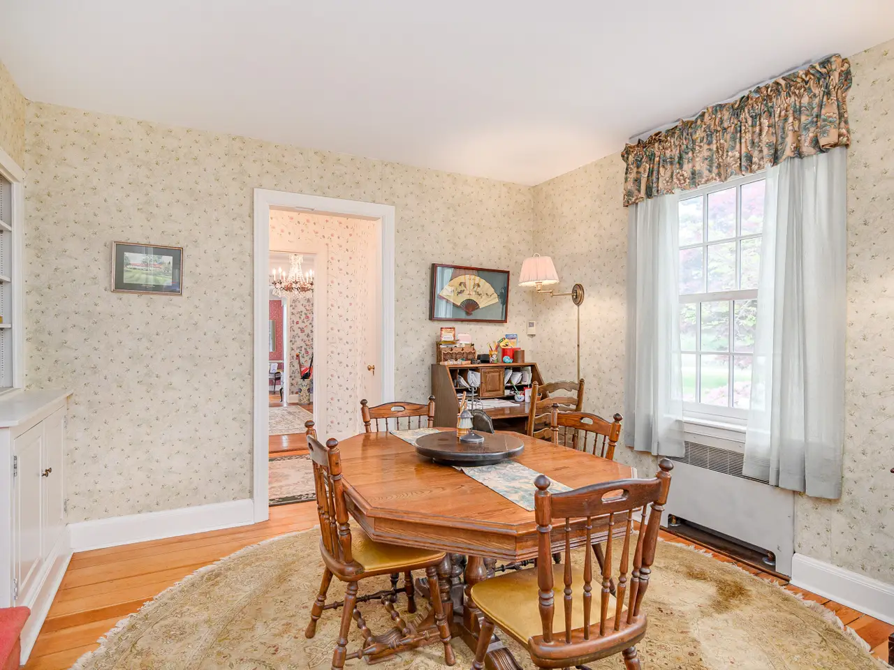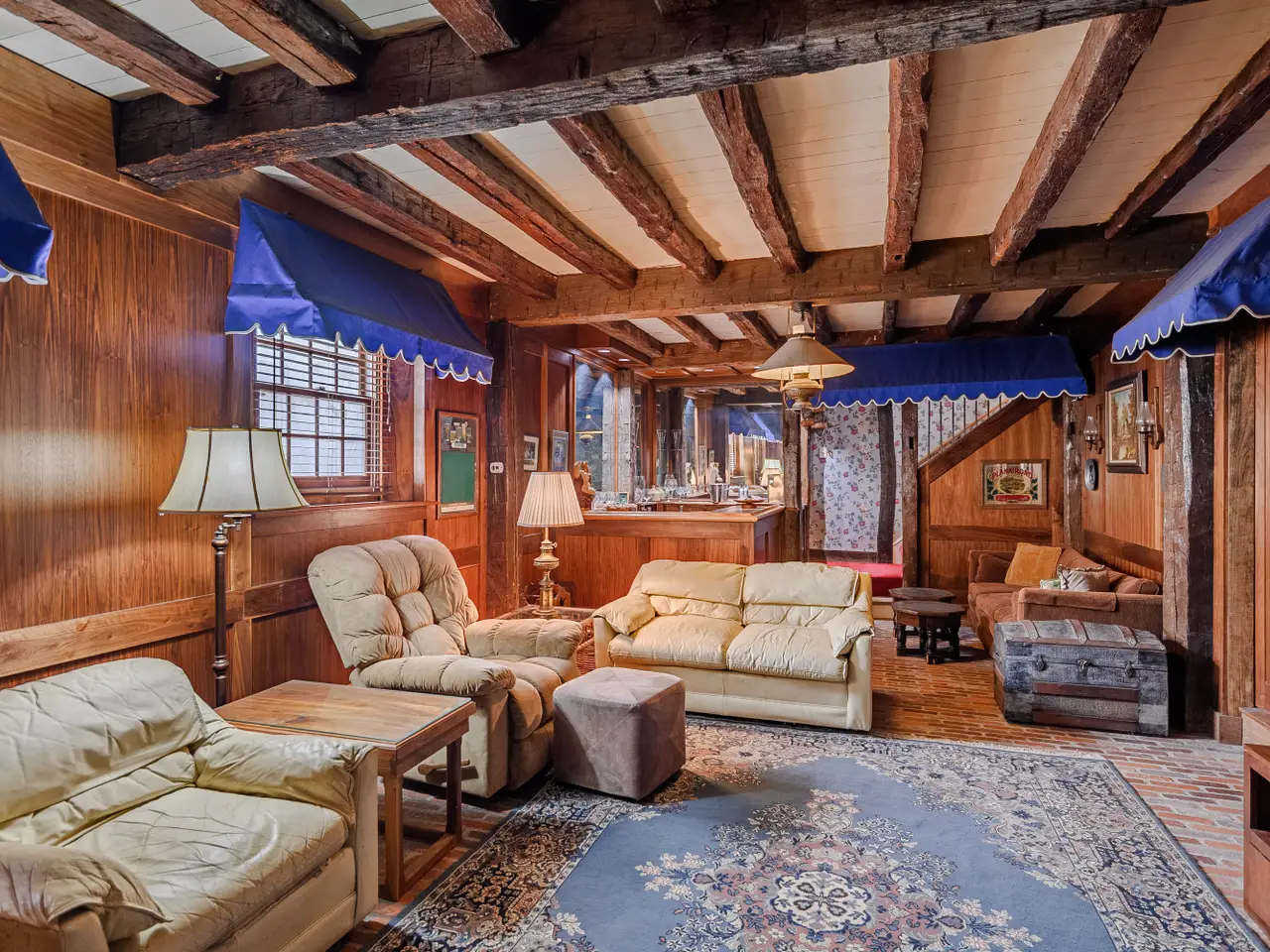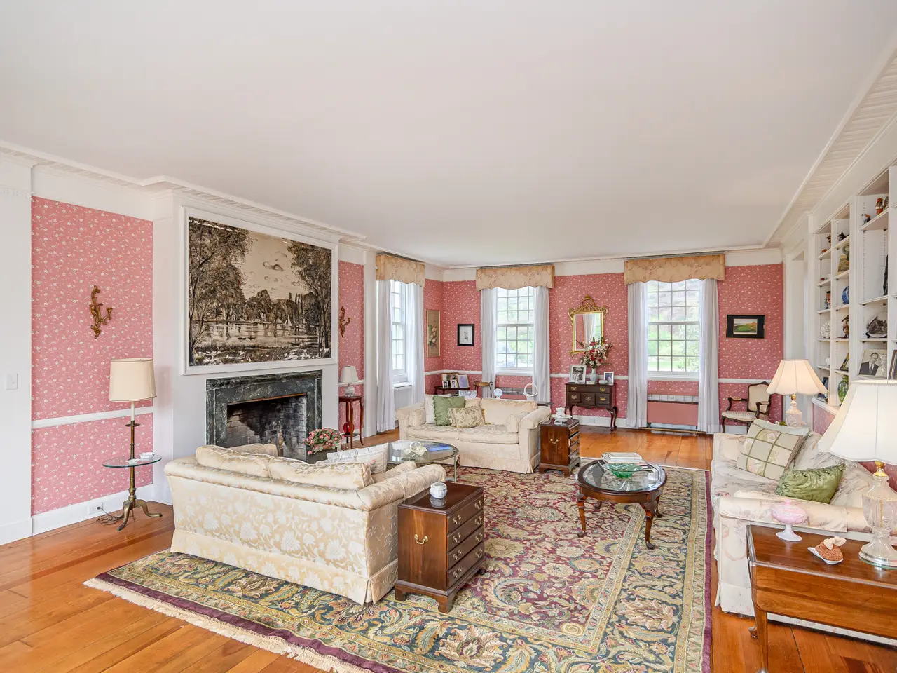 Welcome to 49 Great Ring Road-an iconic estate with breathtaking views and a classic 1940 built home full of charm and elegance. Step into the front-to-back foyer and take in the sight lines to the expansive stone patio and sparkling pool. At the heart of the home is the great room, featuring a soaring ceiling and a grand fireplace-perfect for gatherings. The custom cherry sunroom is a showstopper with wide plank chestnut floors, coffered ceiling, and French doors leading outside. Host memorable dinners in the banquet-sized dining room with built-ins and a cozy fireplace. The updated kitchen features granite counters, a breakfast bar, large pantry, and adjacent laundry area. A delightful breakfast room and an oversized screened-in porch complete the space. The primary suite is a two-room retreat with two fireplaces, ample closets, dual baths, and a balcony overlooking the grounds. Upstairs, you'll find three additional ensuite bedrooms, plus two more bedrooms with a shared full bath. The finished lower level includes a custom bar and a parlor with fireplace. Potential in-law suite over the kitchen with a full bath. A detached two-car garage includes guest quarters. Additional land available-an extraordinary opportunity. The right side of the house features air conditioning via a split system, while the left side (as you face the home) does not have A/C but could be easily updated. The guest house will require a new kitchen. There is also space above the kitchen that could serve as an in-law suite or playroom. Please refer to the floor plans for a better understanding of the layout-this exceptional home offers an abundance of flexible and beautifully designed space.