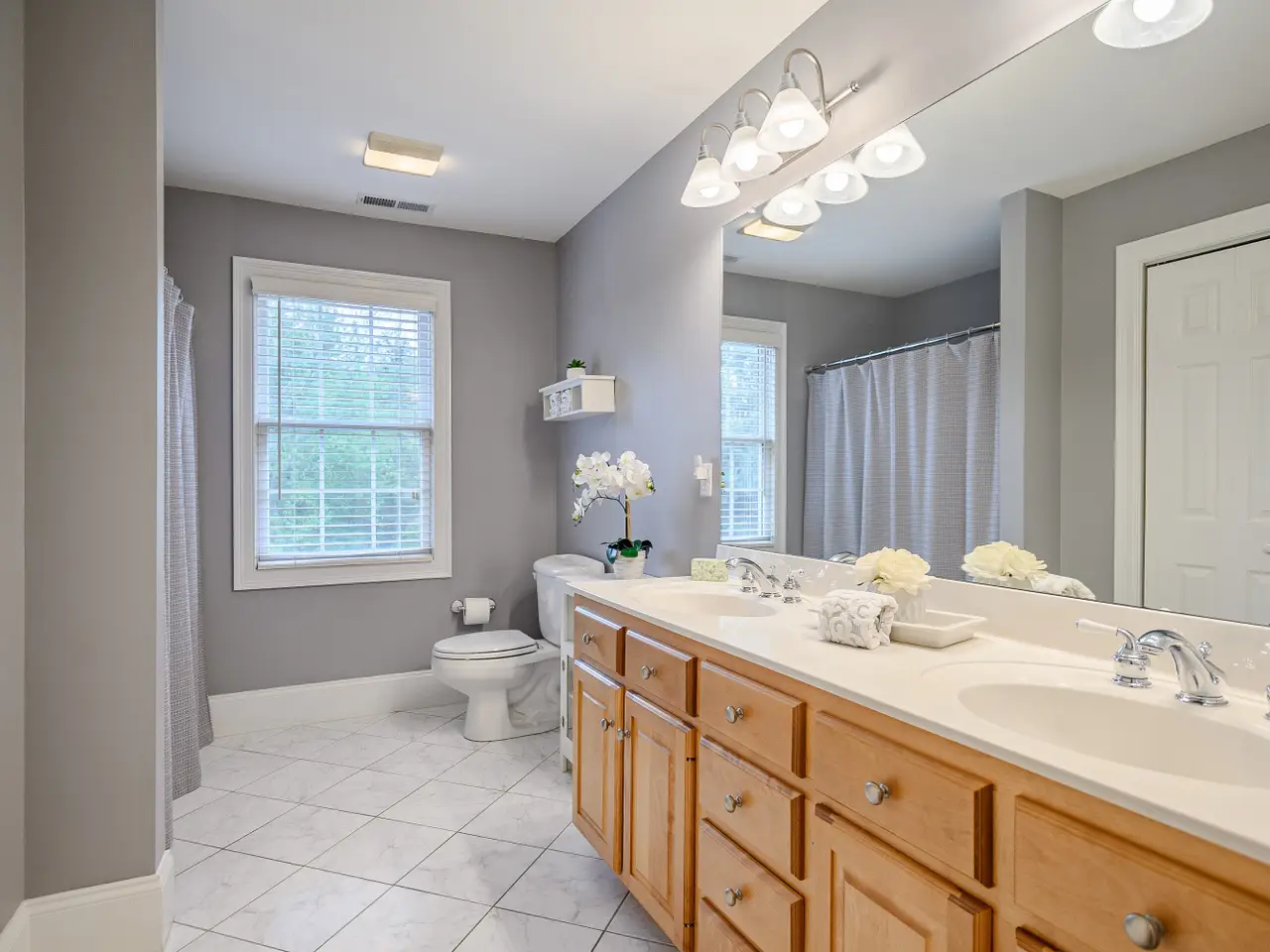 Your search is over! This stunning Colonial is perfectly situated on a beautiful lot nestled on one of Newtown's most desirable cul-de-sacs. The home with its nearly 5000 sqft combines timeless design with modern comfort offering an ideal blend of elegance & functionality. At the heart of the home, the chef's kitchen boasts a Viking gas cooktop, SS double ovens & a spacious island with abundant workspace. The kitchen flows effortlessly into the elegant Dining Rm & opens to the impressive two story Great Rm creating the perfect setting for both everyday living & special gatherings. The inviting fireplace & palladian window illuminate the space adding warmth & ambiance. A dual staircase enhances the home's flow adding both function & architectural interest. Working remotely? The main flr study offers a private dedicated workspace. Upstairs the serene Primary Suite features a tray ceiling, a spa-like bath/frameless glass shower/deep soaking tub & dual vanities. The spacious walk-in closet is a room of its own with built-ins & offers access from both the Primary Suite & Laundry Rooms. Three additional Bdrms & two full baths-including a Jack-and-Jill-complete the second floor. The finished walkout lower level is the ultimate recreation & media space thoughtfully designed & offers a half bath with a deep sink that doubles as a functional doggie spa for small breeds. Step outdoors to the deck where you can enjoy nature, dine alfresco, lounge and relax in an all season hot tub Pride of ownership abounds throughout this home with so many improvements and upgrades such as new Central Air units, newer well water tank, new Viking cooktop, Radon air and water systems in place, the list goes on. Come live your best life!