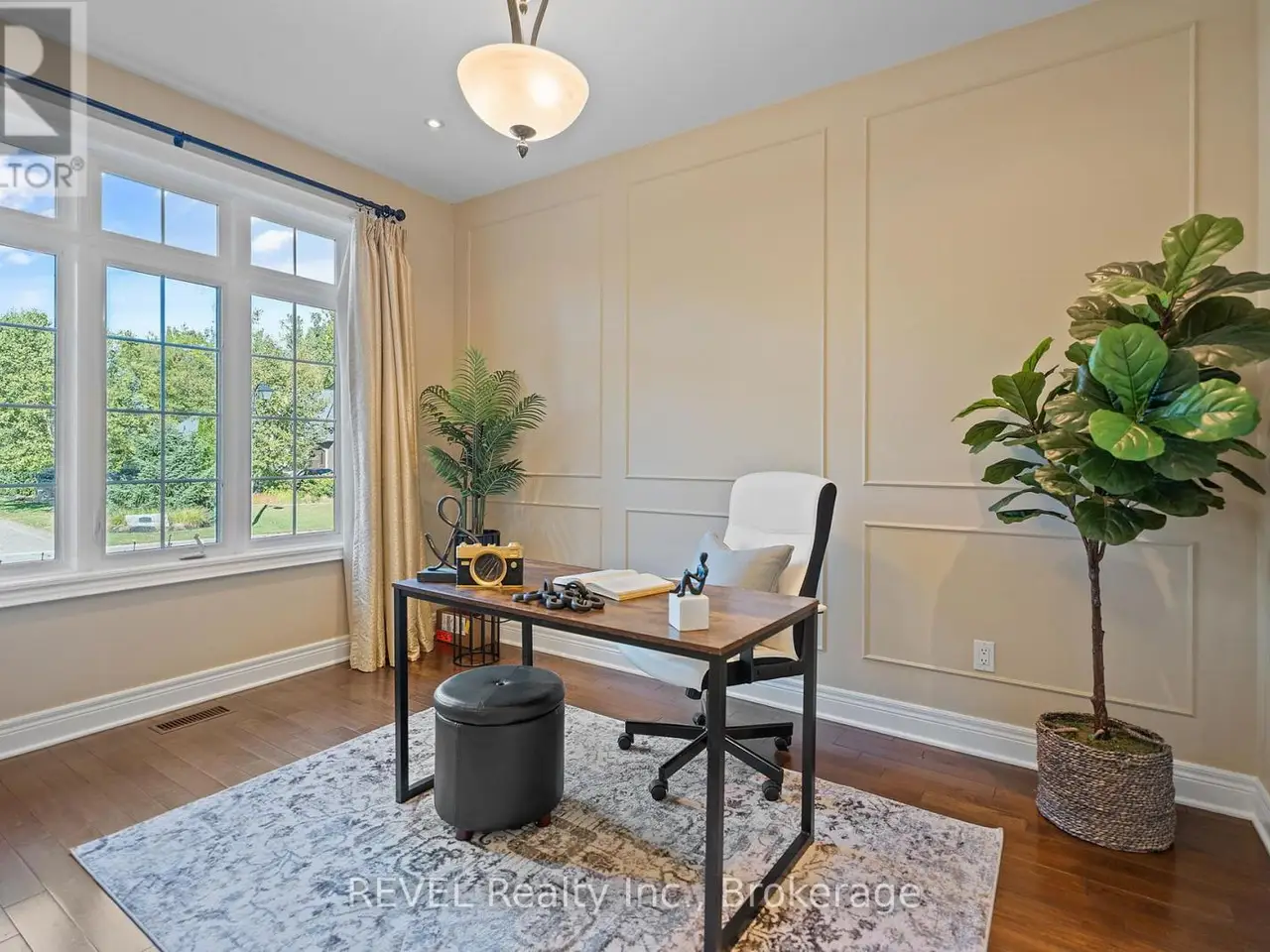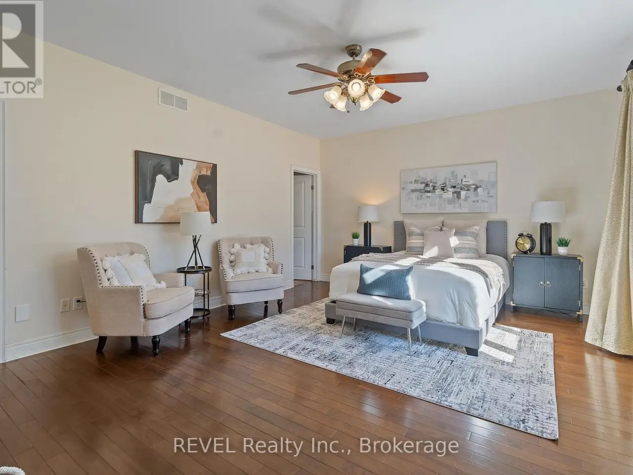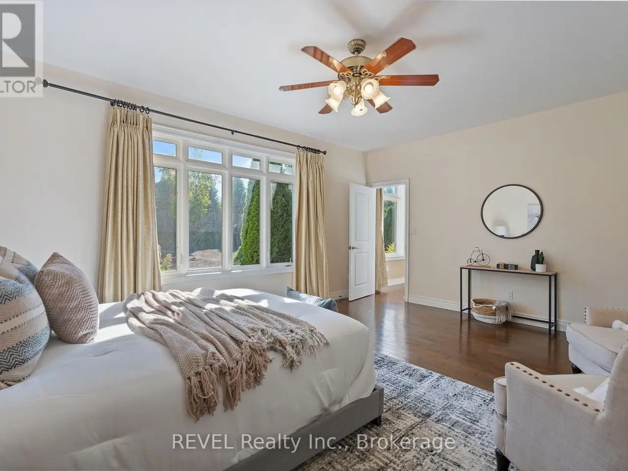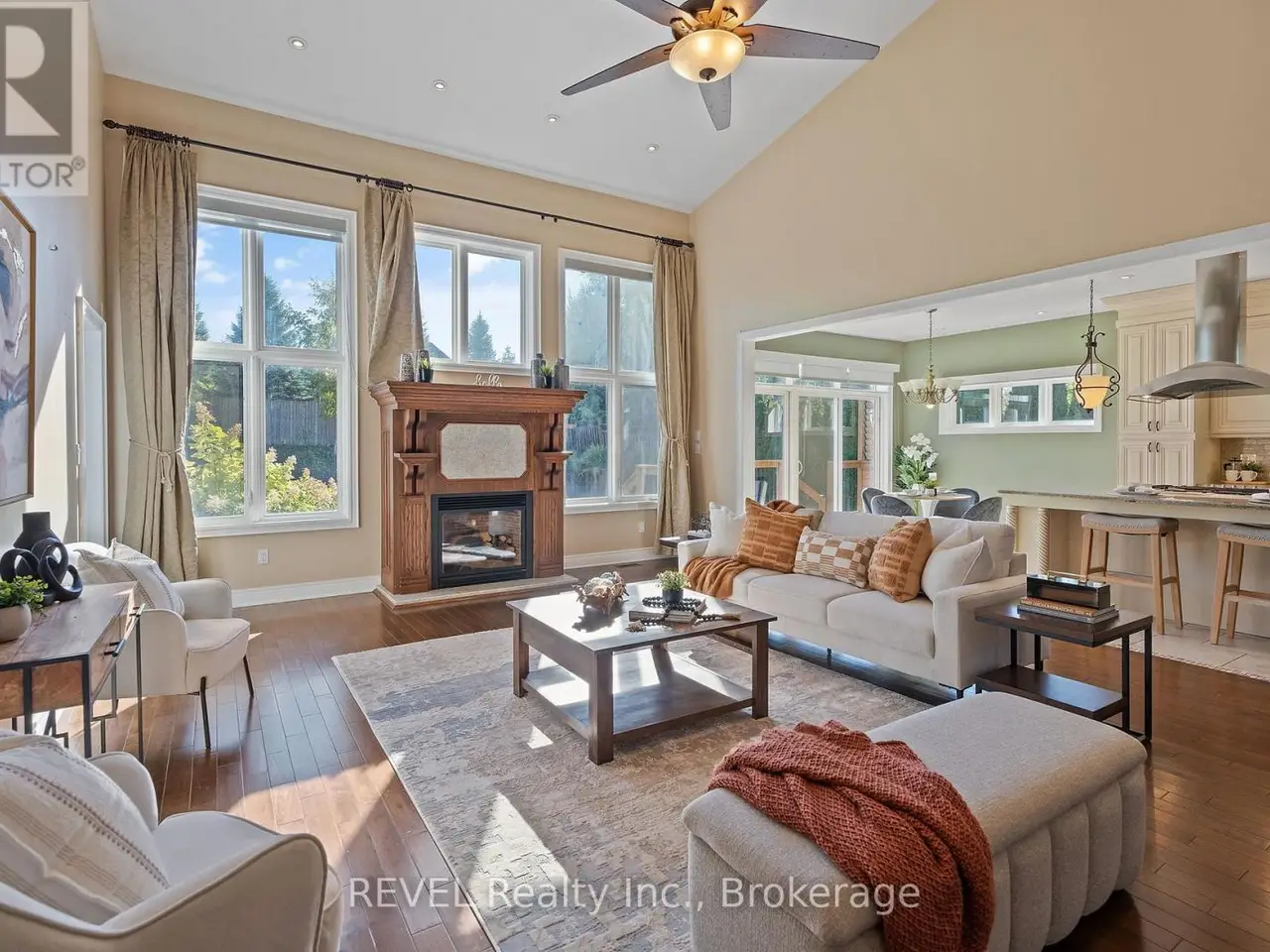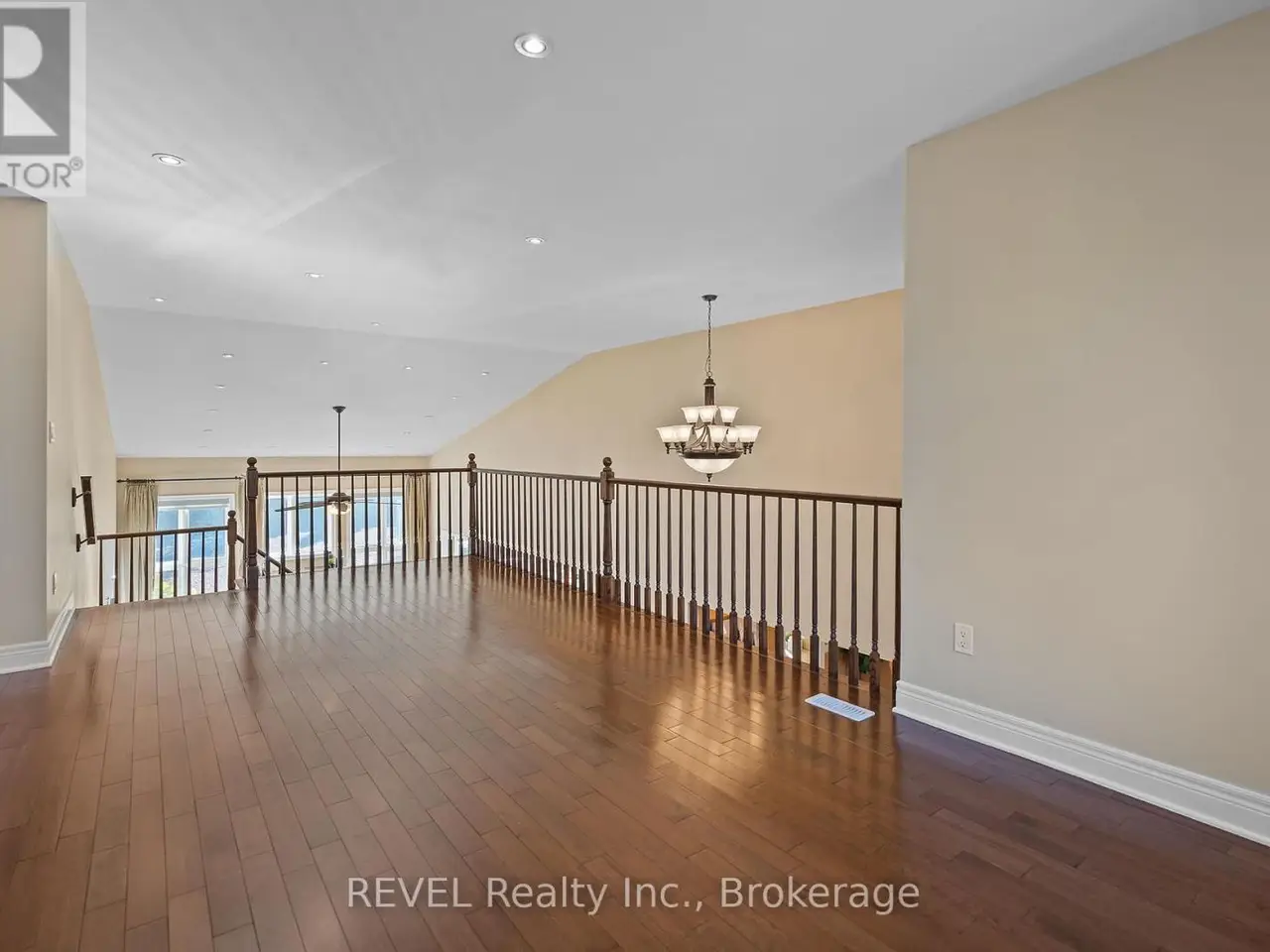 Nestled in one of Niagara's most prestigious neighbourhoods, Calaguiro Estates in North-End Niagara Falls, 6718 Domenic Crescent offers an extraordinary residence on a 100 x 193 ft estate-sized lot. With approximately 3,000 sq.ft. of above-grade living space, this custom-built home is designed with sophistication and comfort in mind. The main floor impresses with 20-ft soaring vaulted ceilings, a fireplace, and an open-concept layout that perfectly blends elegance and function. The custom kitchen features granite countertops and ample cabinetry, flowing seamlessly into the bright living and dining areas filled with natural light. The main floor primary suite offers a 5-piece ensuite and walk-in closet, while main floor laundry and a dedicated office add everyday convenience. Upstairs, the open-concept family room overlooks the main level, enhancing the homes spacious, connected feel.The basement features a finished bedroom and a 5-piece bathroom, with plenty of additional space to complete another bedroom, a workout room, and a recreation area. It also offers a walk-up to the backyard. Outside, the expansive, fully fenced yard lined with mature cedars provides exceptional privacy and the potential to create your dream resort-like retreat. Ideally located near the QEW, top schools, and all North-End Niagara Falls amenities, this stunning property embodies luxury living in one of Niagara's most coveted communities. (id:7434)