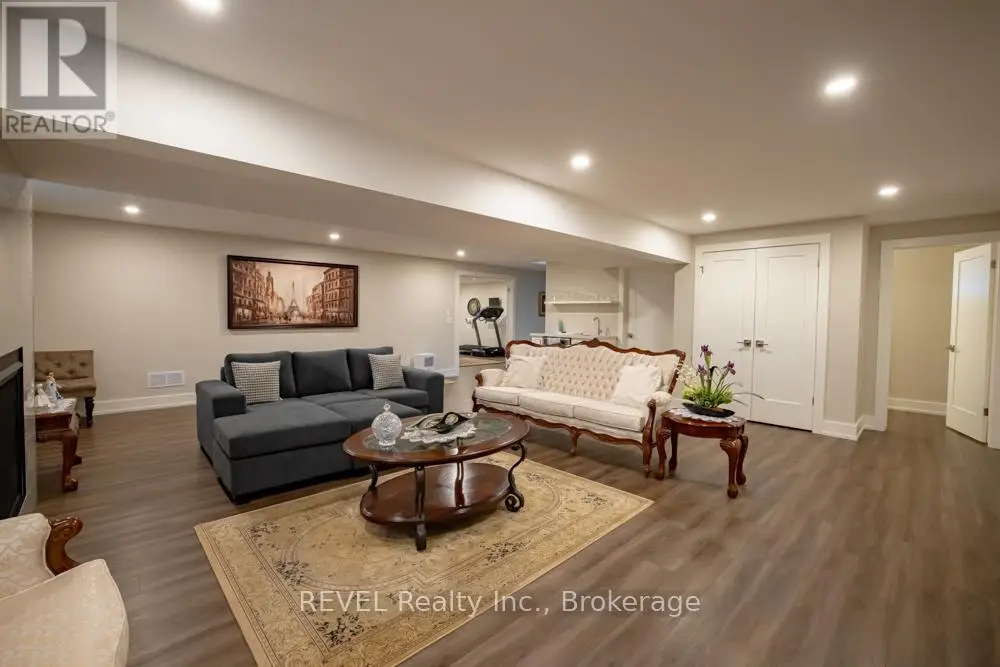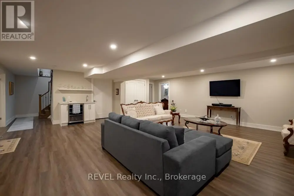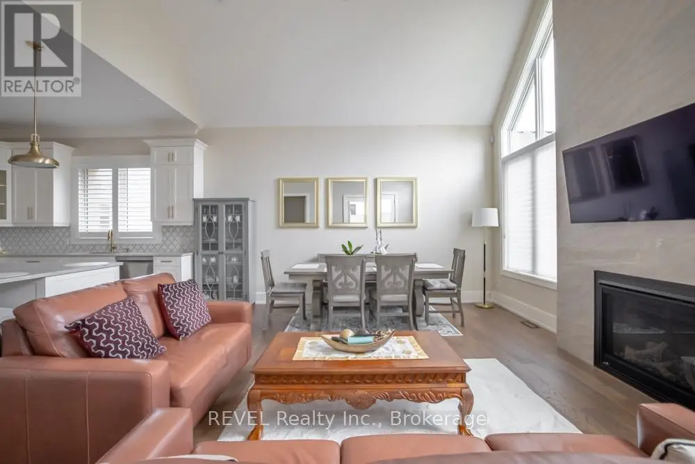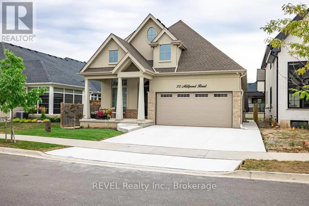 Set on a quiet, refined streetscape in the heart of St. Davids, 75 Millpond Road is a custom-built bungalow by DRT Homes offering over 2,700 sq. ft. of finished living space. The grand foyer with wainscoting opens to a soaring great room with 20-ft ceilings and a dramatic tiled fireplace. The main floor features a spacious primary suite with a walk-in closet and an ensuite, a second bedroom (currently styled as a home office) with its own 3-piece bath, and a bright, neutral kitchen with high-end finishes. Outdoors, a covered patio extends the living space into landscaped surroundings. The lower level is designed for gathering, with an expansive rec room, built-in bar/kitchenette with stone counters, an additional bedrooms and full bath and a spacious home gym. Millpond Road is known for its well-appointed high-end homes and peaceful setting - all within walking distance of Ravine Vineyard, local cafés, and dining in the village of St. Davids. Just minutes away are Old Town Niagara-on-the-Lake, Golf Courses, Shaw Festival Theatre, Queen Street shops and restaurants, The Outlet Collections of Niagara & White Oaks, and of course, the areas many renowned wineries. Particularly convenient about this location is the quick highway access for easy commutes, and close proximity to all that Niagara Falls and St. Catharines have to offer as well. An excellent opportunity to own a thoughtfully designed home in one of Niagara's most desirable communities! (id:7434)