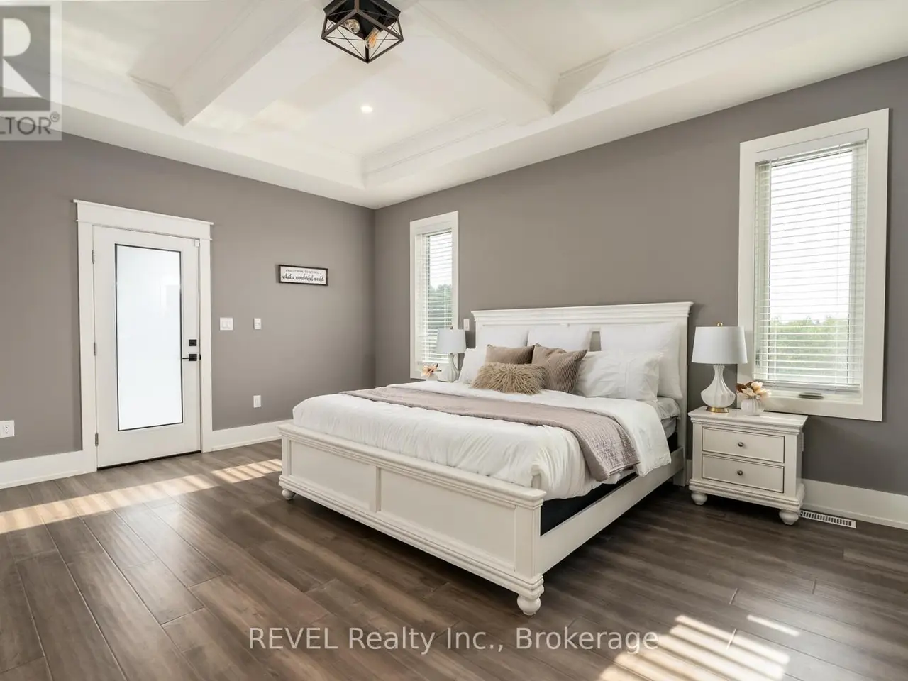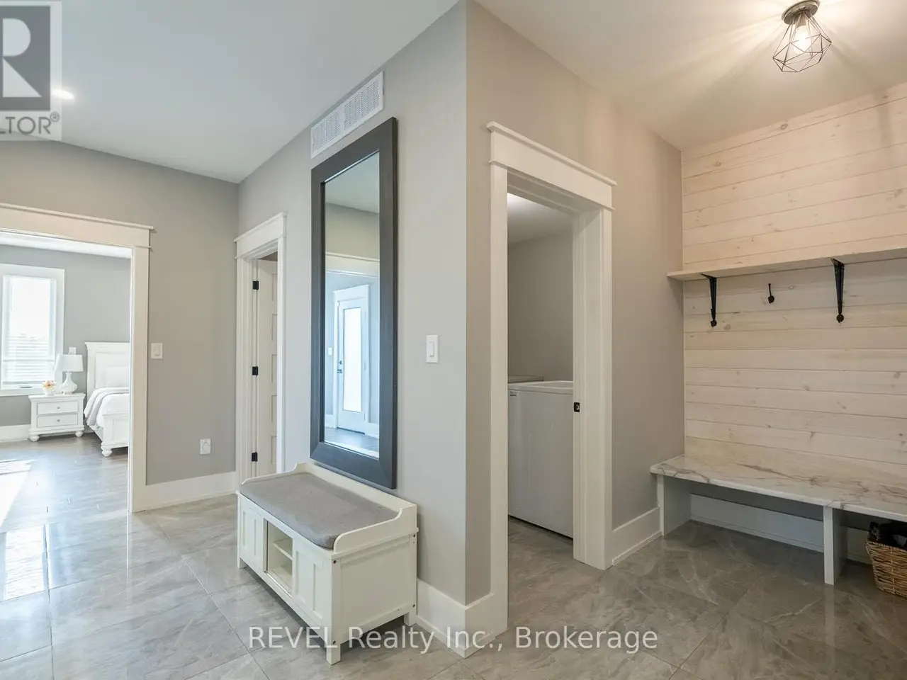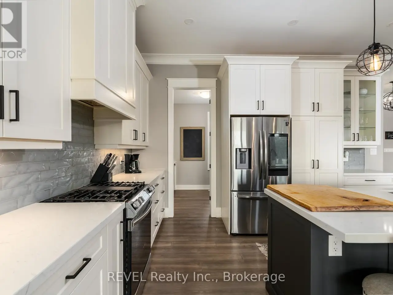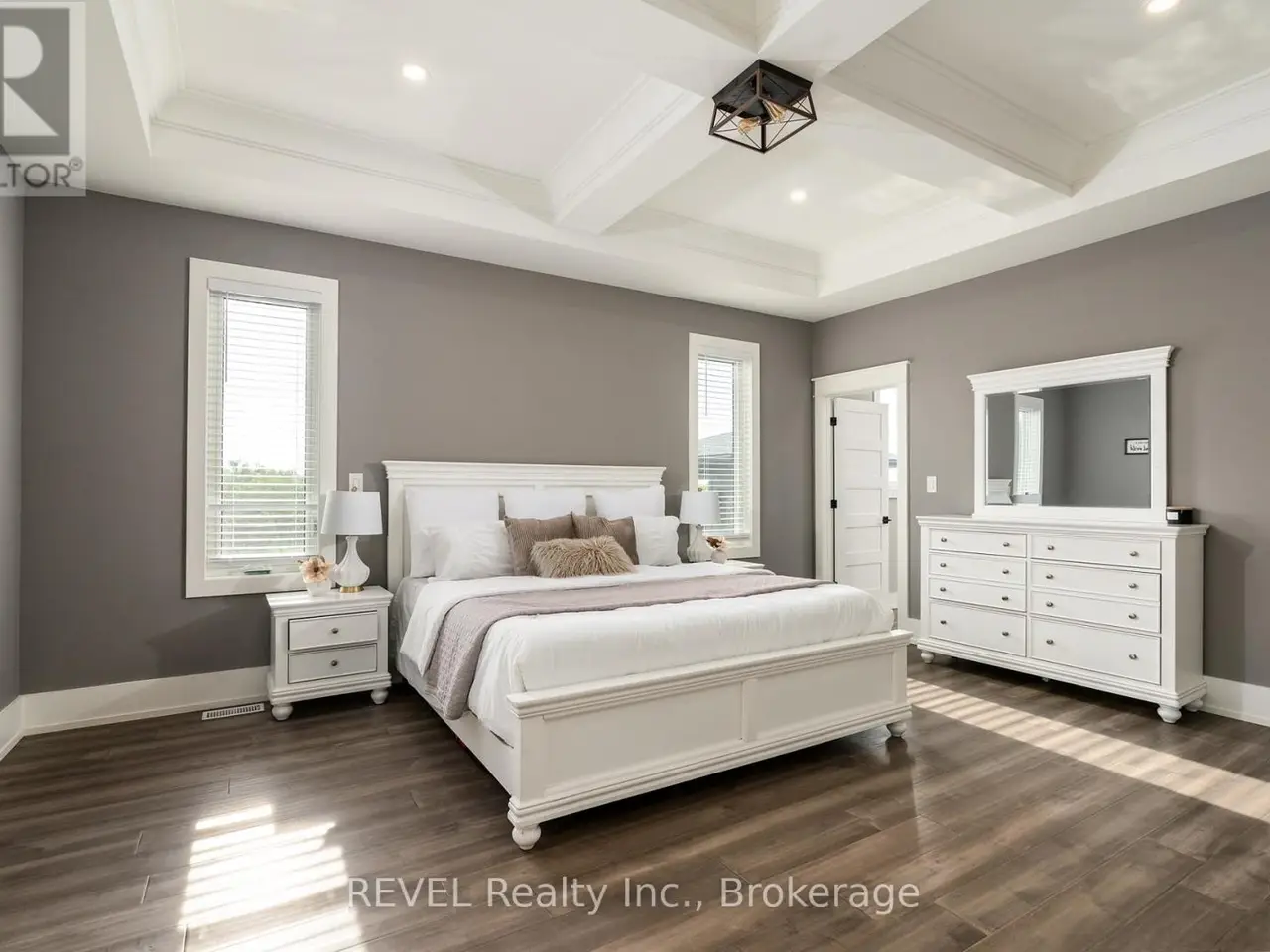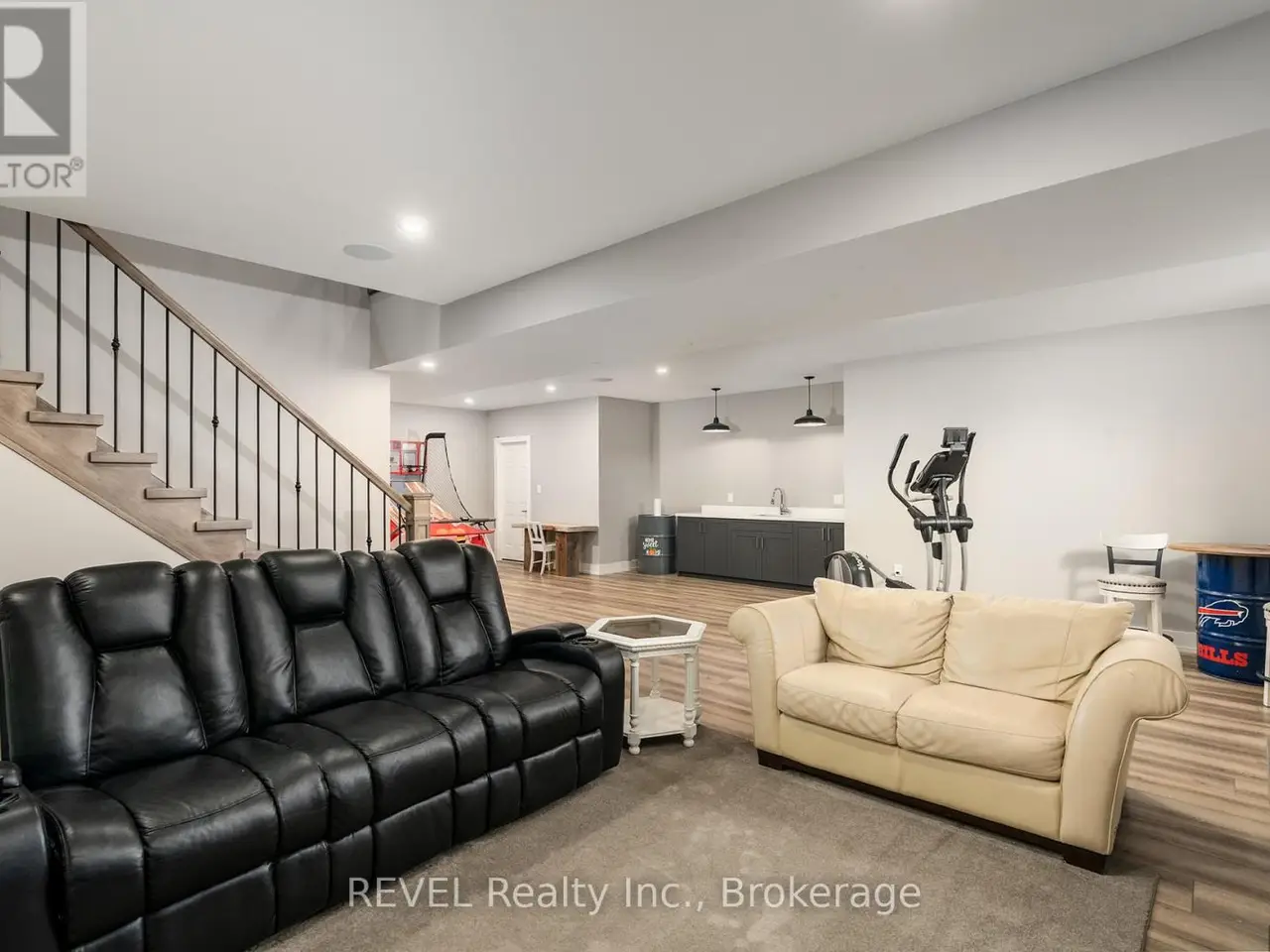 Welcome to this stunning 2,945 sq. ft. bungalow, expertly crafted with a blend of stone and Hardie board exterior. From the moment you step inside, you'll be greeted by the expansive open concept living area, featuring soaring 10-ft ceilings and no carpets. The heart of the home is the gourmet kitchen, boasting Quartz countertops throughout, a large island with bar stool seating, stainless steel appliances, abundant counter and cupboard space, and a spacious pantry. The main floor master bedroom wing is a true retreat, complete with a coffered ceiling, a generous walk-in closet, and a luxurious 5-piece ensuite. Enjoy private access to the rear yard from your master bedroom. The main floor also offers a versatile office (or potential fourth bedroom), two additional bedrooms with walk-in closetsone with a private 4-piece ensuite and the other with ensuite privilege and a 2-piece powder room off the foyer. The mudroom off the garage features a laundry area and barn-style roller door. The fully finished basement includes a large rec room with a kitchenette, an additional bedroom, and a 3-piece bathroom with a spacious glass shower. With 9-ft ceilings and a heated slab, the basement is as comfortable as it is functional. Outdoor living is equally impressive, with a covered rear patio complete with TV hookup, BBQ line, and pull-down privacy screens. Relax in the inground heated saltwater pool, unwind in the hot tub, or enjoy the fully fenced, landscaped yard with a stone wall surround. The property, just under an acre, is surrounded by picturesque vineyards and fruit farms. Additional features include an insulated 2-car garage with hot water hookup, city water, an interior and exterior wired-in speaker system, a security system, and central vac. This exquisite home offers the perfect blend of luxury, comfort, and tranquility. (id:7434)
