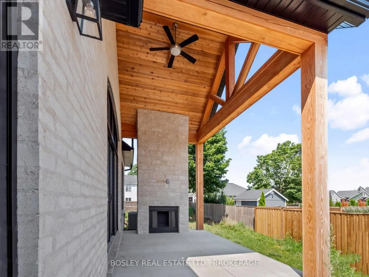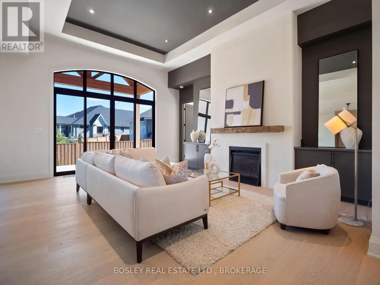 This brand-new home in Settlers Landing in Niagara-on-the-Lake is an absolute stunner. Designed and built by local builder Niagara Pines Developments, this custom bungalow is finished to a standard with gorgeous materials and design choices throughout. **For a limited time, the builder is including a recreation room in the basement at no additional cost. Contact us for details!!* Step inside, and the double-height entrance hall with an inlaid tile floor quickly sets the tone. This home perfectly blends comfort with style, whether for quiet nights at home or for spending time with family and friends. Everywhere you look, you'll see finishing materials that go well beyond industry norms. These include: Engineered hardwood flooring and tile throughout (no carpet), oak-stained stairs with oak railings and wrought iron spindles, stone countertops in the kitchen and bathrooms, a tiled walk-in shower, and a beautifully designed kitchen. Sliding doors lead out from both the living room and primary suite to the covered terrace, complete with a gas fireplace with stone mantel and cedar wood trim. The primary suite is the perfect end-of-day retreat, complete with a walk-out to the back patio, a full walk-in closet, and possibly the most stylish ensuite bathroom in town. The second bedroom has a grand feel with 10ft.+ ceiling height and beautiful chandelier. All of this is complemented by a distinguished exterior, finished with stone, stucco, and architectural dormers. This is your chance to own this exceptional property in blossoming Virgil. Construction is complete however sod and some final clean-up is still scheduled to happen. Otherwise, it is ready for occupancy! (id:7434)