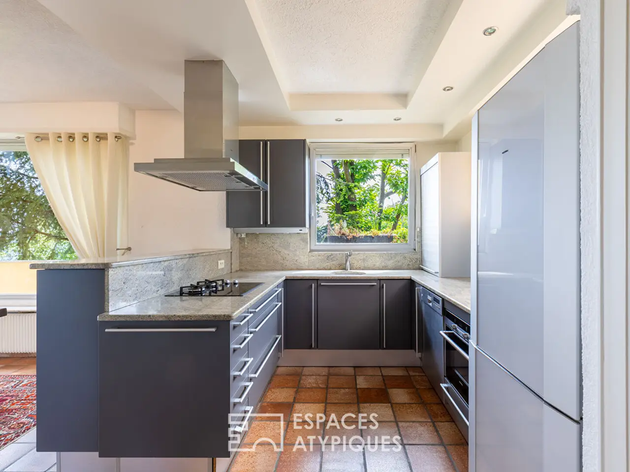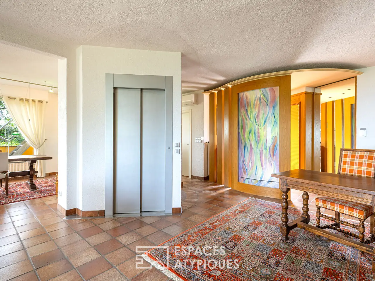 Situated in the highly sought-after Hunabuhl district of Niedermorschwihr, this architect-designed house built in 1975 offers 191 m2 of living space (282 m2 floor area) on 8.63 acres of land. In a dominant position, it enjoys exceptional panoramic views over the Alsace plain. Its generous volumes and rare features, such as an indoor swimming pool and a lift, make this a unique property that is just waiting for a contemporary refresh to reveal its full potential.From the moment you enter, the interior architecture stands out for its functional, luminous lines. The ground floor comprises a 40 m2 lounge opening onto a dining room with adjoining kitchen and pantry. An east-facing veranda extends the living room, offering a breathtaking view that changes with the seasons. A large overhanging terrace accentuates this privileged link with the natural environment. A bedroom, bathroom and hallway complete this level.A lift provides easy access to the first floor. This is home to three bedrooms, one of which has a second adjoining space offering additional conversion potential, as well as a shower room. Downstairs, the basement houses a heated indoor swimming pool with direct access to the garden via large bay windows, as well as a shower, a wine cellar and a garage with motorised door. The outside space is an invitation to relax and contemplate, in a peaceful, leafy setting.Just 15 minutes from Colmar, this rare property for sale combines an exceptional geographical location, a unique architectural design and great potential for personalisation. An atypical place to live that will appeal to lovers of architecture, space and uninterrupted views.Shops 10 minutes' drive awayNursery and primary schools 5 minutes' drive awayIngersheim secondary school 10 minutes' drive awayBus 2 minutes' walk awayRD83 10 minutes' drive awayRailway station and motorway 15 minutes awayREF. 1543Additional information* 7 rooms* 4 bedrooms* 1 bathroom* 1 bathroom* 1 floor in the building* Outdoor space : 863 SQM* Property tax : 421 €Energy Performance CertificatePrimary energy consumptione : 200 kWh/m2.yearHigh performance housing*A*B*C*D*200kWh/m2.year61*kg CO2/m2.yearE*F*GExtremely poor housing performance* Of which greenhouse gas emissionse : 61 kg CO2/m2.yearLow CO2 emissions*A*B*C*D*61kg CO2/m2.yearE*F*GVery high CO2 emissionsEstimated average annual energy costs for standard use, indexed to specific years 2021, 2022, 2023 : between 3030 € and 4130 € Subscription IncludedAgency feesThe fees include VAT and are payable by the vendorMediatorMediation Franchise-Consommateurswww.mediation-franchise.com29 Boulevard de Courcelles 75008 ParisInformation on the risks to which this property is exposed is available on the Geohazards website : www.georisques.gouv.fr