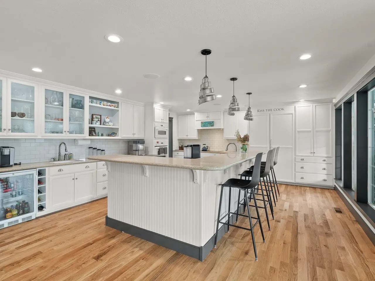 This luxurious lakefront private resort offers a serene retreat along the shores of Long Lake, featuring 101 feet of lake frontage & breathtaking views. The gated entrance w/an electric gate leads you into a beautifully landscaped property, highlighted by a rock seating area around a fire-pit over looking the lake. Fenced yard w/Gunite pool that has an automatic cover. Inside, you'll discover four spacious bedrooms & three elegantly designed bathrooms, including a luxurious primary suite on the main floor. Renovated in 2020, the home boasts high-end finishes w/rooms offering picturesque lake views. Fully equipped guest house includes one bedroom, one bathroom, a kitchen, and a living room w/a floor-to-ceiling see-through fireplace leading to a covered deck overlooking the pool. Outdoor living is further enhanced by a covered deck & patio w/hot tub, a lighted dock w/a hydraulic boat lift, & private slip. Daylight basement complete w/wet bar. Two-car garage w/lean-to storage for your boat & heated driveway.