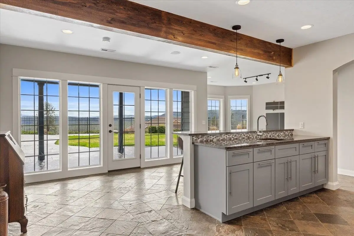 Custom built two-story with daylight walkout basement modern farmhouse style home on 1+ acre lot with an incredible lake view! There is so much to love in this home that has an open floor plan, floor to ceiling windows and newer LVP plank flooring. Solid alder wood doors. Spacious kitchen with granite counters, built-in gas range, new dishwasher and a huge island. Main floor primary suite with a walk-in closet and full bath. Formal dining room plus an office/library. Second floor features 3 bedrooms and 2 bathrooms along with a bonus play room over the garage. Lower level family room has a wet bar, workout room, plus a home theater room along with a 5th bedroom and bathroom. Wait there's more! A salt-water pool with a waterfall feature. 3-car oversized garage and plenty of driveway parking. Newer HVAC system (01/2025). HardiePlank siding & shake accent. All in a gated neighborhood with amazing views of Lake Spokane that's conveniently located to shopping, dining & an easy commute to Spokane.