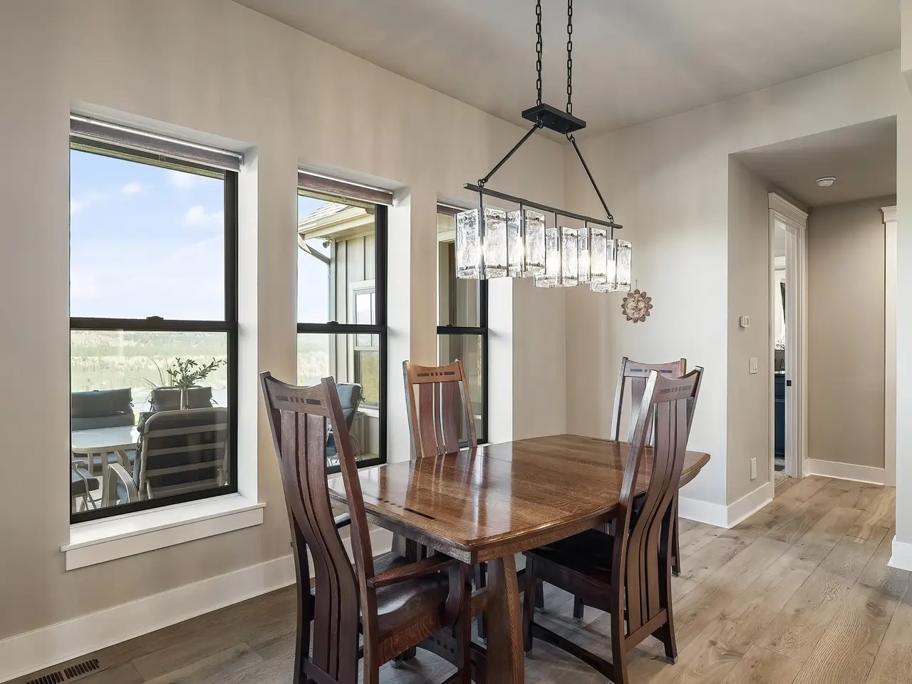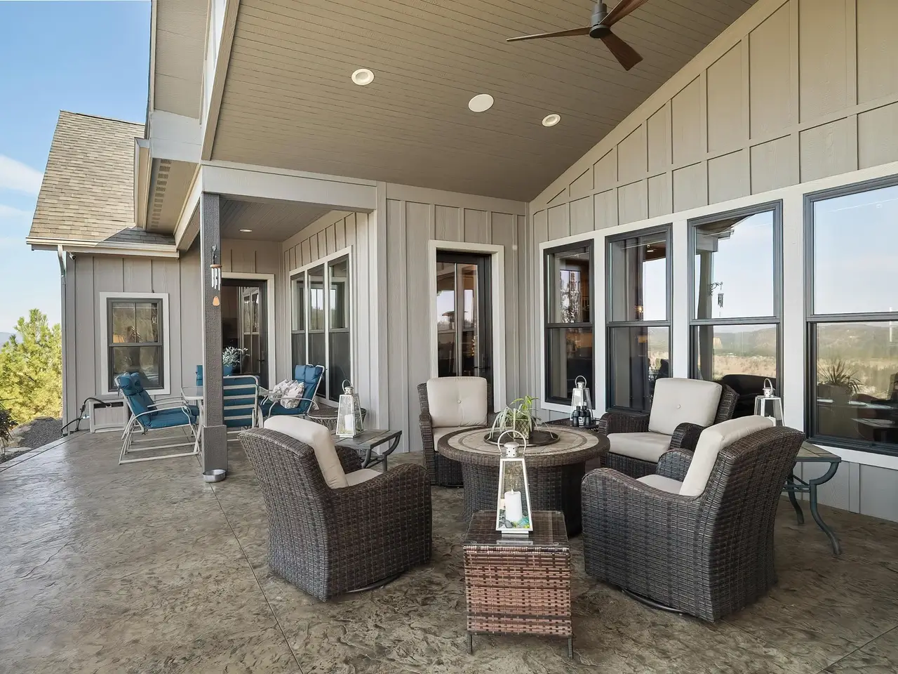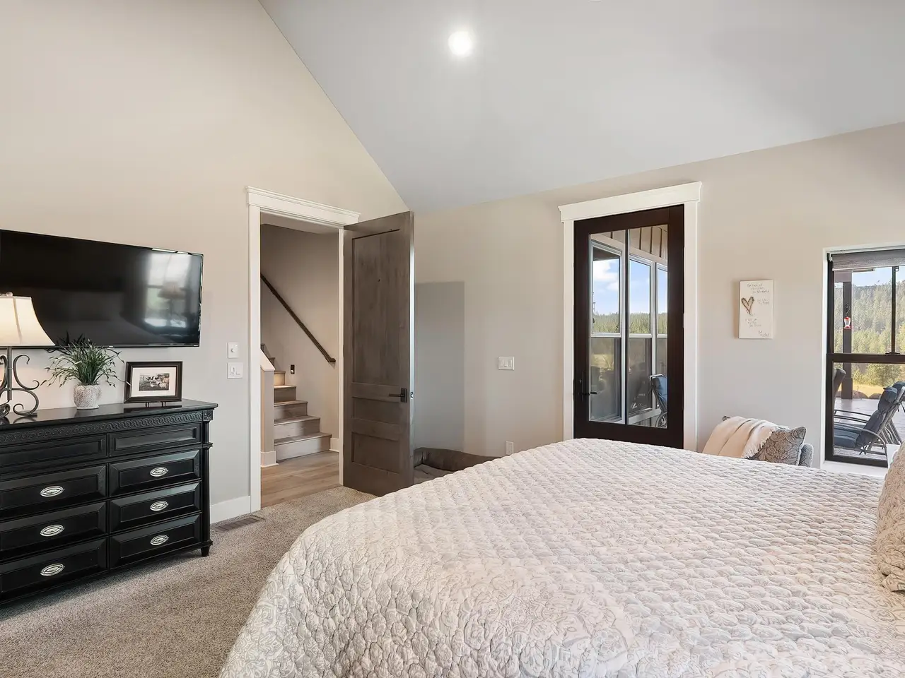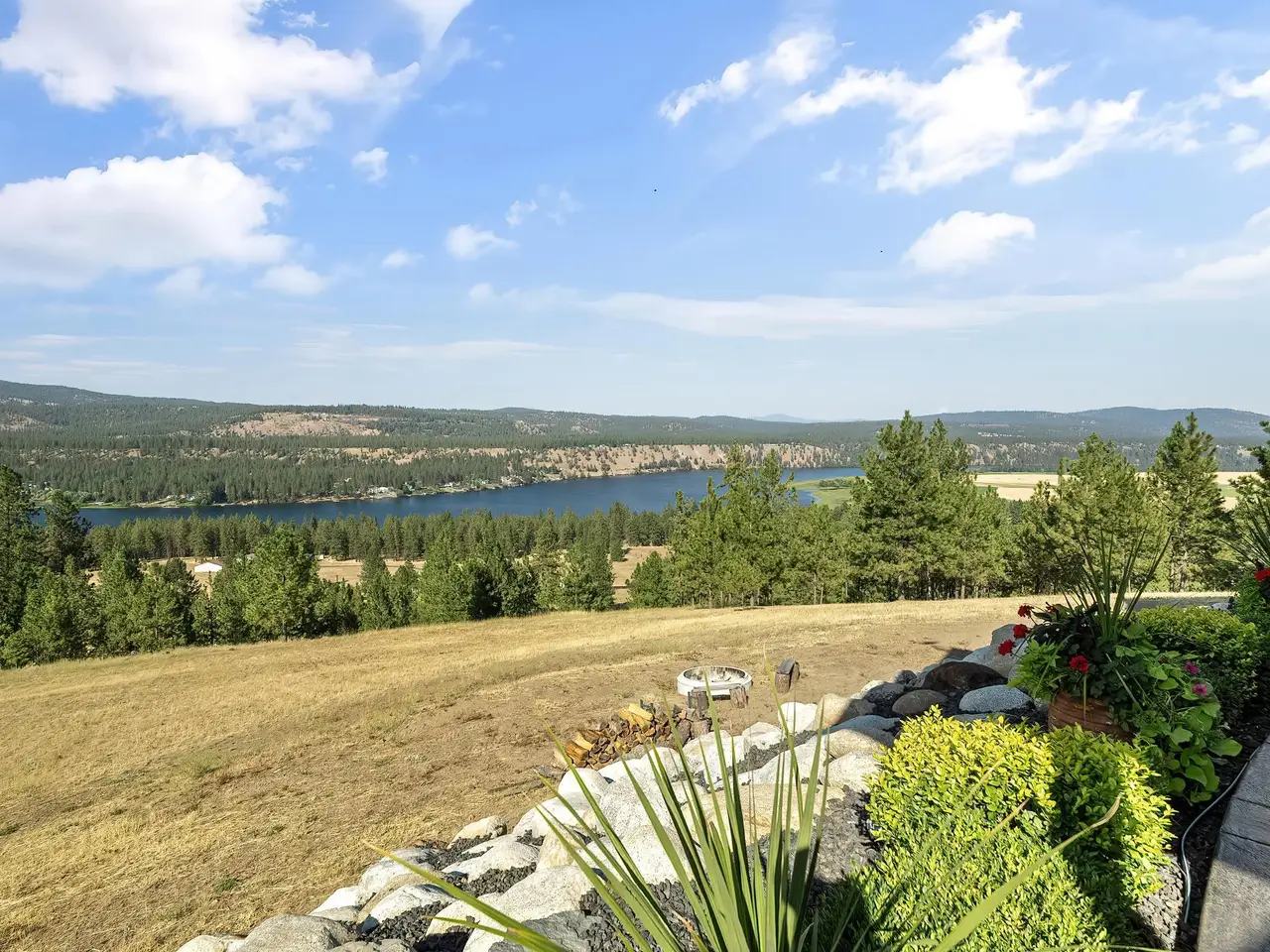 There is so much to love about this stunning property with sweeping views of Lake Spokane & Mt. Spokane. This home features the BEST of everything with 4-bedrooms and 5 bathrooms. Enjoy 1-level living in this thoughtfully designed home with the primary suite and two additional en-suite bedrooms on the main floor, plus a stylish half bath for guests. Upstairs you'll find a spacious 416 sq ft retreat with its own half bath, perfect for a home office, art space, or guest suite. Featuring engineered wood floors, 8-foot knotty alder doors, 10 ft vaulted ceilings, hard surface counters throughout and high-end appliances including a Frigidaire Professional Series refrigerator/freezer, GE Monogram induction cooktop, convection oven/microwave & warming drawer. The chef's kitchen moves outdoors with a 36' built-in DCS barbecue grill, 2-burner gas cooktop & a large covered patio with stamped concrete. An oversized 2-car attached garage is complemented by a massive 40x60 shop w/ a 14-ft center door w/ space for a 35' RV.