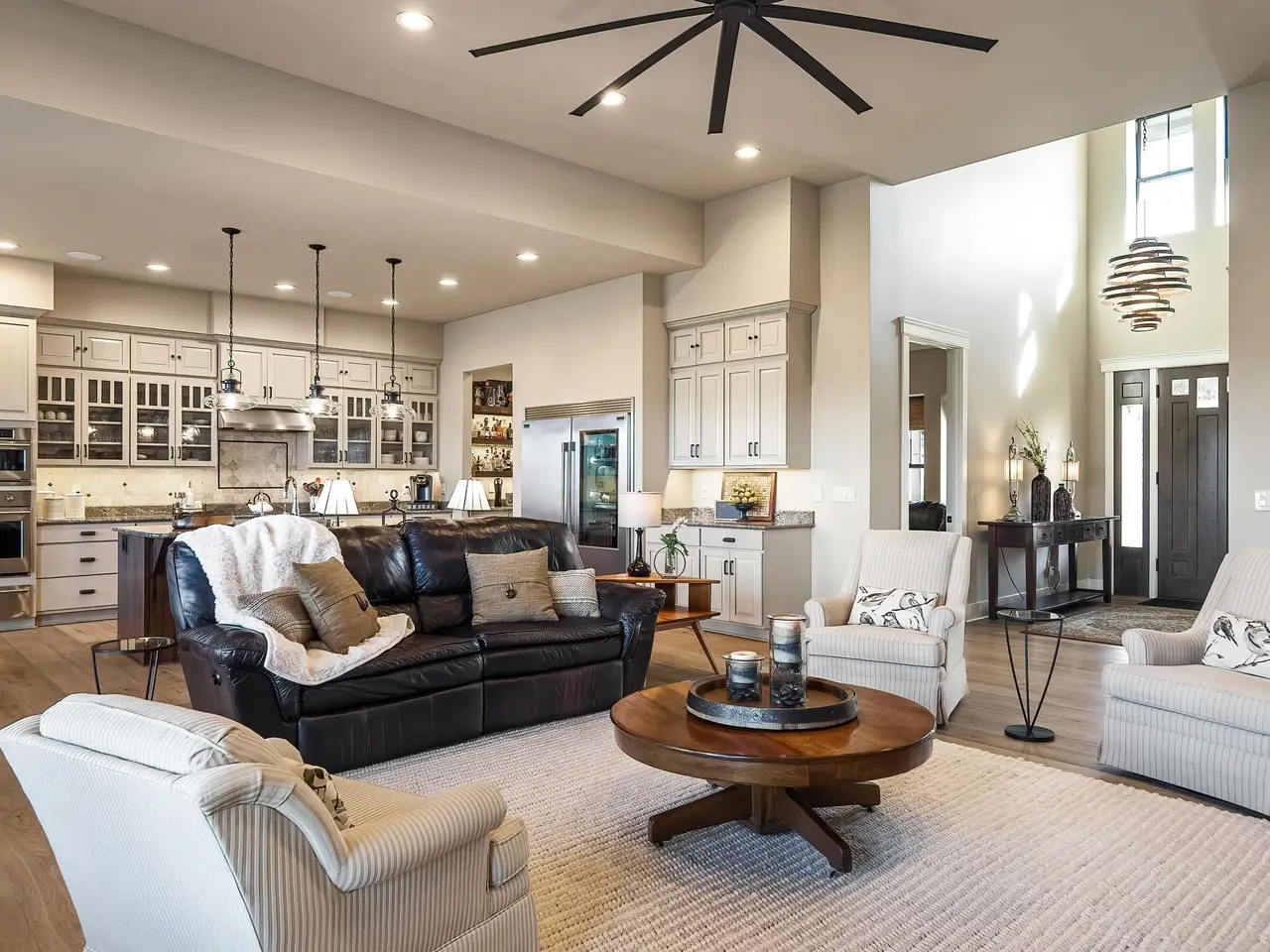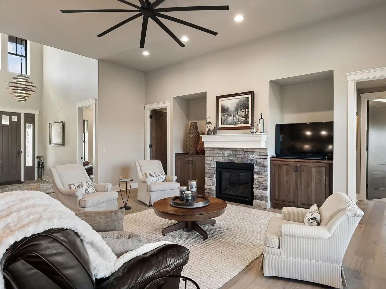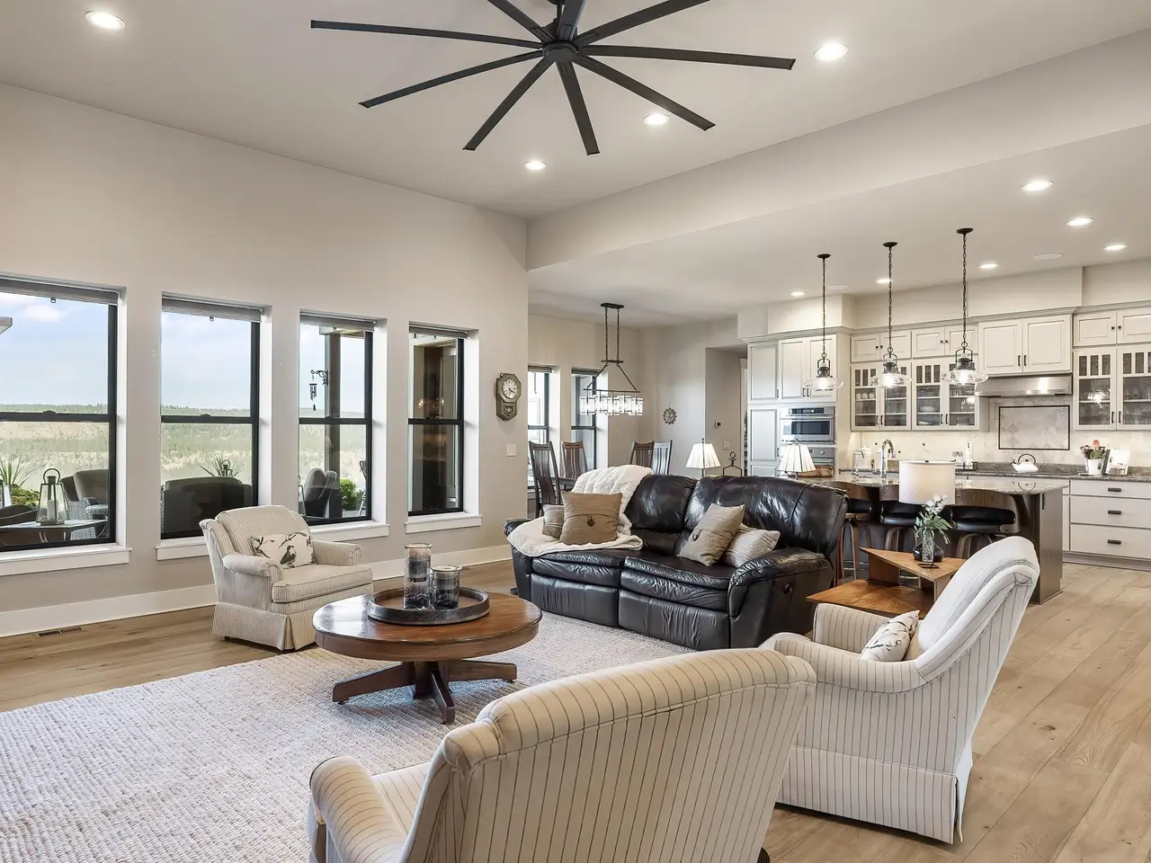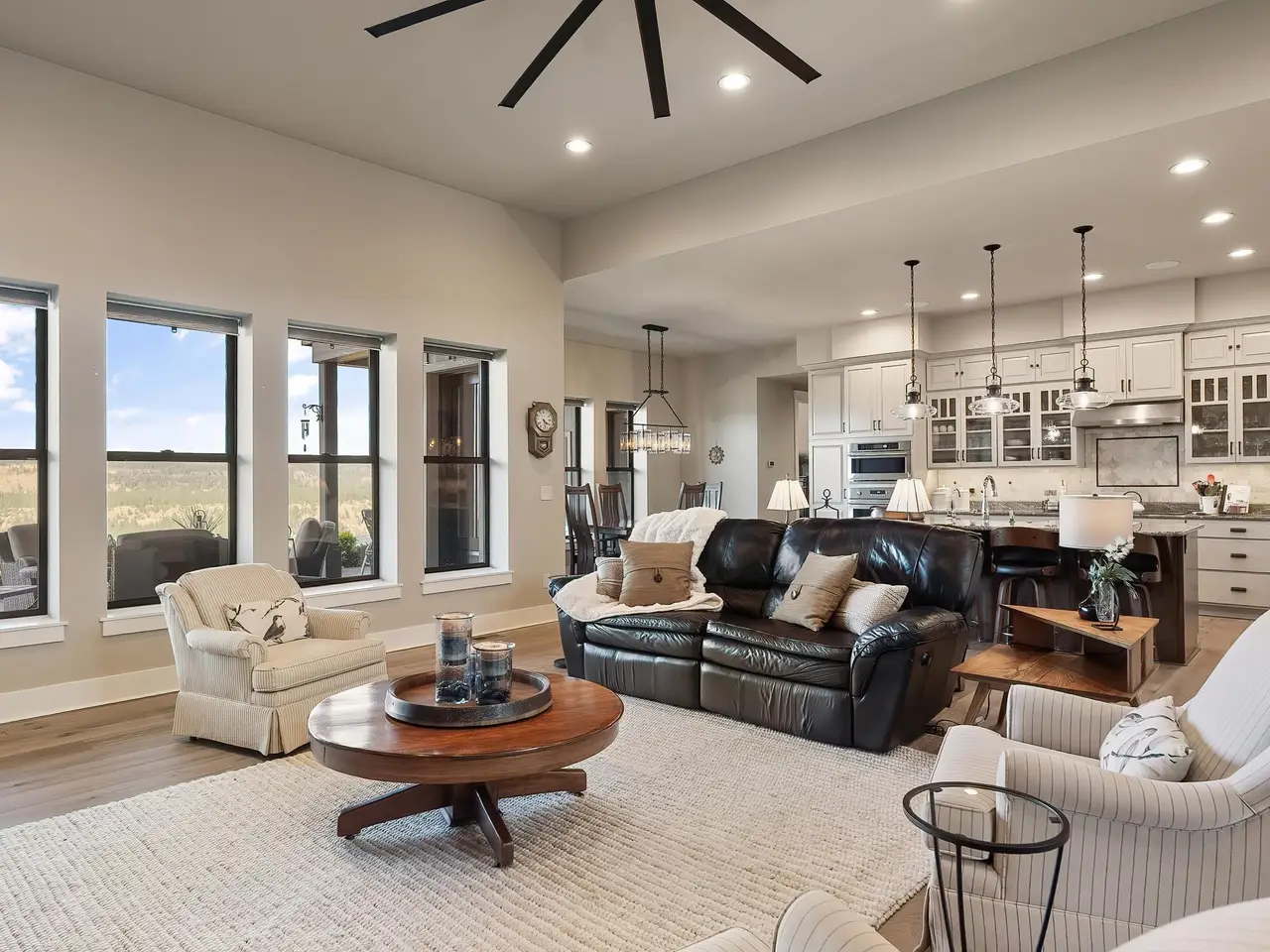 There is so much to love about this stunning property with sweeping views of Lake Spokane & Mt. Spokane. This home features the BEST of everything with 4-bedrooms and 5 bathrooms. Enjoy 1-level living in this thoughtfully designed home with the primary suite and two additional en-suite bedrooms on the main floor, plus a stylish half bath for guests. Upstairs you'll find a spacious 416 sq ft retreat with its own half bath, perfect for a home office, art space, or guest suite. Featuring engineered wood floors, 8-foot knotty alder doors, 10 ft vaulted ceilings, hard surface counters throughout and high-end appliances including a Frigidaire Professional Series refrigerator/freezer, GE Monogram induction cooktop, convection oven/microwave & warming drawer. The chef's kitchen moves outdoors with a 36' built-in DCS barbecue grill, 2-burner gas cooktop & a large covered patio with stamped concrete. An oversized 2-car attached garage is complemented by a massive 40x60 shop w/ a 14-ft center door w/ space for a 35' RV.