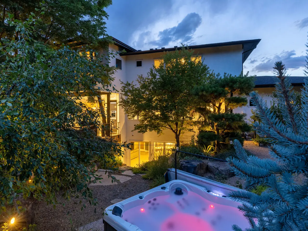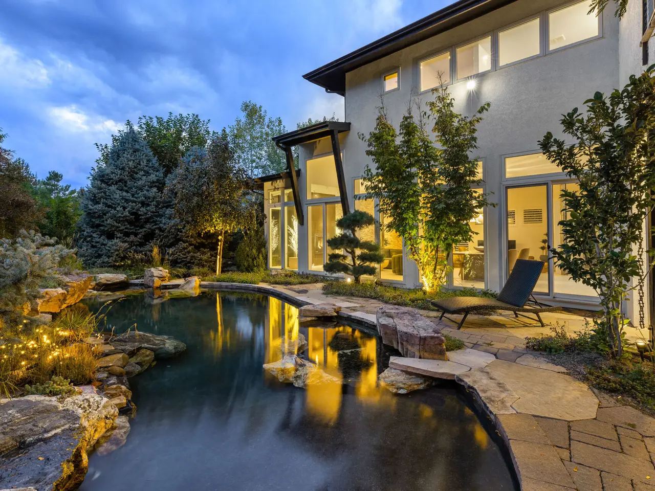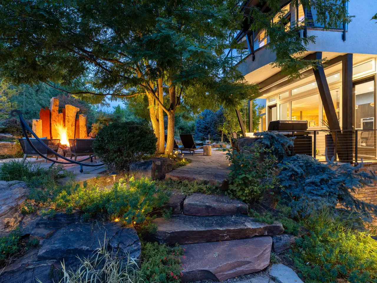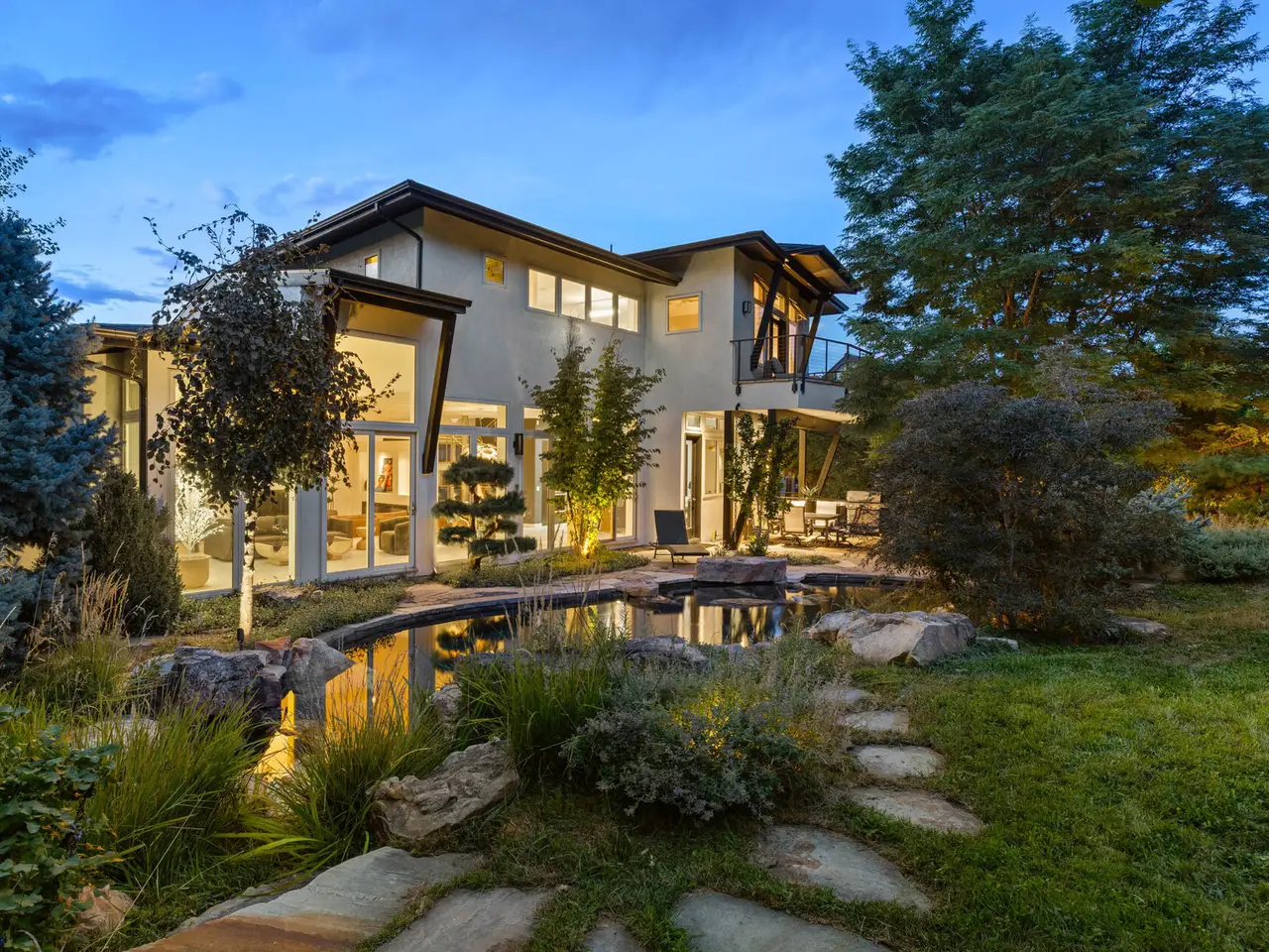 Seeking modern & contemporary, light filled and ONE with nature - you must see this gorgeous home with a private, sanctuary like backyard on almost 1/2 acre. Backing to open space, you'll appreciate the plunge pool, hot tub or sitting in front of the fire pit enjoying the tranquility in your own space. Extensive landscaping allows for seasonal blooms throughout the spring, summer and fall. Inside, you'll be wow'd by the gorgeous finishes, tall ceilings and large rooms yet it's got a warm and inviting feel throughout. Cozy up with a magazine or entertain for all your friends - this home can handle it all. It's an entertainer's DREAM. Mountain views, private spaces and light abound. A walkout lower level features a kitchenette, a gorgeous bedroom with daylight windows and a luxury, spa-like full bathroom. The lower level itself is a haven not to be missed with a giant rec room and other tranquil spaces. Upstairs is a primary suite with luxury bath including a Japanese soaking tub. Another ensuite bed / bath combo is perfect for the teen or guest and 2 other bedrooms share a jack and jill bathroom. If you're looking for tranquil, multiple work and flex spaces, a large, oversized garage on a huge, private lot, you must see this home. A new roof in '24, everything has been impeccably maintained. Stop in to see for yourself.