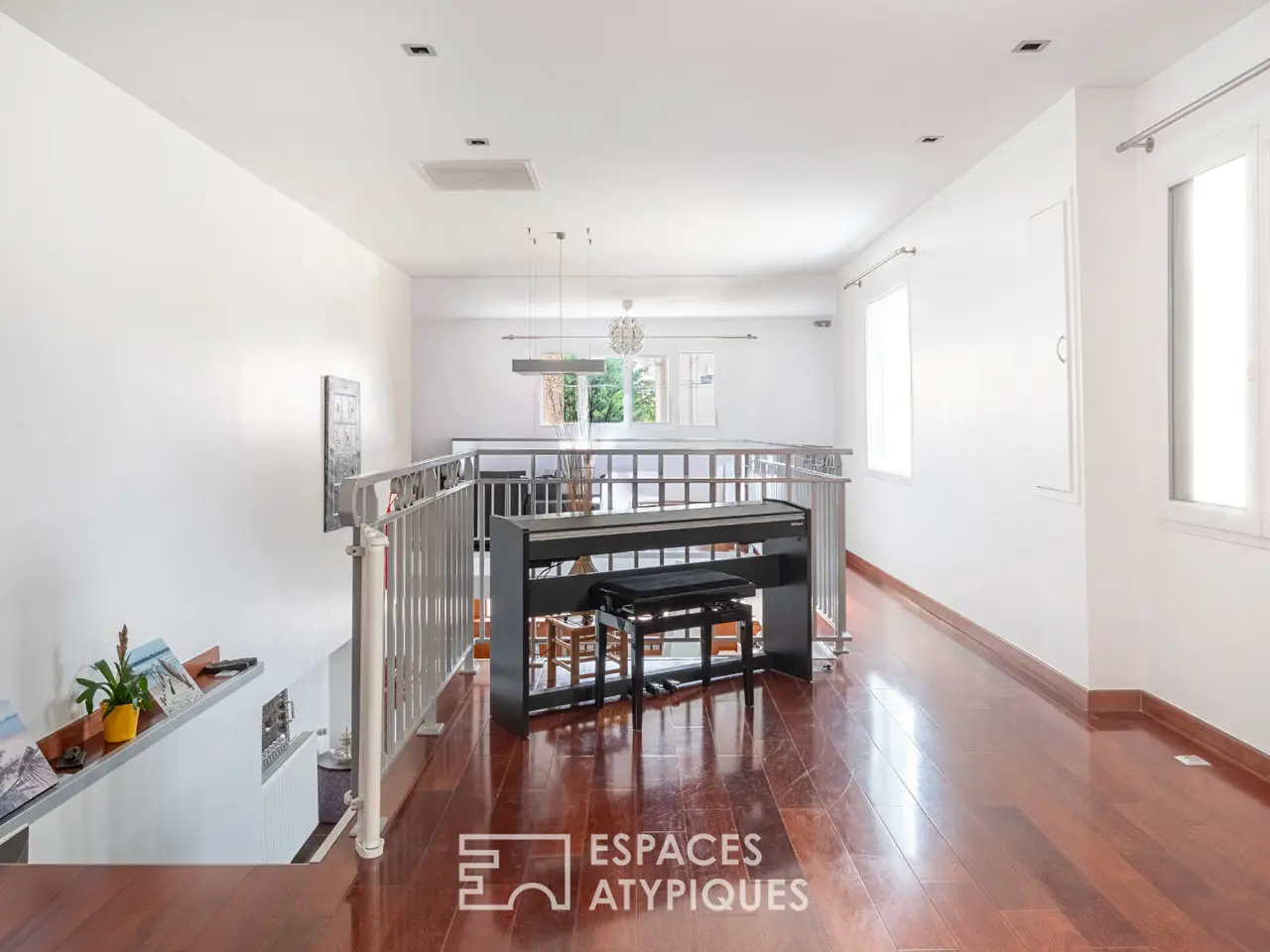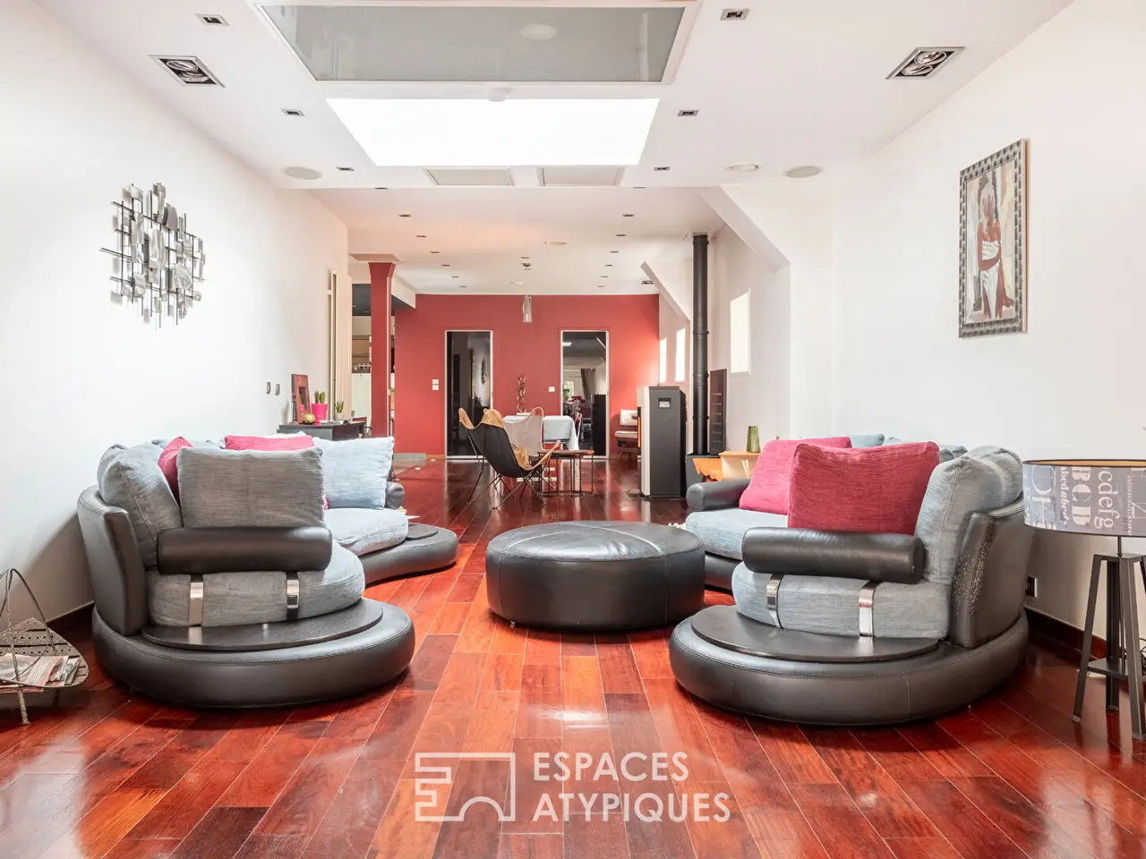 Located in the sought-after Viselets district of Nogent-sur-Marne, resulting from the renovation of a former printing house, this contemporary 214 sqm loft seduces with its bold architecture and spectacular volumes. In a small co-ownership of 4 lots, behind a discreet facade, the tone is set: space, light, and comfort dominate, announcing a place designed to combine design, conviviality, and serenity.The vast reception hall, rare for a loft, reveals generous volumes and fluid circulation. A true backbone of the place, it connects the different spaces by an elegant central staircase that highlights the high ceilings and the verticality typical of this type of habitat.A first landing, bright and soothing, serves as a reception lounge or reading corner and can easily become an intimate reception area.One level higher, the light intensifies thanks to a superb skylight in the roof, providing zenithal brightness throughout the day. This natural addition enhances the interior architecture and guides you to the heart of the loft.The main living area then opens up in all its splendor: a vast volume combining the living room, dining room, and contemporary fitted kitchen. The magnificent central island, a true pivot of the space, brings family and friends together around a modern shared space. The pellet stove, both efficient and aesthetic, creates a warm and friendly atmosphere.On this same level, a modular space offers the possibility of easily creating a third bedroom or a separate office as needed. The loft also includes two superb master suites, designed to offer everyone comfort and privacy. The first has its own shower room, while the second comes with a spacious bathroom and toilet. Between the two, a large shared dressing room creates an elegant and functional link, ideal for an organized and refined daily life.A laundry room, hidden behind a sliding door, ensures practical organization of daily life, while a separate toilet completes this floor with elegance and functionality.An interior driveway allows you to park a vehicle in complete peace of mind.Located on a quiet street, close to schools, shops and only a ten-minute walk from the RER A of Nogent-sur-Marne, this property benefits from a privileged living environment, rare in the heart of the city.A successful combination of spectacular volumes, quality materials and a soothing atmosphere, this loft perfectly embodies the spirit of atypical real estate in Nogent-sur-Marne.A unique place, designed to create a real crush.RER A Nogent-sur-Marne: 10 minutes on footSchools: 2 minutes on footShops: 5 minutes on footREF. 13185Additional information* 4 rooms* 2 bedrooms* 1 bathroom* 1 bathroom* Parking : 1 parking space* 4 co-ownership lots* Property tax : 3 700 €* Proceeding : NonEnergy Performance CertificatePrimary energy consumptione : 291 kWh/m2.yearHigh performance housing*A*B*C*D*291kWh/m2.year9*kg CO2/m2.yearE*F*GExtremely poor housing performance* Of which greenhouse gas emissionsb : 9 kg CO2/m2.yearLow CO2 emissions*A*9kg CO2/m2.yearB*C*D*E*F*GVery high CO2 emissionsEstimated average annual energy costs for standard use, indexed to specific years 2021, 2022, 2023 : between 4880 € and 6660 € Subscription IncludedAgency feesThe fees include VAT and are payable by the vendorMediatorMediation Franchise-Consommateurswww.mediation-franchise.com29 Boulevard de Courcelles 75008 Paris