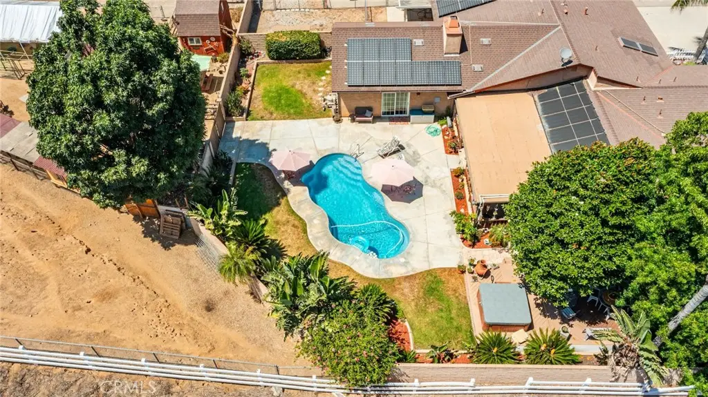 Equestrian Paradise in Norco, CA. Located on a Premium 2.03 Acre Corner Lot. The perfect blend of rural charm and modern convenience. This spacious equestrian estate is situated on a desirable corner lot with dual gated access, making it ideal for horse owners, animal lovers, or anyone looking for extra space and functionality. Zoned for 23 large animals, plenty of room for horses, livestock, or other animals. Two separate gates for easy vehicle entry. Second gated access on the First St side, ideal for back-of property entry access. Ample space to add a round pen, riding arena, stables or future expansion. Custom built chicken coop, 3 sheds for storage, or tack rooms. Professionally landscaped private backyard with a saltwater pool, spa, raised deck nestled under mature shady trees. Expansive covered patio running the full length of the back side of the home perfect for relaxing or entertaining. Interior Features: Upgraded kitchen granite countertops, center island, and stainless steel appliances. Dual-pane windows and sliding glass doors. Whole house fan, custom shutters, and water purification system. Energy-efficient solar panels (leased). Fifth bedroom with private entrance perfect for a mother in law suite, guests, or home office. Whether you're looking to embrace the Norco lifestyle with horses, or simply want room to spread out and enjoy the land, this home offers unmatched versatility and charm. Don't miss this rare opportunity! Schedule a private tour today!