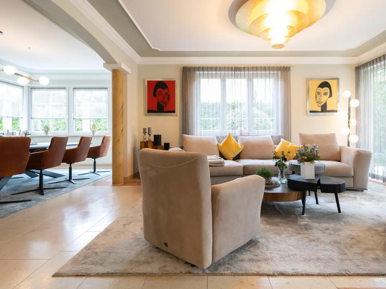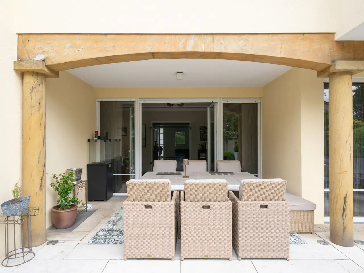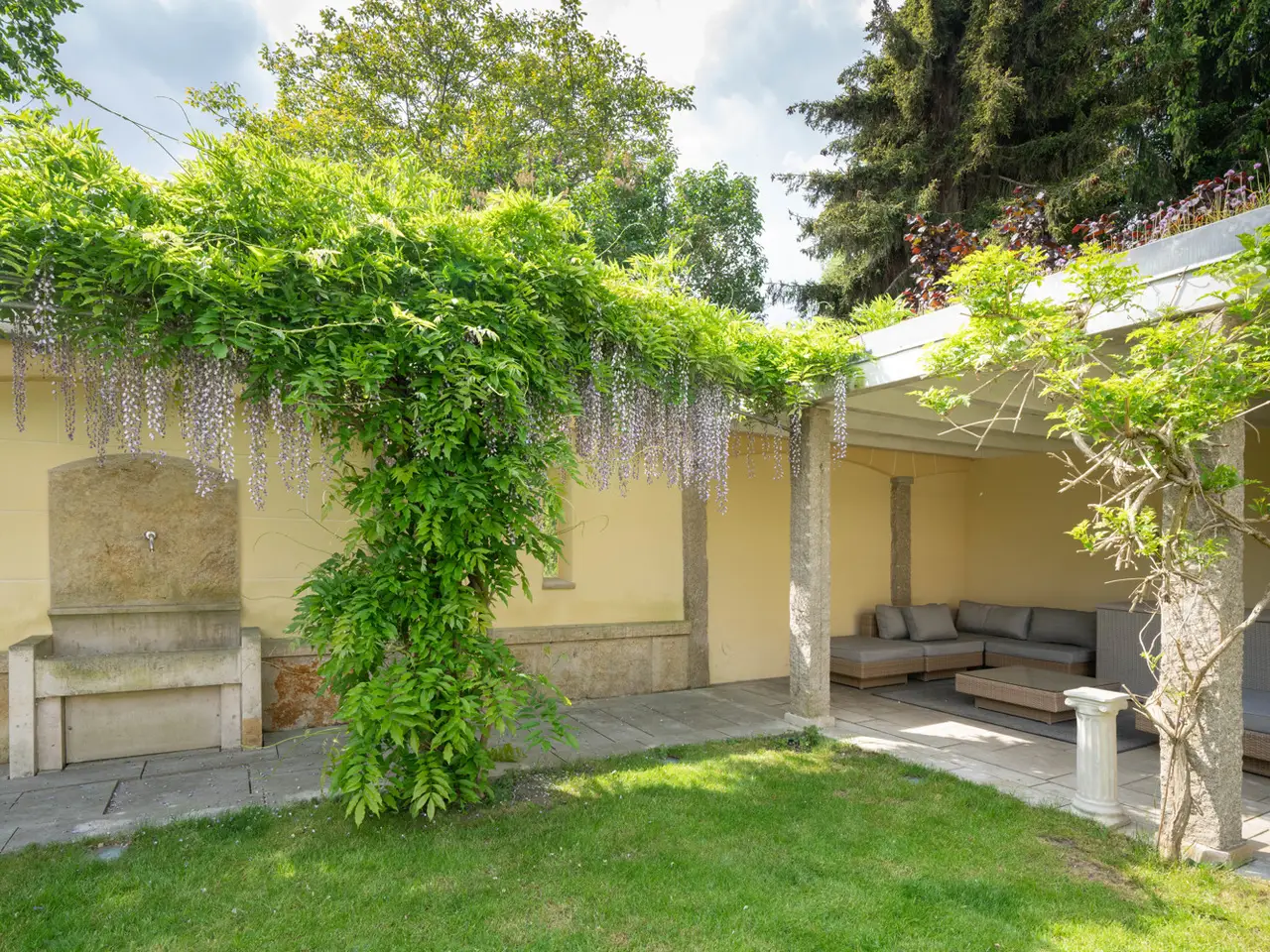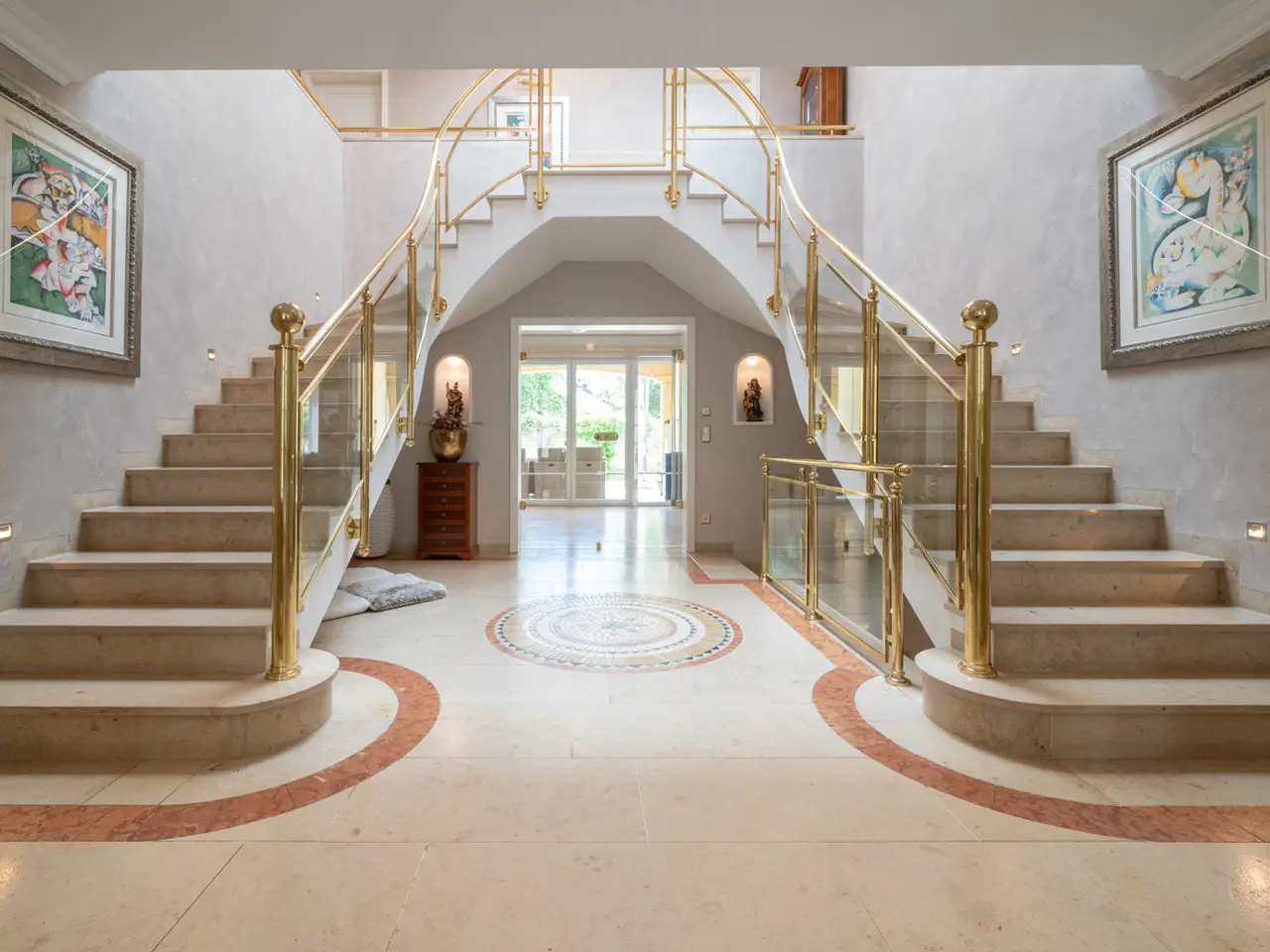 Welcome to a property that offers more than just living space - it embodies a lifestyle. This extraordinary town villa, built in 2004, stands on a generous plot of approx. 981 m² and combines sophisticated architecture, modern technology and pure quality of life on around 412 m² of living space. As soon as you enter the prestigious entrance hall, you can sense the special character of this house: high-quality marble, gold-plated accents and an architecturally sophisticated interior design welcome residents and guests with a touch of grandeur. The spaciousness is continued in all areas - spread over two full floors, a total of eight stylish rooms await you, including up to four bedrooms. Three elegantly appointed bathrooms and a separate guest WC provide the necessary comfort for families and discerning visitors. At the heart of the house is the open-plan living and dining area - flooded with light, with a view of the greenery and equipped with a fireplace that provides warmth and atmosphere in the evenings. A high-quality, as-new fitted kitchen blends seamlessly into the elegant overall concept and invites you to enjoy moments of cooking pleasure. A special highlight is the exclusive wellness area with sauna, shower and WC - your very own personal retreat for relaxation and recreation. The villa also impresses with its diversity in the outdoor area: two spacious terraces, a stylish covered outdoor seating area and a pergola with an outdoor fireplace create space for spending time together outdoors. The additional roof terrace offers a wonderful view over the surrounding area - perfect for sunny afternoons or relaxed evenings with friends. Technically, the villa is of the highest standard: a sophisticated heating system consisting of stove, central and underfloor heating ensures a pleasant indoor climate all year round. A modern BUS system and an alarm system ensure a high level of comfort, efficiency and security. The space available for cars also leaves nothing to be desired: The spacious triple garage offers comfortable space for three vehicles, supplemented by three additional outdoor parking spaces - ideal for families with several vehicles or for visitors. The house has a full basement and, with approx. 172 m² of usable space, opens up additional possibilities - whether for hobbies, fitness or storage. An integrated photovoltaic system operates on the modern hipped roof, making a sustainable contribution to energy efficiency. The solid brick construction stands for quality, durability and a healthy living environment. The location? Also exceptional: the historic old town of Nördlingen - one of the most charming towns in southern Germany - is just a three-minute walk away. And yet here you can enjoy a quiet, upscale living environment with plenty of privacy and perfect connections. Schools, kindergartens, medical care and shopping facilities are in the immediate vicinity - an ideal environment for families, doctors and discerning individualists. This villa is not just a home - it is a place of inspiration, tranquillity and representation. Come and see this rare offer for yourself and be inspired by a personal viewing.