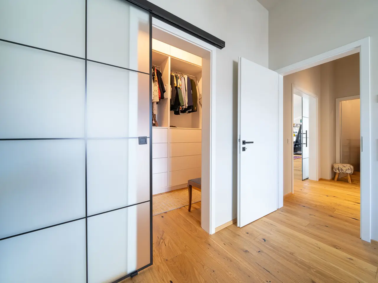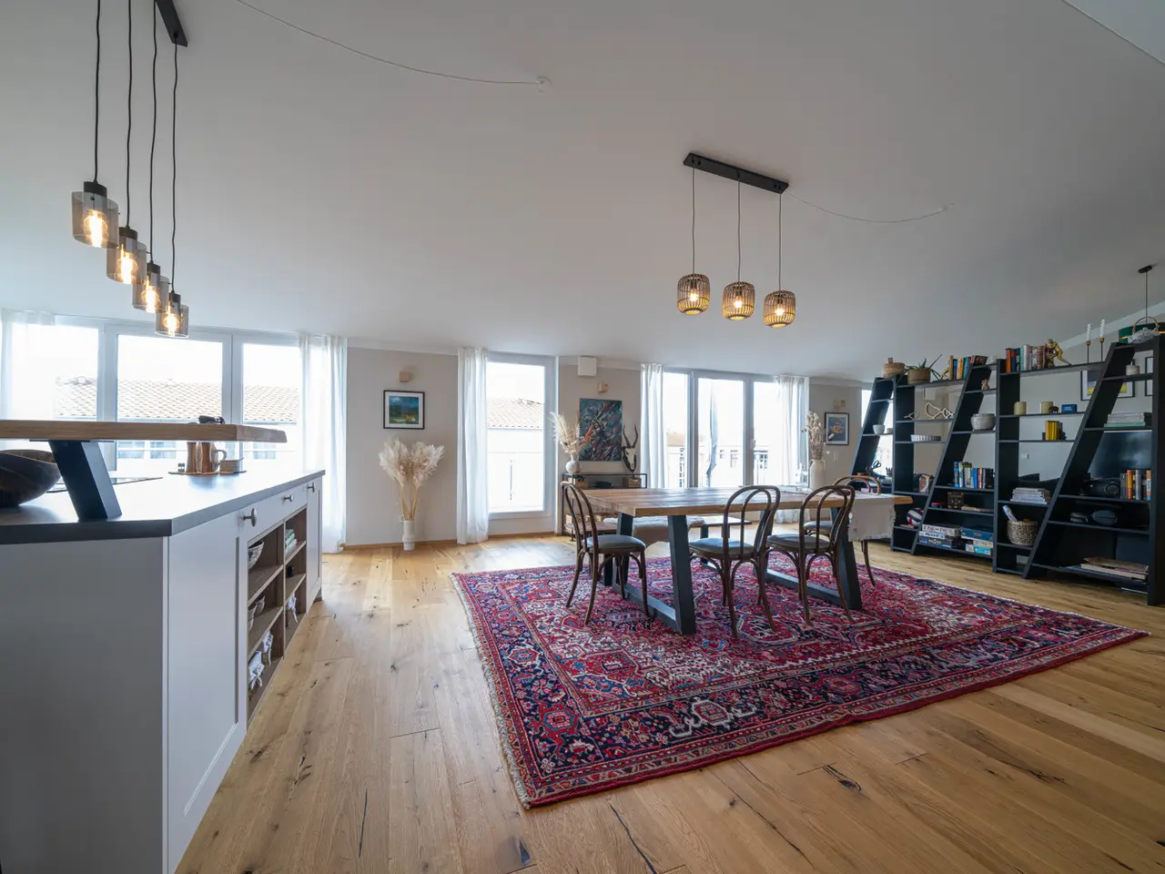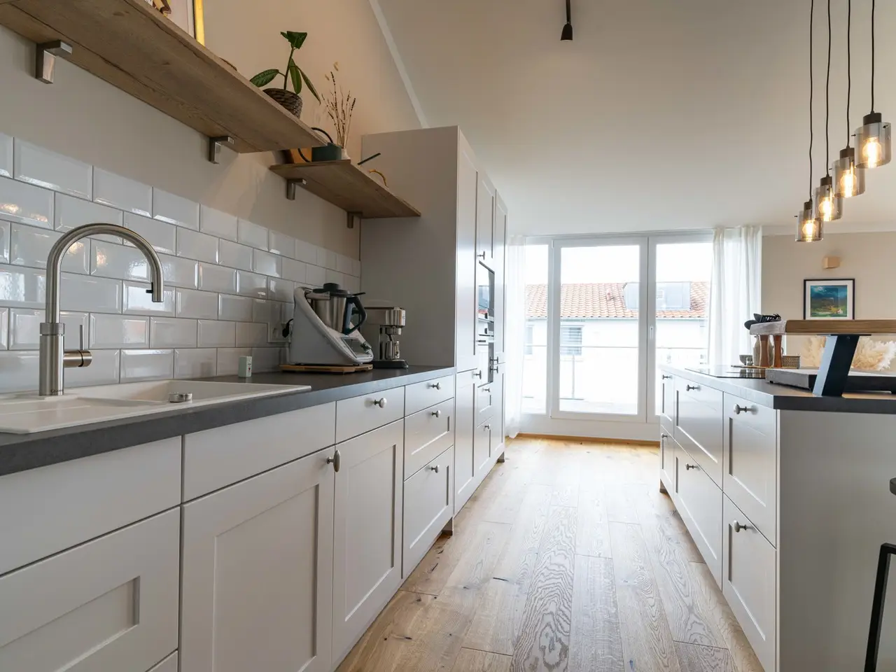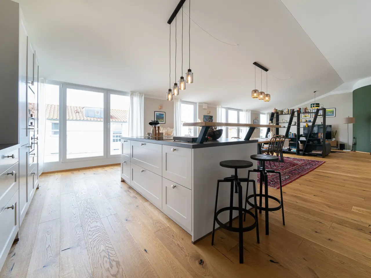 An absolute rarity in Nördlingen: A large, as-new, modern, elegant and barrier-free penthouse close to the city center. The exclusive, luxurious penthouse with a living space of approx. 208 m² is located in a building that was completed in 2016. The apartment itself was only renovated and furnished by the owner in 2021 and is therefore in a very new condition. Contrary to the original plans, the quality of the fixtures and fittings has been upgraded, is luxurious and thus offers the highest level of living comfort. The penthouse is equipped with an elevator that arrives directly on the floor (exclusive access). The rooms are flooded with light and have a ceiling height of up to 3.60 meters. The high-quality parquet floors and underfloor heating ensure a pleasant living atmosphere, while the central ventilation system with heat recovery ensures energy efficiency and a good indoor climate. A highlight of the penthouse is the roof terrace measuring over 50 m². It faces east/south-east and is equipped with a water connection and outdoor lighting. The open-plan living/dining area with kitchen offers plenty of space on approx. 83 m² and has a modern design. The high-quality carpenter's kitchen is equipped with Siemens appliances and leaves nothing to be desired. The Quooker bubbler tap provides boiling and sparkling water directly from the kitchen tap. The apartment has 3 (or 4) bedrooms, depending on your personal layout. The bathrooms are equipped to a high standard and offer a special feel-good experience. There are two daylight bathrooms, a corner bath and a large walk-in shower in the master bathroom and an oval bath and large shower in the second bathroom. Both bathrooms and the guest WC also have stylish washbasins and a WC. Two dressing rooms have been individually fitted with matching built-in wardrobes. There is also an office (or utility room, depending on usage preferences), a pantry/storage room and a checkroom area in the separate entrance hall. The apartment is barrier-free and offers maximum living comfort. The energy efficiency class A speaks for itself: a combined heat and power unit and an additional gas-fired low-temperature condensing boiler of the latest design to cover peak loads supply the house with energy. All windows are triple-glazed and generously proportioned. They are shaded by electrically operated shutters and blinds. The apartment has two underground parking spaces and a large cellar room. The elevator takes you from the underground garage to the floor of your apartment. The location of the penthouse is close to the city center and offers good connections to public transport and shopping facilities. The purchase price includes two underground parking spaces, a high-quality, modern, as-new fitted kitchen and built-in wardrobes in two dressing rooms. Overall, the luxurious penthouse offers maximum living comfort in a generous amount of space. The quality of the fittings and the location make the penthouse an extremely attractive property. Don't miss out on this rare offer. We look forward to receiving your inquiry and will be happy to advise you on financing options for this exclusive property.