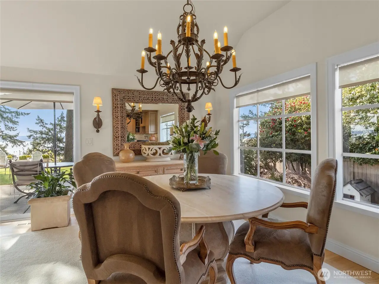 Timeless elegance positioned on the enchanting high bank waterfront in Normandy Park, this storybook home displays a blend of modern layout and traditional charm. A panoramic Views of the Puget Sound and Olympic Mountains offer serene views of rare and unparalleled living and entertaining. Step inside to thoughtfully curated sophistication at every turn with custom iron pendant lighting, gourmet kitchen and wet bar, tranquil primary suite, and the grand living space with uninterrupted flow into the premier outdoor oasis. Experience the magical ambiance of this one of a kind property with Lot A beach rights on highly coveted Edgecliff Drive, a true rare gem.