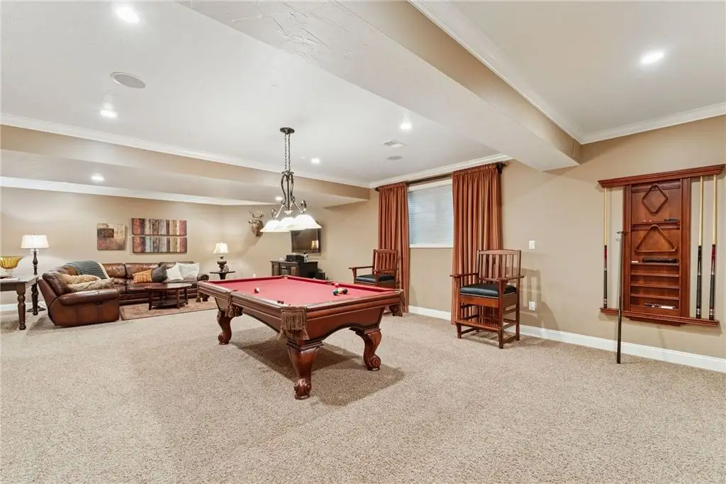 Meticulous craftsmanship and luxurious finishes abound to provide the lifestyle you deserve! Situated on a cul-de-sac street and providing 3870 ft. on two levels plus a fabulous lower level game room, there's plenty of room for everybody! An impressive two-story foyer complimented with wainscoting welcomes you! Relax in the oversized family rm with corner fireplace that opens to informal dining room and kitchen designed for the home chef w/Wolfe range, two dishwashers, abundance of soft toned cabinetry w/granite, island and breakfast bar, wet bar w/wine fridge for entertaining. A handsome wrought iron staircase leads to upstairs with an expensive master en suite with his & her walk-in closets, a princess suite w/ full bath, two additional bedrooms with Jack and Jill Bath, a bonus room & laundry. Enjoy the quality finished "L" shaped lower level game room w/wet bar & full bath! The perfect balance of suburban comfort and convenience.