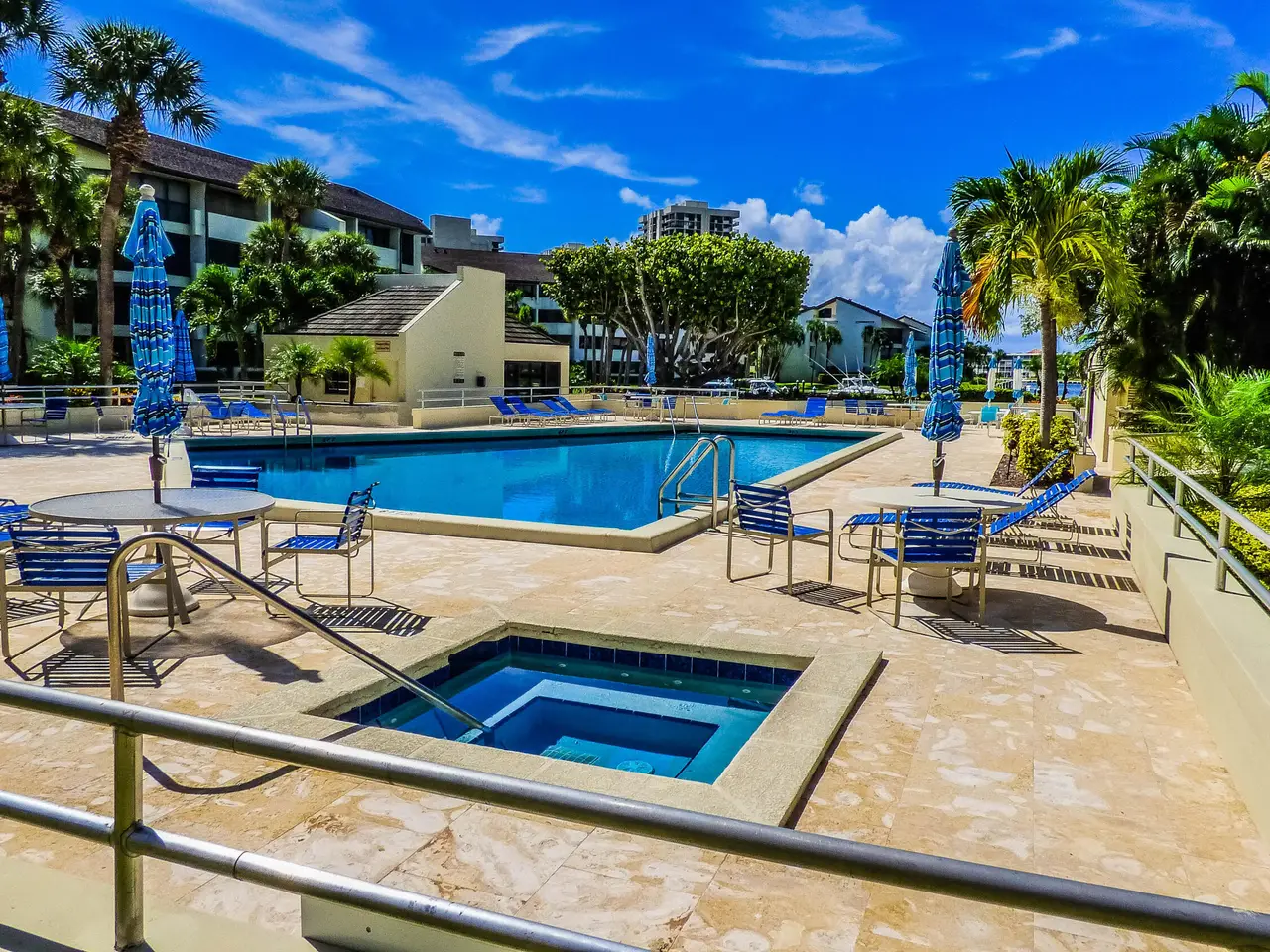 ALL CONDO INSPECTIONS COMPLETED. NO SPECIAL ASSESSMENTS. Rarely available in Old Port Cove, this stunning 4-bedroom, 4.5-bathroom townhome with a private BOAT SLIP offers a luxurious and spacious lifestyle. The large eat-in kitchen features an island and opens to a front private outdoor patio, perfect for relaxing. Enjoy a formal dining area and a generously sized living room for entertaining. The oversized study is equipped with custom-built cabinetry, ideal for work or leisure. Step outside to the patio with picturesque views of the Harbor Village marina and your very own boat slip. Each bedroom has its own ensuite bathroom. The master suite includes dual vanities, a walk-in shower, a soaking tub, and two walk-in closets. 1 assigned covered carport space and additional storage. NEW AC's