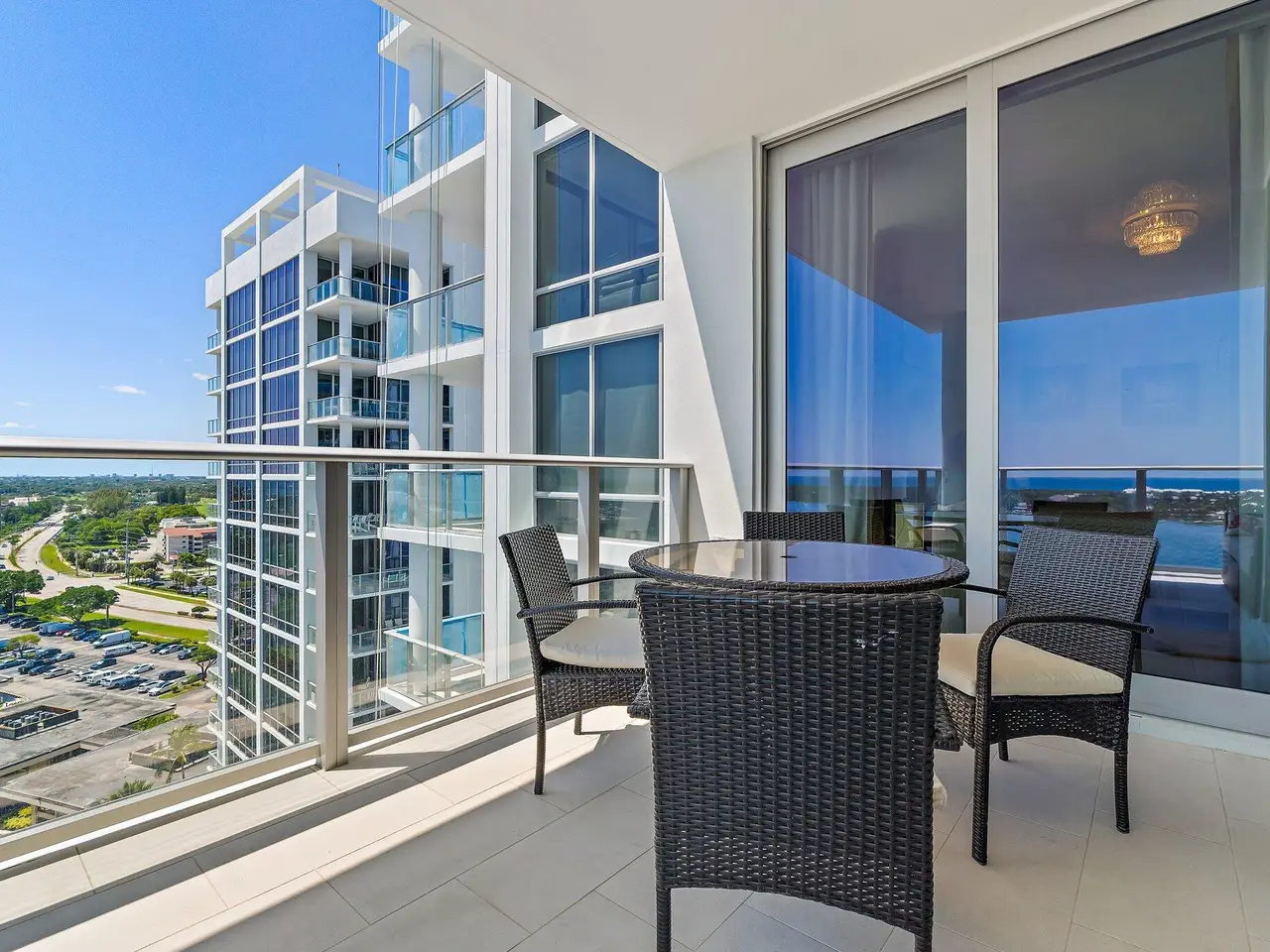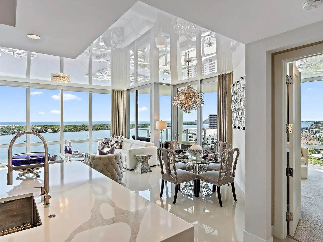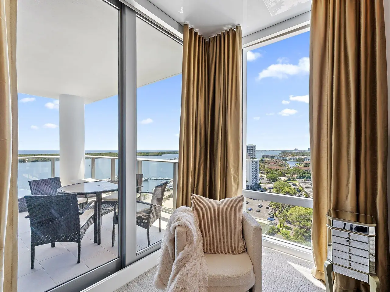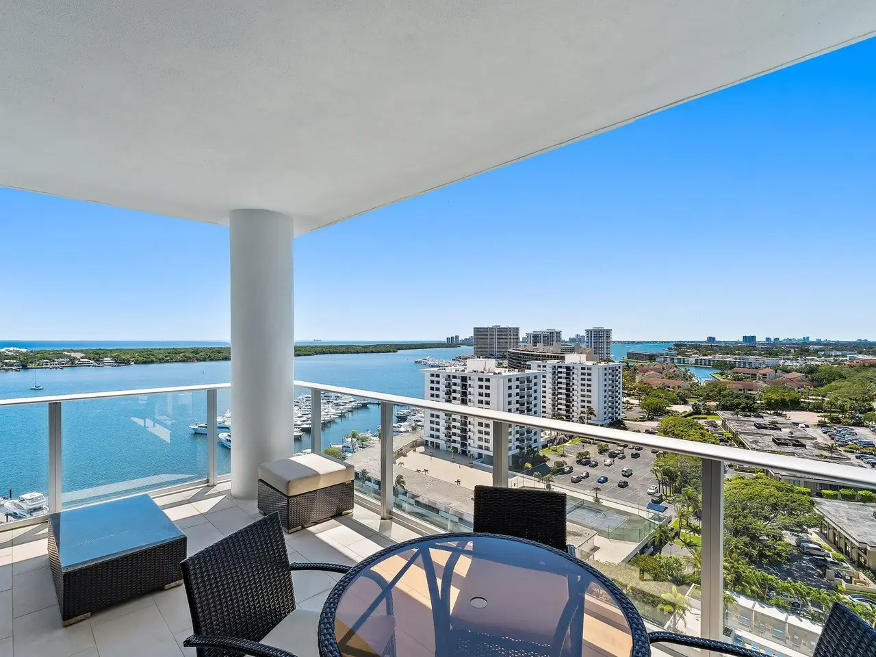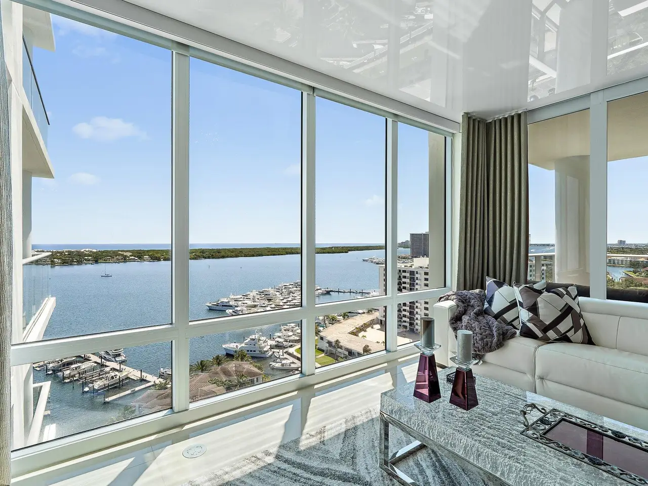 Enjoy amazing views to the ocean, Lake Worth Lagoon, and as far South as The Breakers Hotel in Palm Beach from this ultra-luxury ''Cobalt'' floor plan in Water Club. This unit has a den/office that could serve as a 3rd bedroom with use of the hall Power Room on those rare occasions when you have an extra guest. Best of all, Water Club has world class amenities like 24/7 manned and gated security, private elevator lobbies, under building parking, a private clubhouse with bar and billiards table, resort style pool, day docks, lap pool, fitness center with yoga/pilates studio, spa, fire pits, pickle ball court, guest suites, and more..