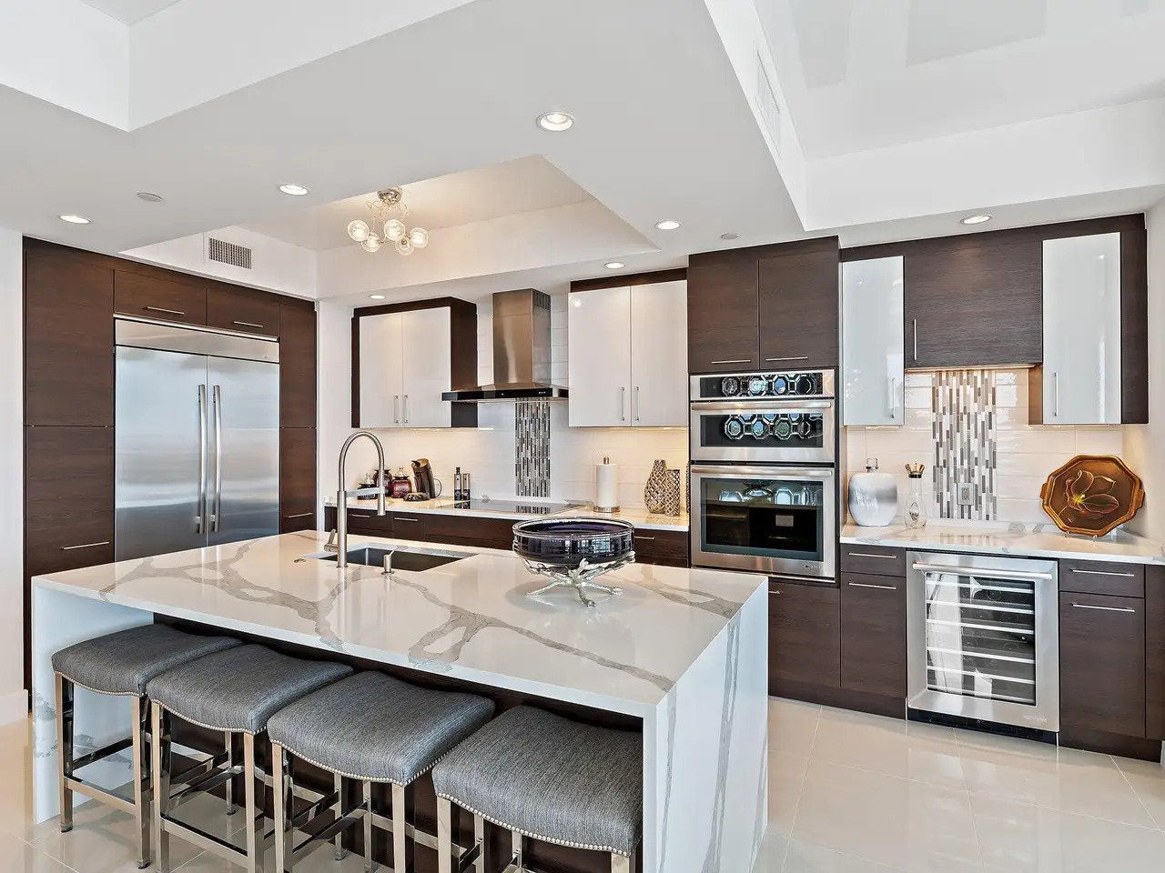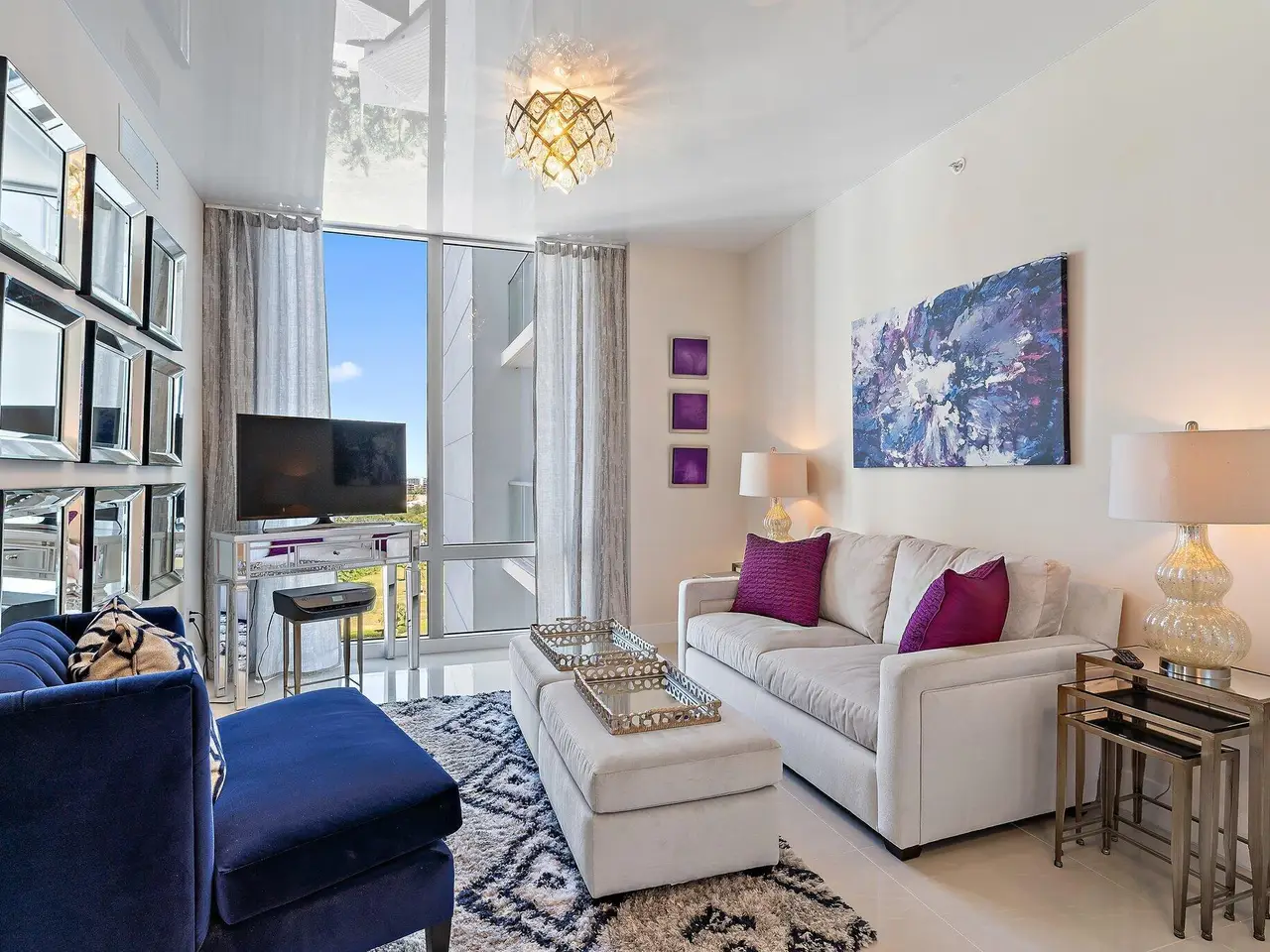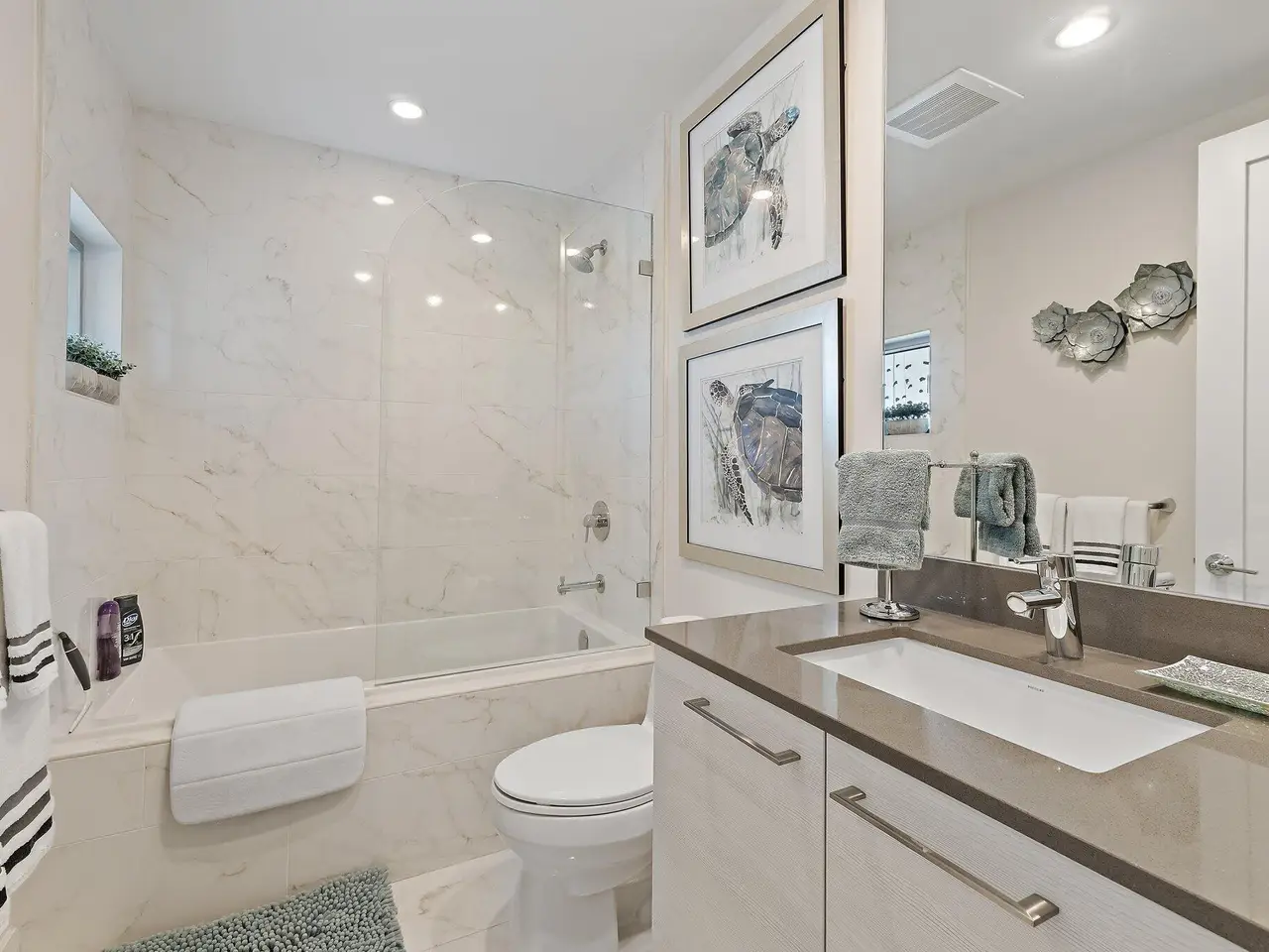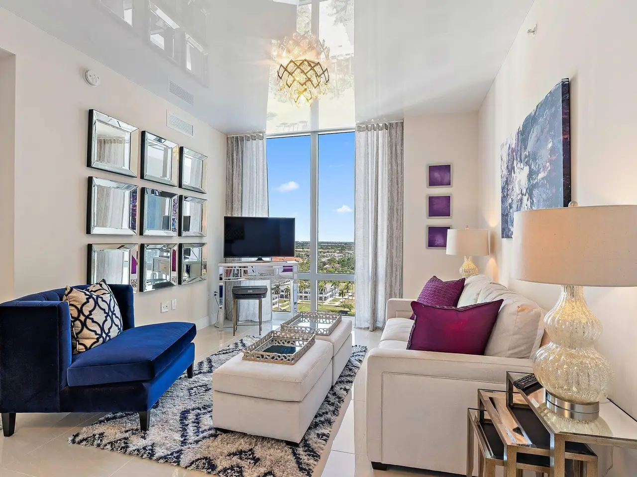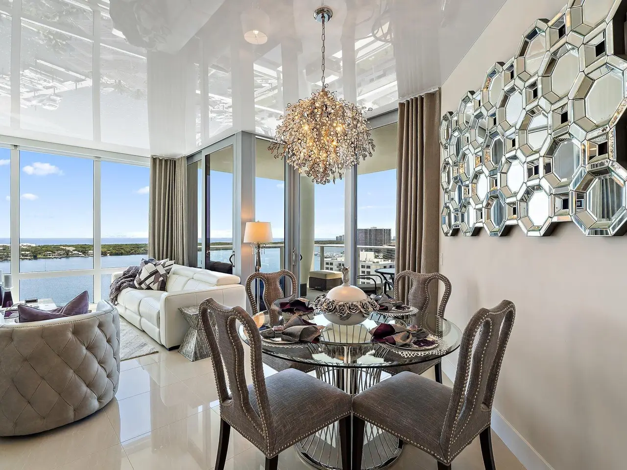 Enjoy amazing views to the ocean, Lake Worth Lagoon, and as far South as The Breakers Hotel in Palm Beach from this ultra-luxury ''Cobalt'' floor plan in Water Club. This unit has a den/office that could serve as a 3rd bedroom with use of the hall Power Room on those rare occasions when you have an extra guest. Best of all, Water Club has world class amenities like 24/7 manned and gated security, private elevator lobbies, under building parking, a private clubhouse with bar and billiards table, resort style pool, day docks, lap pool, fitness center with yoga/pilates studio, spa, fire pits, pickle ball court, guest suites, and more..