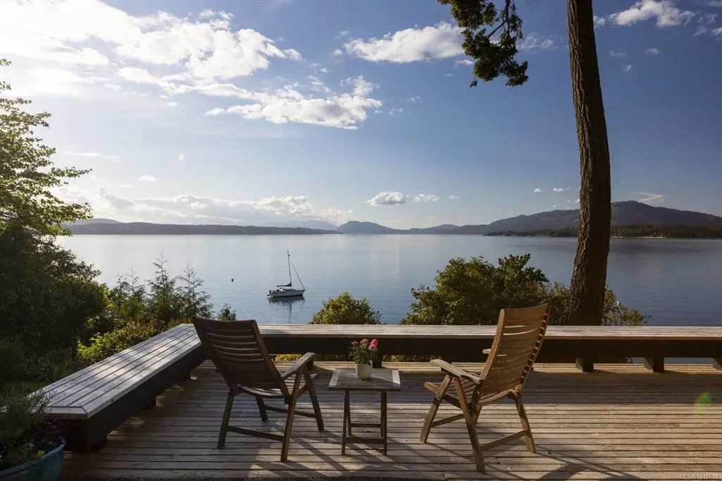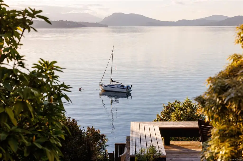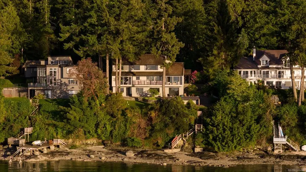 Exceptional waterfront home with breathtaking ocean views and private beach access! Situated on a beautifully landscaped 0.69-acre lot, this 3,109 sq.ft. residence is surrounded by mature greenery and a stunning natural shoreline—offering the perfect setting for an idyllic West Coast lifestyle. Designed to capture the views, the home features floor-to-ceiling windows, a spacious open-concept kitchen and living area ideal for entertaining, and a luxurious primary suite with a 6-piece ensuite and private sun deck. Step outside to enjoy tiered decks, patio space, and Western exposure that showcases incredible sunsets and vibrant coastal activity. A staircase leads directly to a sandy beach for true oceanfront living. Additional highlights include a self-contained 1-bedroom in-law suite with separate entrance. Located on the coveted west side of the Saanich Peninsula, this rare offering combines serene seaside living with easy access to nearby amenities.