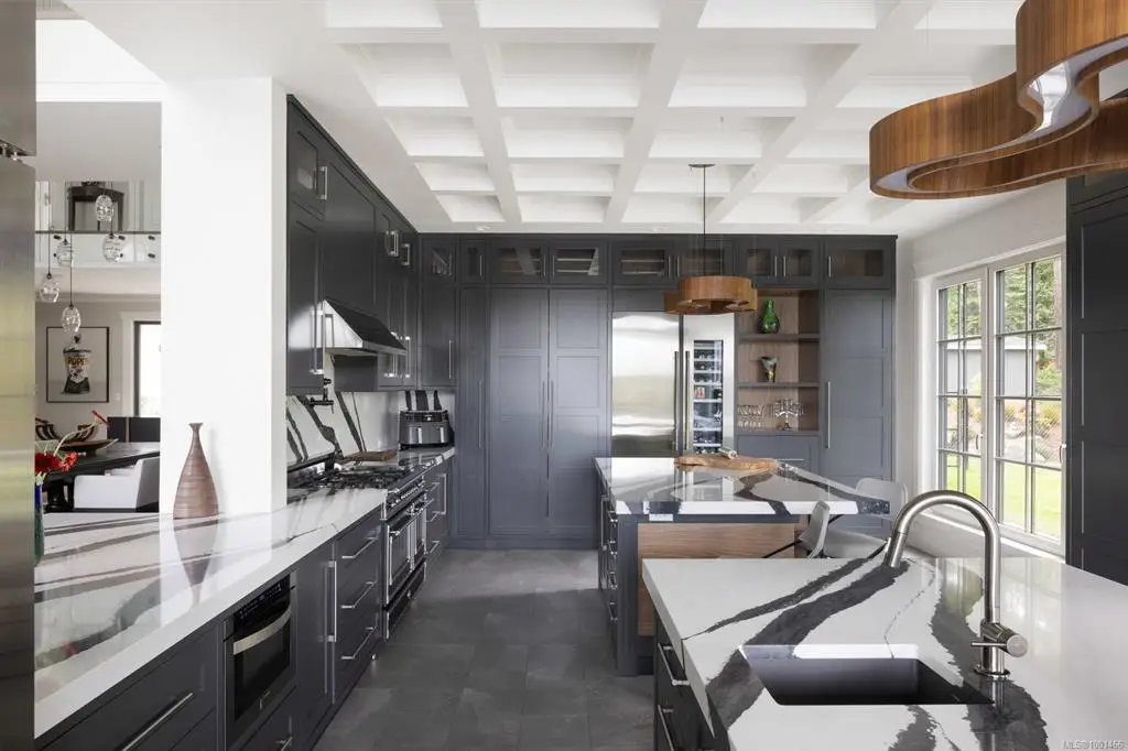 Spectacular 1.3-acre waterfront estate offering refined West Coast living with breathtaking panoramic ocean views. Encompassing over 9,300 sq.ft of expertly crafted space, this 6-bedroom, 8-bathroom residence blends timeless architecture with modern luxury. Extensively renovated by award-winning Citta Construction, the home showcases soaring 22-ft coffered ceilings anchoring the grand open-concept living area, framed by nano doors that connect to an expansive oceanfront terrace. The main-level primary suite is a private retreat with stunning views and spa-inspired elegance. A 900 sq.ft gym, media room, and games room offer exceptional lifestyle amenities. Outdoors, enjoy a 2,028 sq.ft sun-drenched patio, lush landscaping, and direct beach access. Built with unmatched quality and meticulous attention to detail, and positioned for awe-inspiring sunsets, this estate defines coastal luxury.