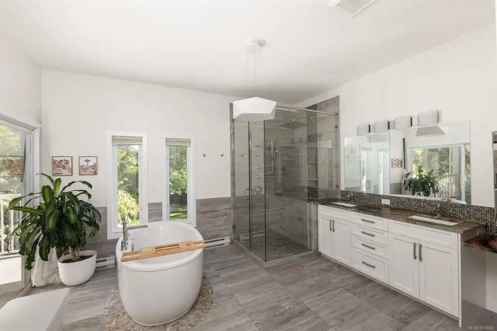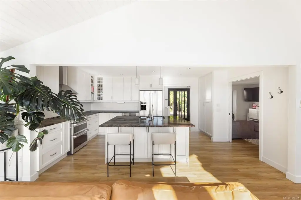 Stunning West Coast family home showcasing breathtaking west-facing ocean views and an exceptional outdoor lifestyle. Set on 1.05 acres in one of the Peninsula’s most desirable locations, this 4,266 sq ft 5 bed/3 bath residence was tastefully renovated by Lida Homes. The bright, open-concept main level features 13-ft vaulted ceilings, a spacious kitchen with JennAir appliances and quartz counters, and French doors leading to an expansive sundeck with frameless glass railings. The primary suite offers a spa-inspired ensuite, loft office with ocean views, and access to a covered sundeck with hot tub, perfect for year-round enjoyment. Outdoor living shines with a new sauna, beautiful gardens, ponds, and vegetable beds across a sun-soaked south-facing backyard. Sustainability meets comfort with solar power, a heat pump, and A/C ensuring energy efficiency year-round. A lower-level rec room with kitchenette adds versatility. Steps to Deep Cove Winery, Chalet Restaurant, beaches, and trails.