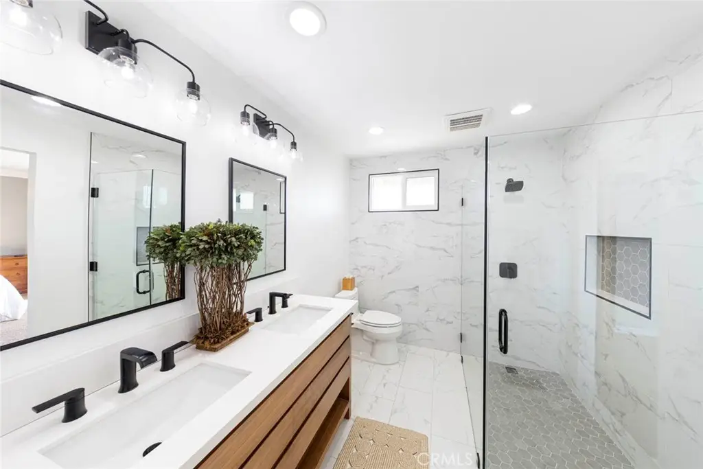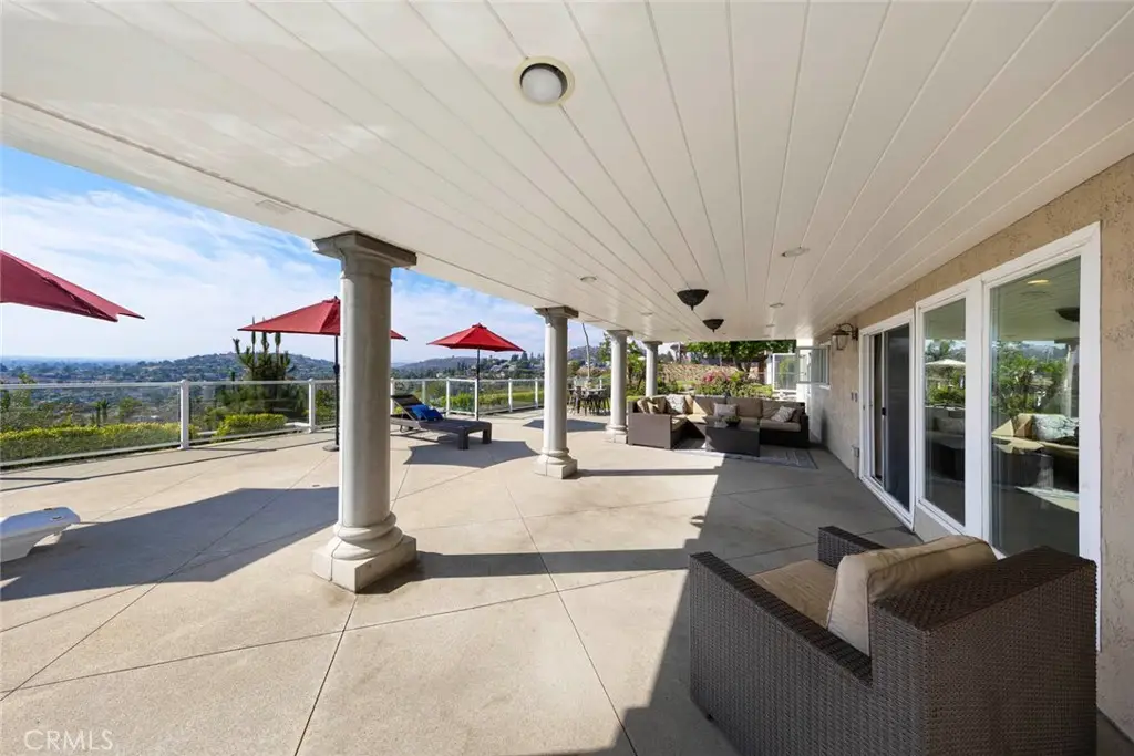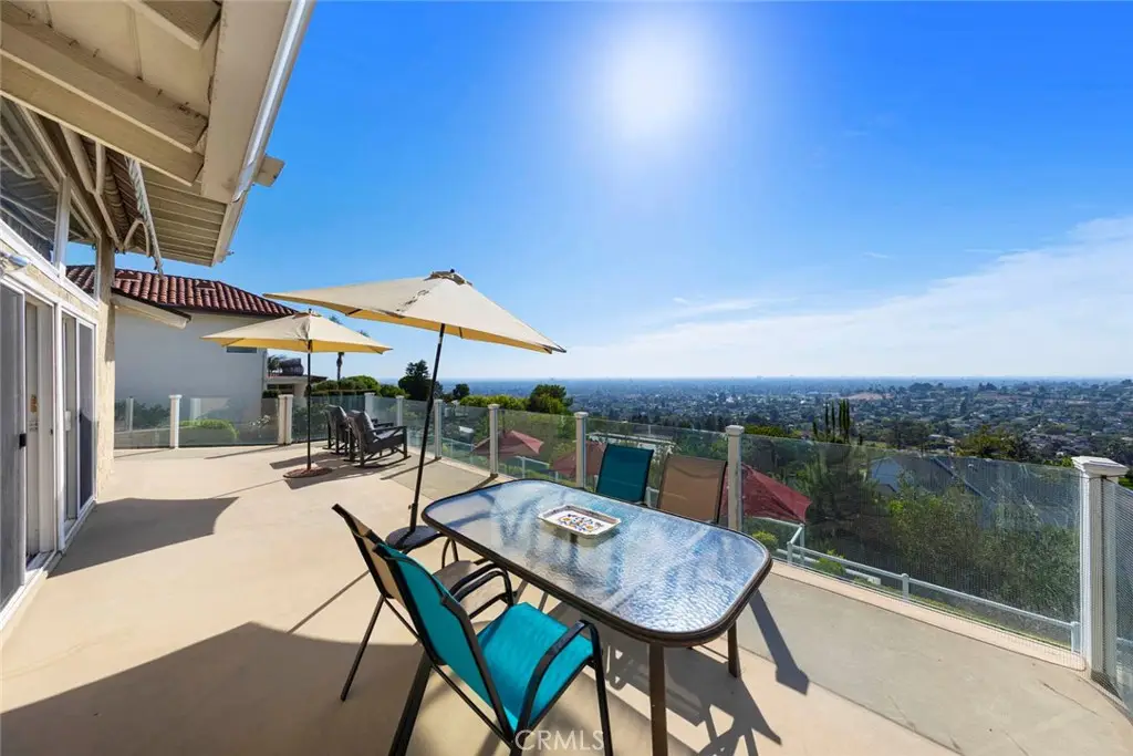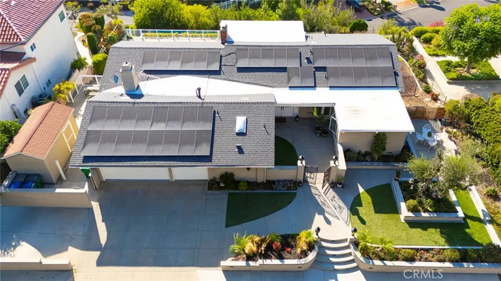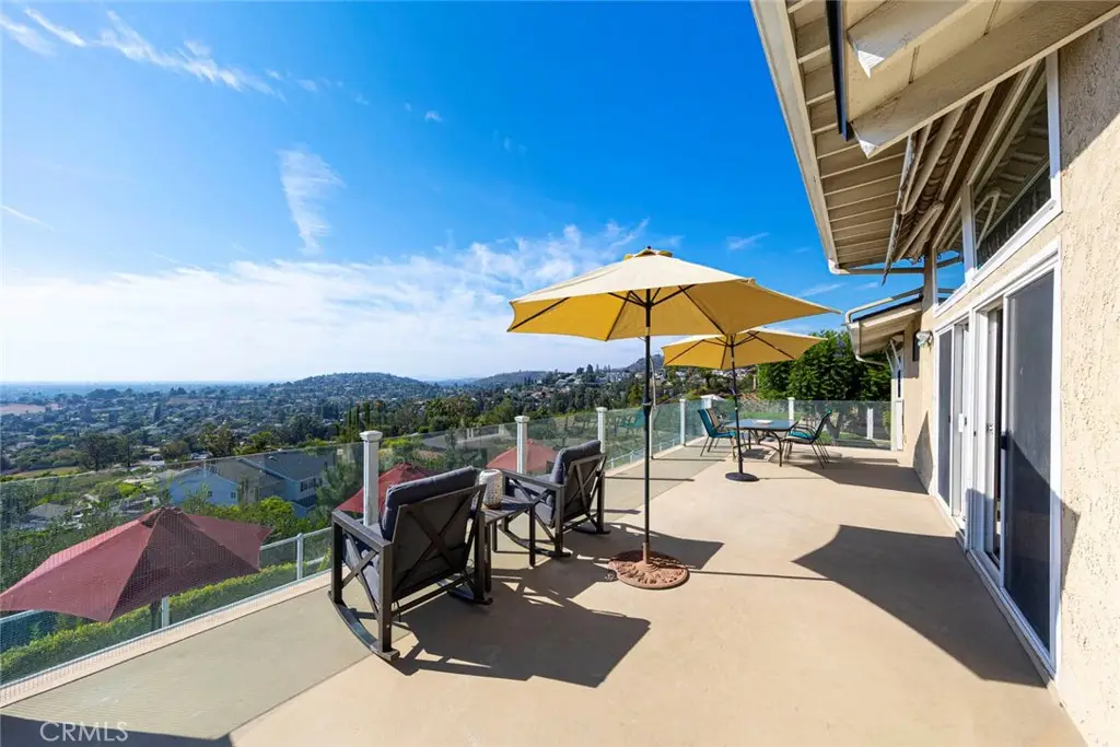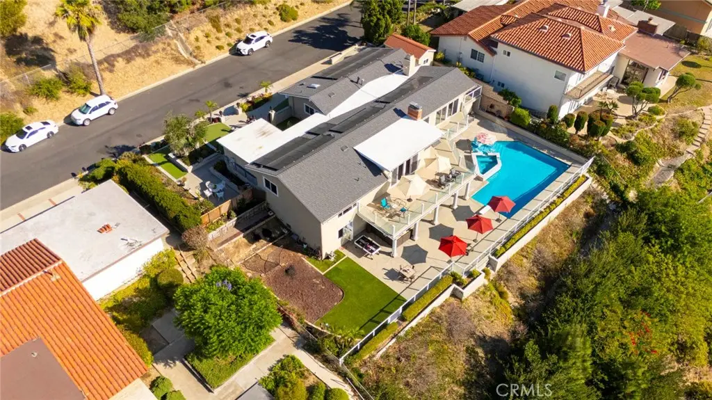 Stunning Single Story 180 Degree Unobstructed View Home with Additional Multigenerational Living Quarters on the bottom level in Prestigious North Tustin Foothills/ Lemon Heights. LOCATION HIGHLIGHTS: * Located in the highly desirable North Tustin Foothills in the Lemon Heights community * Situated on a quiet, single-loaded street * Directly above Arroyo Elementary, Hewes Middle, and Foothill High * Incredible 180 Degree Unobstructed panoramic views: * Direct site lines to Angels Stadium, Disneyland, Downtown LA, and Hollywood Sign (on clear days) * Catalina Island and San Pedro Port to the west * San Bernardino Mountains to the east * Close to scenic Peter's Canyon Loop Trail. HOME FEATURES: * 4 Bedrooms | 3 Bathrooms | 3042 total Sq Ft | 0.43 Acres (2096 Sq Ft upper level and 946 Sq Ft lower level) * Three fireplaces (2 upstairs and 1 downstairs) * 3-car attached garage * Salt Water Pool & Jacuzzi * Newer roof, solar system, and main electrical panel upgrade (2023) * Tiered retaining wall (2022) * $400,000 in structural upgrades & maintenance (2016-2025). UPSTAIRS (MAIN LIVING LEVEL): * 3 Bedrooms + Office | 2 1/2 Bathrooms * Spacious living & dining rooms with large sliding glass doors opening to full-width exterior view balcony * Upstairs balcony 598 Sq Ft * Primary bedroom with newly remodeled ensuite bathroom (2021) * Two secondary bedrooms share a full shower/tub bathroom * Private office with fireplace and direct balcony access (Could be another bedroom) * Laundry area in garage and Tuff Shed for storage. DOWNSTAIRS: (Additional living quarters for multi-generational living, rental or In-Law Suite): * 1 Bedroom | 1 Bathroom with private entrance * Includes living, dining, kitchen (electric cooktop), fireplace, and electrical stackable laundry * 540 Sq Ft covered outdoor living area * Additional outdoor storage unit * Direct access to pool and jacuzzi * Ideal for rental income.
