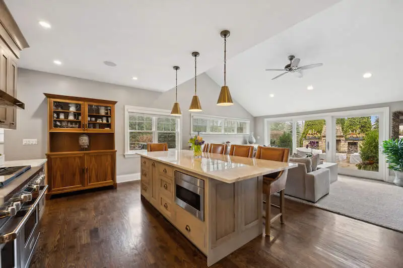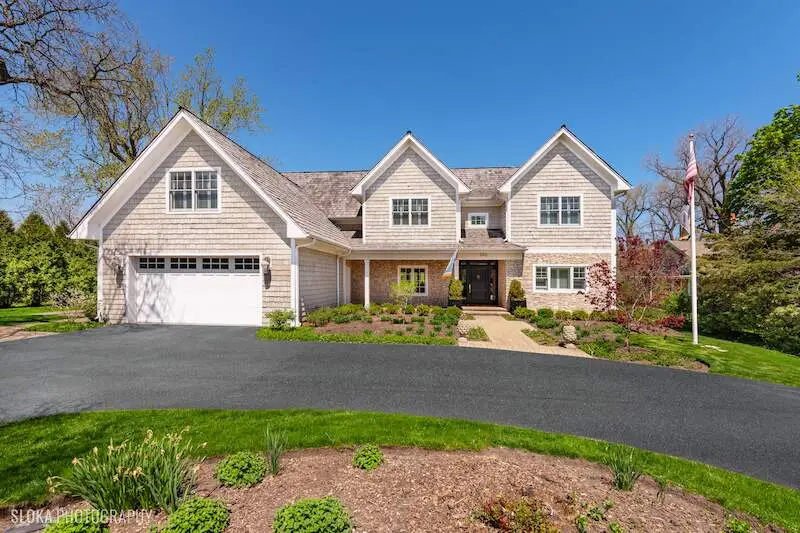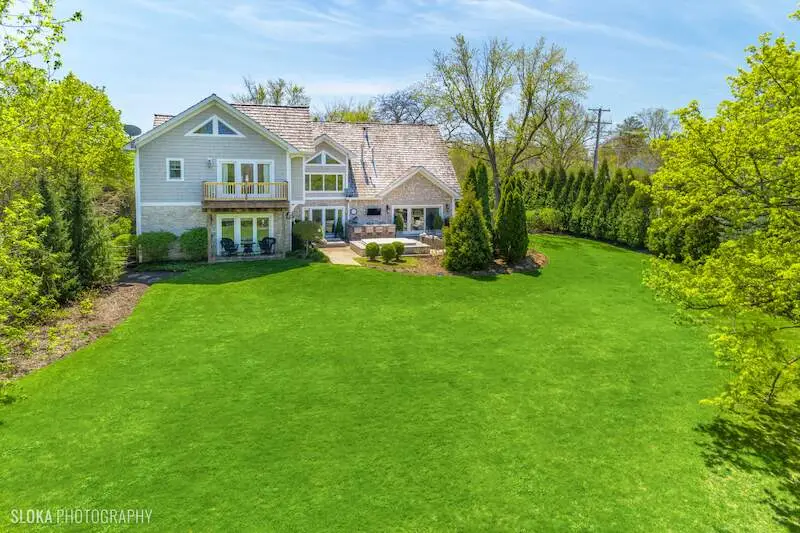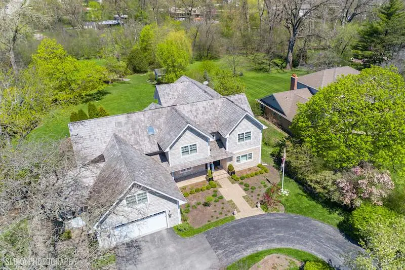 The best of both worlds as this SE Northbrook beauty feeds into the award winning New Trier school district while set on a glorious 1 acre lot of professionally manicured rolling greens & grounds by Midwest Arbor. This completely rebuilt Cape Cod has been transformed into a 2 story architecturally stunning masterpiece with causal elegance at the forefront. This designer showcase home is all about space & comfort with a versatile floor plan with a 1st floor primary suite option with 2 additional beds (now offices) in addition to a fully loaded 2nd floor. Step inside the atrium foyer with a fantastic reveal of a sun-drenched formal open living & dining space with soaring ceilings highlighted by oversized windows with picturesque views of the lush backyard. With a mountain chic vibe, this phenomenal custom kitchen complete in 2019 is layered with the best jewelry: Taj Mahal c-tops, gorgeous oak sawn light grey stained cabinetry, Visual Comfort pendants & top of the line s/s appliances, ice machine & built in espresso machine. Kitchen opens to the cozy family room with more built-ins & French doors that step out to an entertainer's dream backyard oasis fully equipped w/stone FP, custom bar, & commercial level oversized hot tub. Right off the kitchen is access to garage and mudroom w/dog shower. Ideal split floor plan with the original primary bedroom w/ spa bath with private patio allows nature to come in with a beautiful vista of the property's little bridge over a creek in the back of the property with matching shed. 2 additional beds (now home offices) w/hall bath on main level. Fab new second floor with open hallways w/ new primary luxe suite w/white marble spa bath & walk out balcony. Laundry room and 2 additional family ensuite beds + huge family room enhance this floor. This one of kind property makes for amazing living & entertaining and a little treat if you are a Da Bears fan with the signing of Caleb Williams in the lower level! 20 miles to escape to land, the best schools and one beautiful designer curated home!