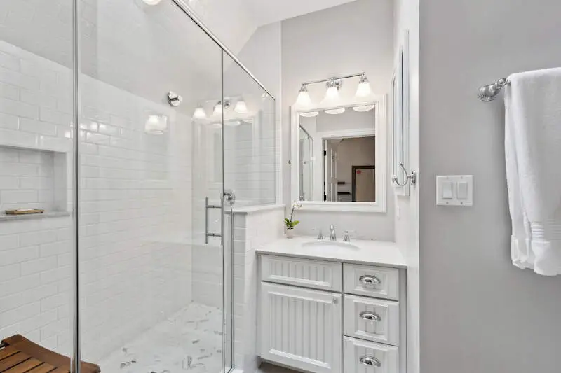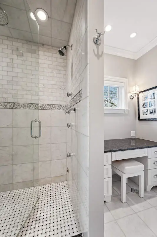 New second floor with white marble spa bath