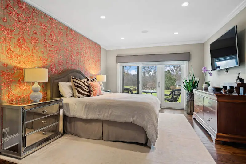 French doors opening to entertainers dream backyard