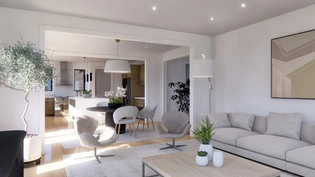 Open family room kitchen layout